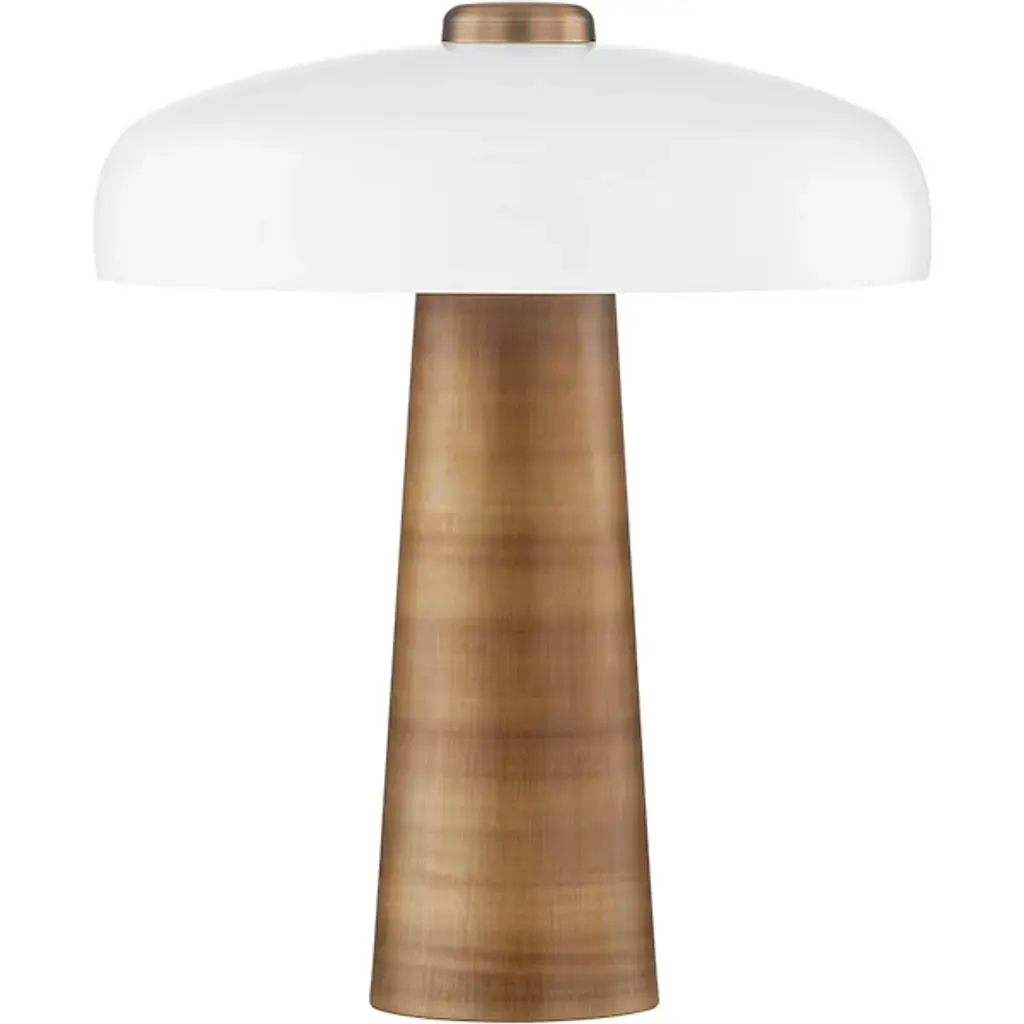The Poppy Rechargeable LED Table Lamp from Alora Mood brings a playful burst of personality to any space. Designed by Peyton Fox, this portable lamp features a curving base and dish-style shade that contrasts beautifully with a bold metal stem. Its 5–7 hour charge time and no cord allows for flexible placement around the home or office. Its memorable finish and contrasting surfaces add color and character to desks, nightstands, and more, with a nod to Mid-Century Modern charm.