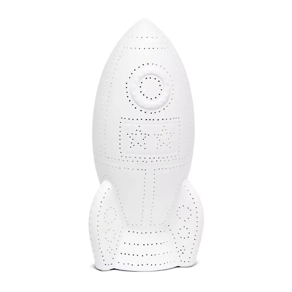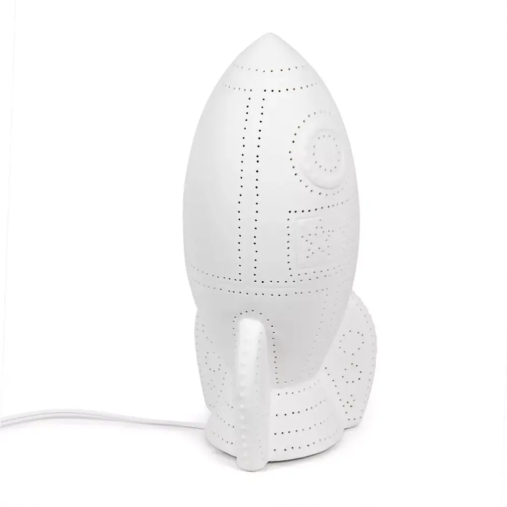 Porcelain Rocket Ship Table Lamp White - Simple Designs: Ceramic Night Light For Kids' Bedroom, Etl Listed