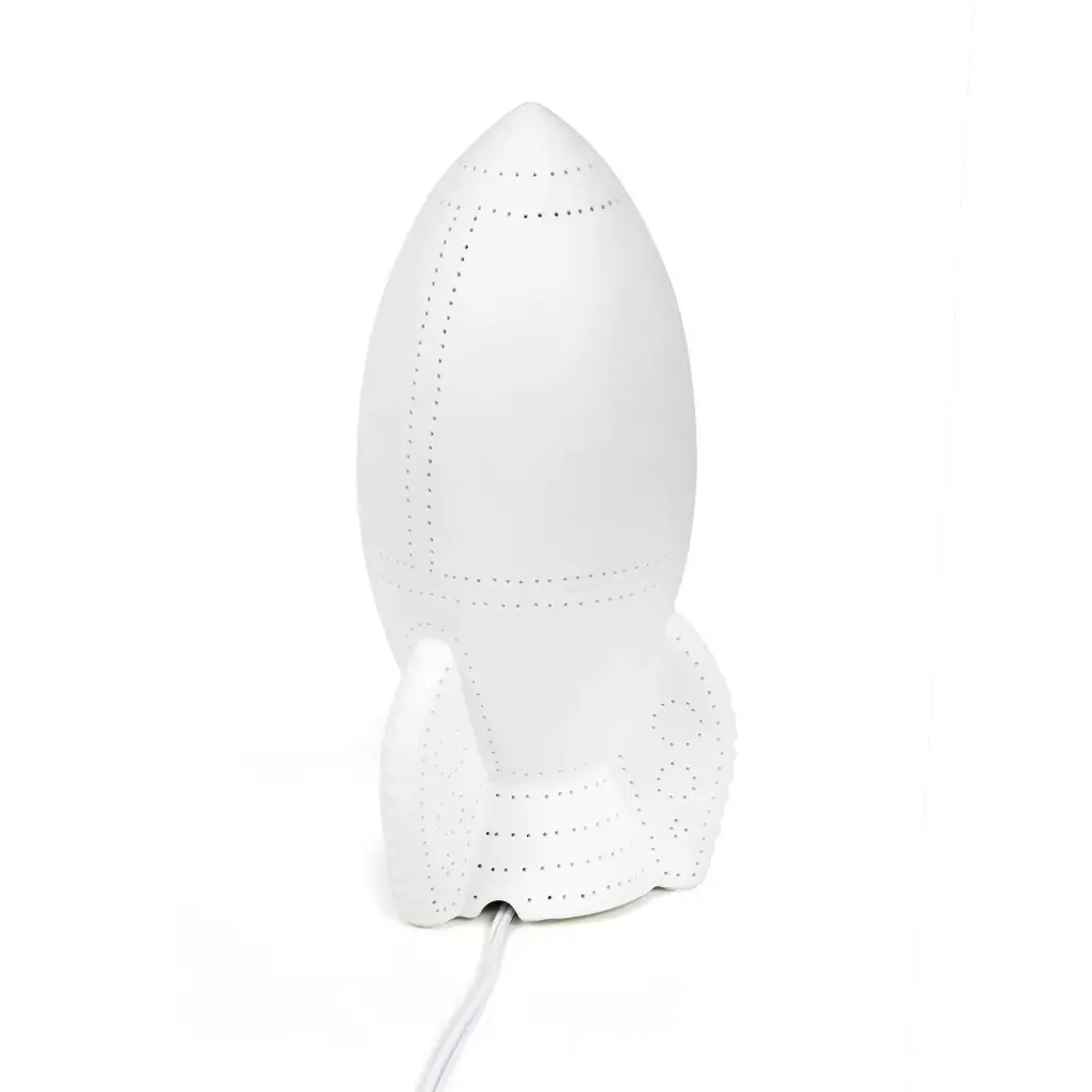 Fun, rocket shaped porcelain 12.5" table lamp can be used as a table lamp or a night light giving off soft light. Perfect for living room, bedroom, office, kids room, or college dorm. Easy and inexpensive way to add this trend to your existing decor. This item is part of extensive assortment of animal lamps available from Simple Designs! Make sure to check out the others!