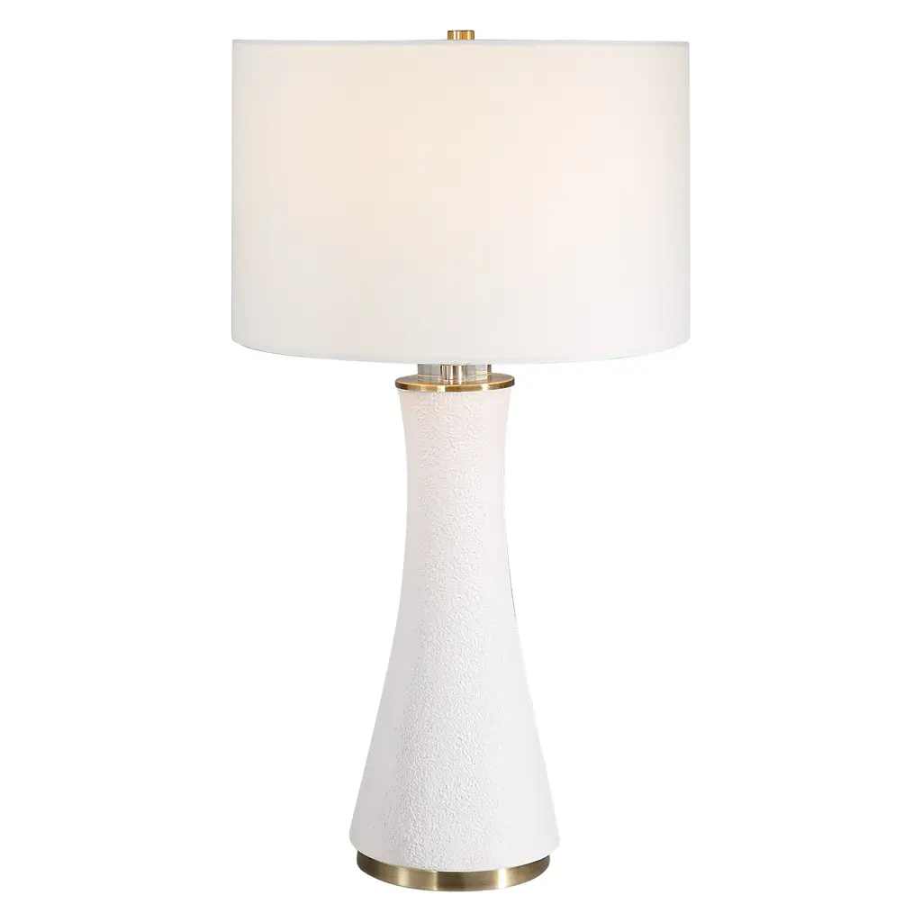Porch & Den Matte White Textured Ceramic And Crystal Table Lamp - Matte White