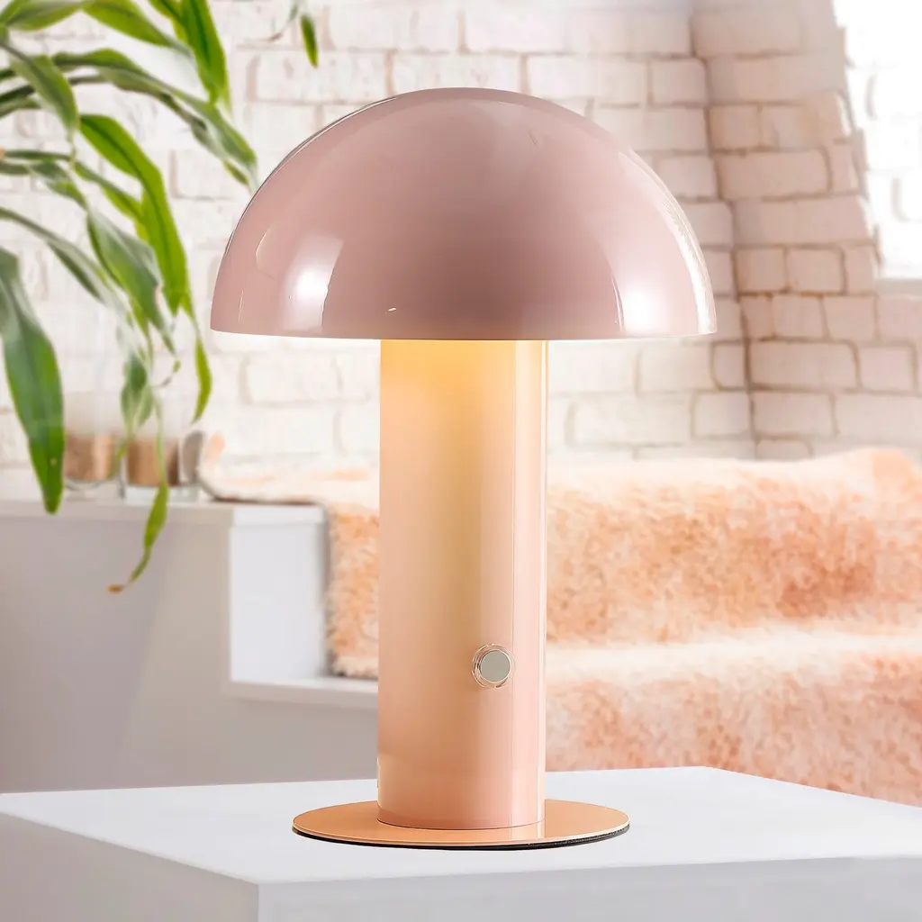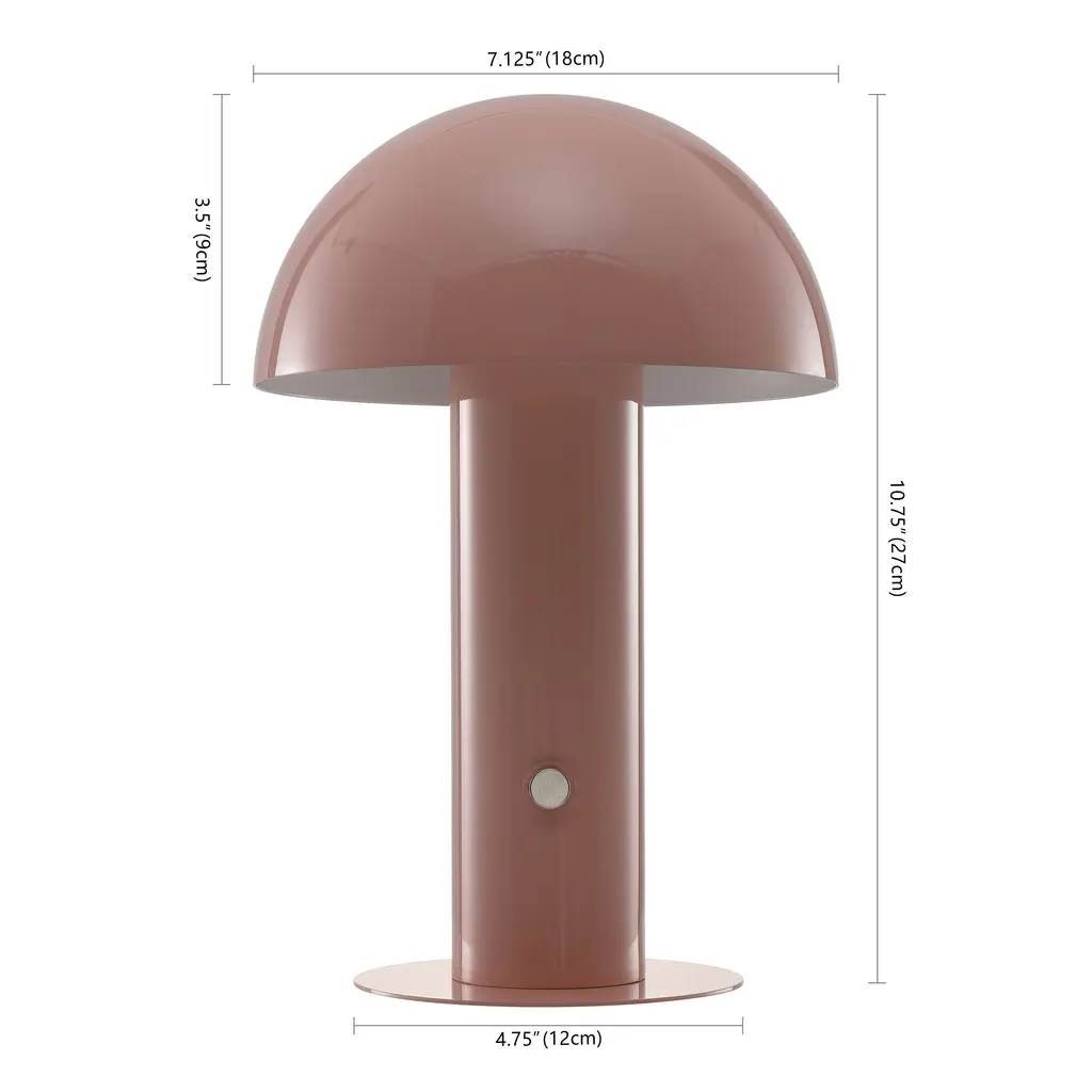 Our portable mushroom lamp's minimalist silhouette is the perfect modern accent for a desk, bar console or vanity. This cordless, rechargeable lamp provides dimmable mood lighting for your dining room, living room, bedroom, or entry. The durable metal design features integrated LED bulbs and a touch sensor to control the three brightness settings. Features: Dimensions: About us:You see a lamp.We see a decorative work of art.A perfectly curved shade casts a dramatic shadow on a floor. Compatible with LED lightbulbs: as easy on the environment as they are on the eyes. The JONATHAN Y Lighting collection considers every detail from impeccably sourced materials to designer styling. And our prices are so attractive, we've transformed a functional necessity into a fashion accessory.JONATHAN Y Lighting - a fashion revolution in home decor.
