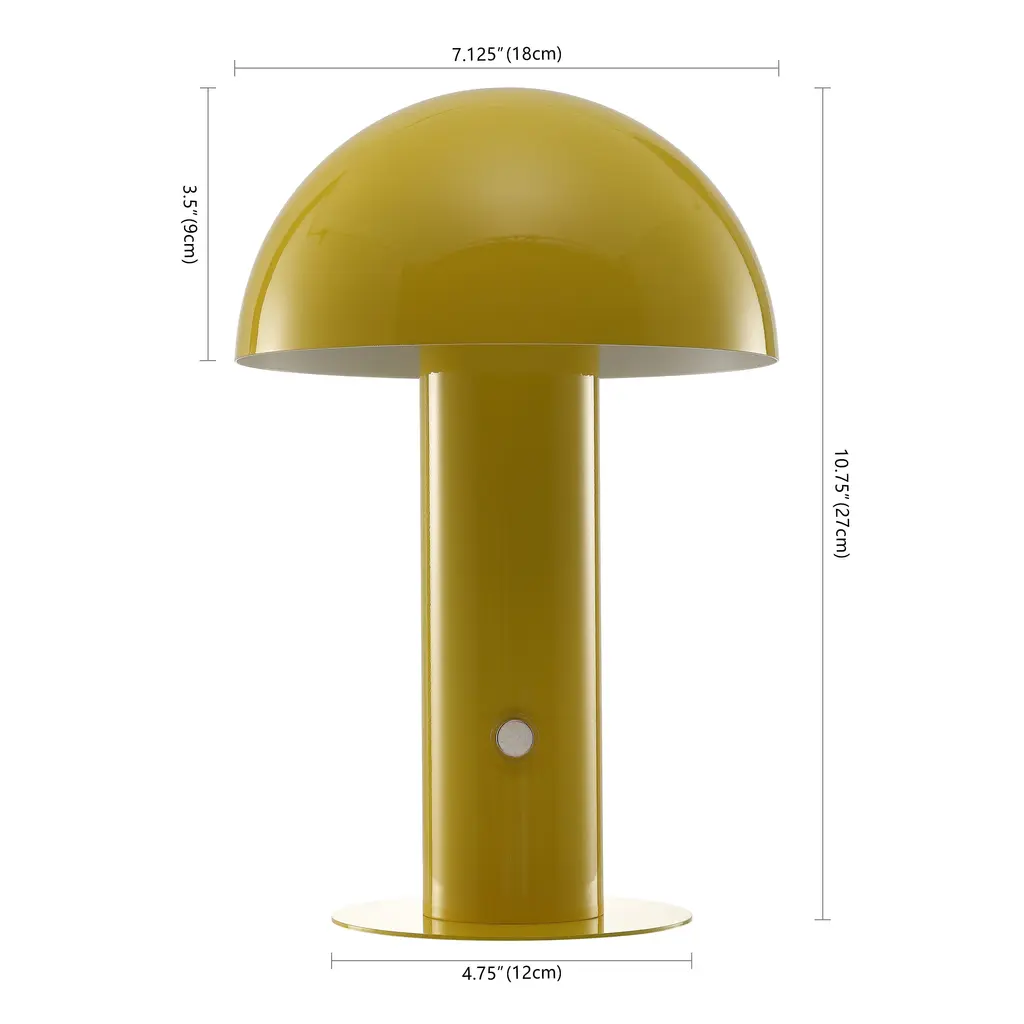 Our portable mushroom lamp's minimalist silhouette is the perfect modern accent for a desk, bar console or vanity. This cordless, rechargeable lamp provides dimmable mood lighting for your dining room, living room, bedroom, or entry. The durable metal design features integrated LED bulbs and a touch sensor to control the three brightness settings. Features: Dimensions: About us:You see a lamp.We see a decorative work of art.A perfectly curved shade casts a dramatic shadow on a floor. Compatible with LED lightbulbs: as easy on the environment as they are on the eyes. The JONATHAN Y Lighting collection considers every detail from impeccably sourced materials to designer styling. And our prices are so attractive, we've transformed a functional necessity into a fashion accessory.JONATHAN Y Lighting - a fashion revolution in home decor.