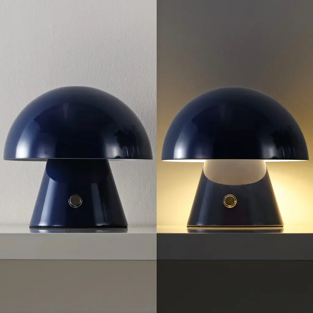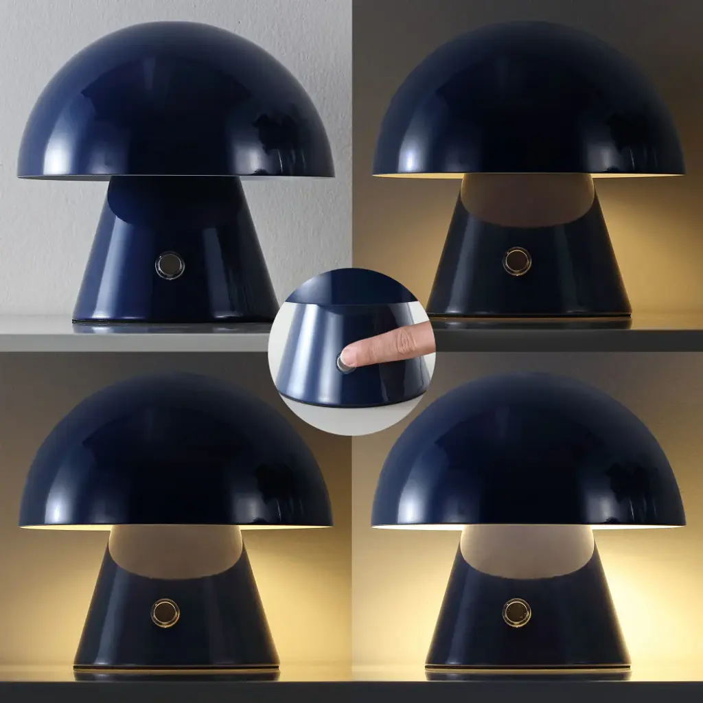 Porcini 7" Rechargeable/cordless Iron Integrated Led Mushroom Table Lamp, Navy