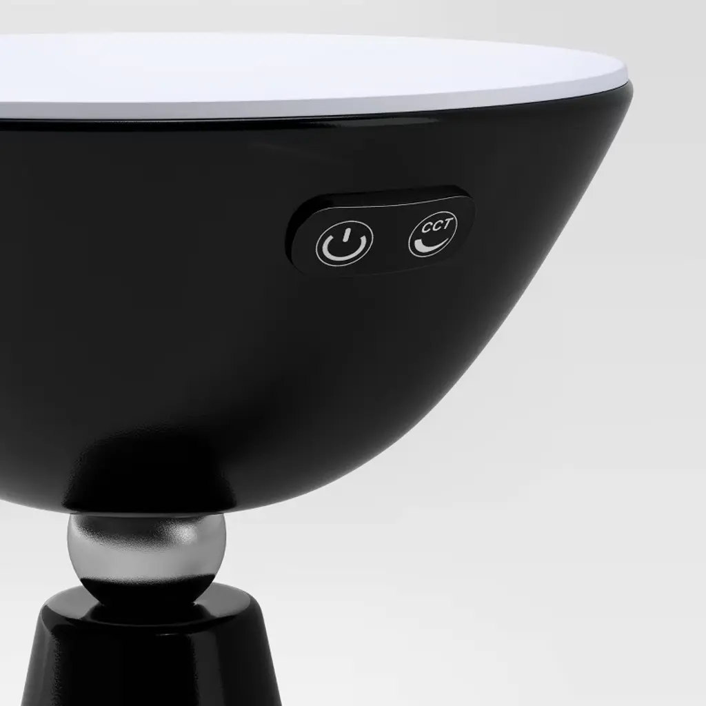 Bring a unique and stylish update to your home with the Portable Table Lamp from Room Essentials™. This black table lamp features a slanting side base with a round bowl-like top for a standout look. Made from metal, this table lamp has an integrated LED bulb with a variable brightness control feature to meet your lighting needs. It's powered by one 18650 lithium-ion battery and has a touch-activated sensor that makes it easy to turn on and off.Room Essentials™: Everyday Value