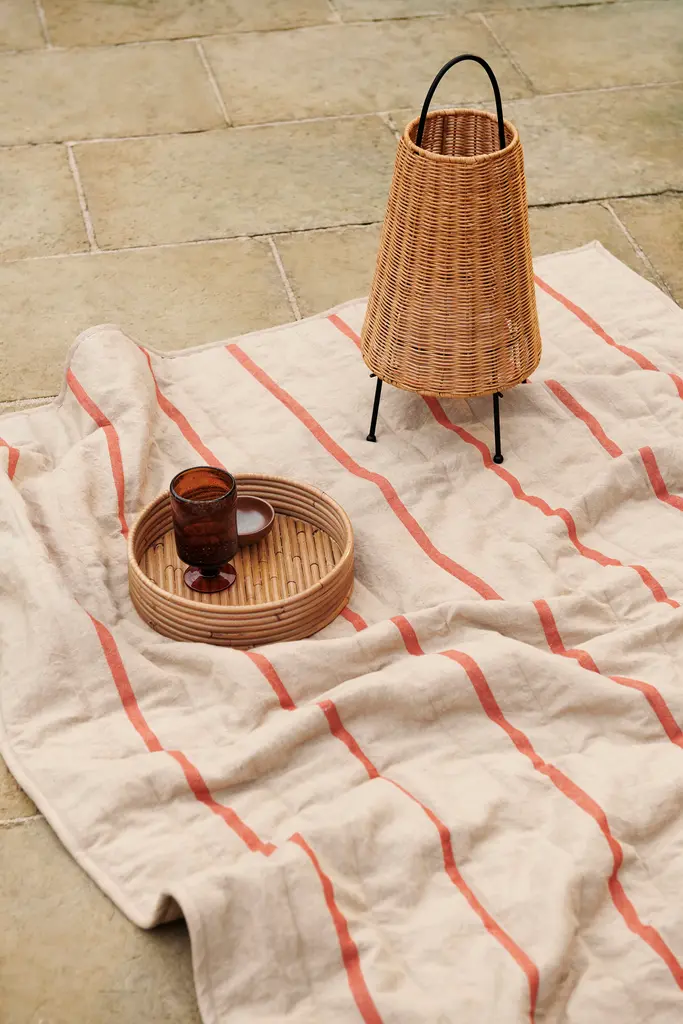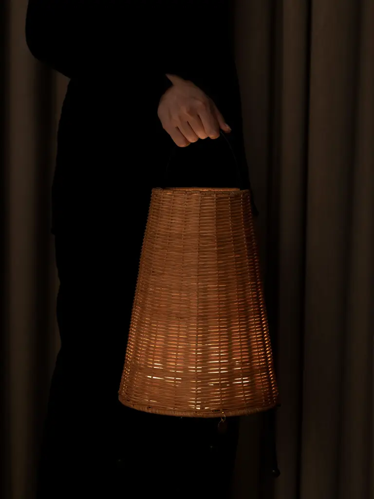 Reinterpreting the form and function of a lantern, the Porti Braided Lamp is a versatile and portable lamp that can be used in a multitude of settings. Emitting a soft and warm light, the lamp features a braided rattan shade that rests on a slender metal frame, resulting in a charming mix of tactility and sleekness. The lamp base features a hover touch function that enables you to control the light intensity as well as turn the lamp on and off with just a gentle touch or tap, and adjustable feet that help you to align the lamp on uneven surfaces.