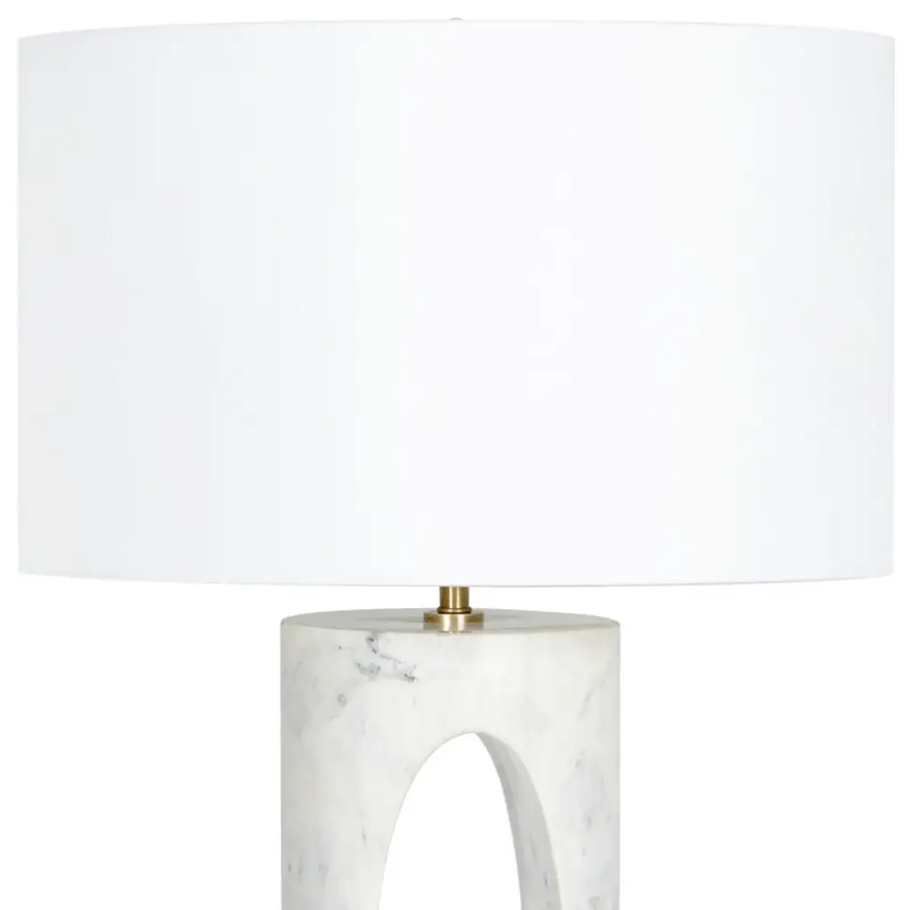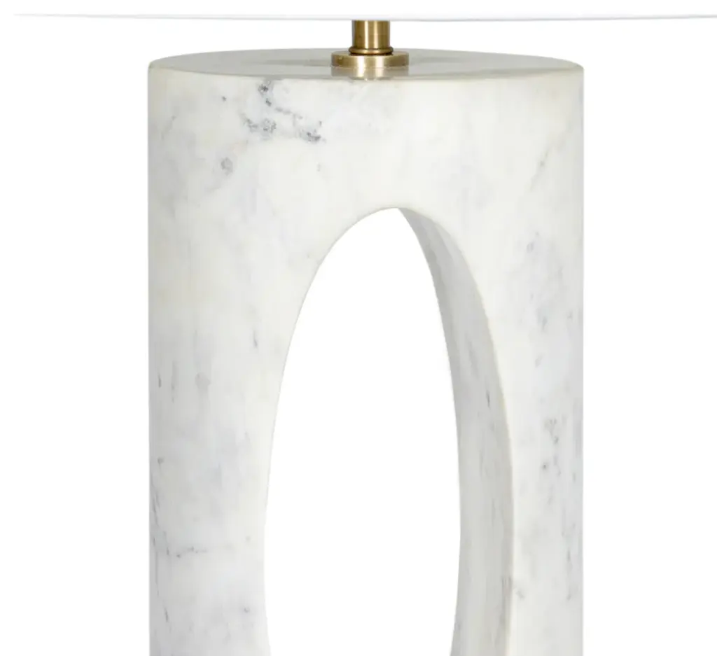 Portia Marble Table Lamp is crafted with a stunning natural white marble with lavender-toned veining. Its captivating form draws attention as a sculptural work of art. Paired with a natural linen shade and natural brass components, the Portia would be a stunner in a living room, home office, or in an entryway.Bulb Type: A Type Medium Base (E26)Wattage: 100 Watt MaxNumber of Bulbs Needed: 1Bulb(s) Included: No