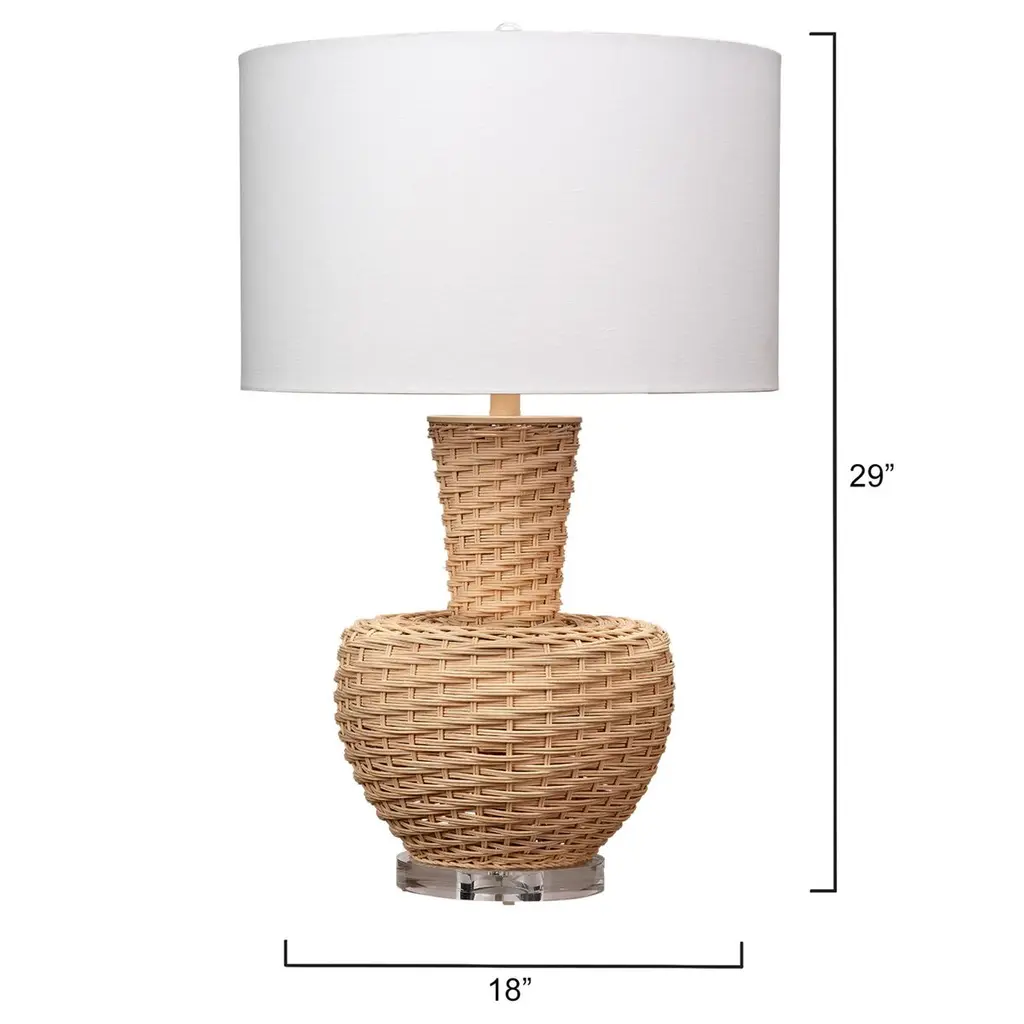 A crystal-clear acrylic base and a creamy linen drum shade expertly elevate an otherwise casual coastal lamp. The curvy mushroom inspired body adds a touch of whimsy and grounds the design. If you're looking to create a light, bright, polished, and welcoming space for friends and family, this is the choice for you.