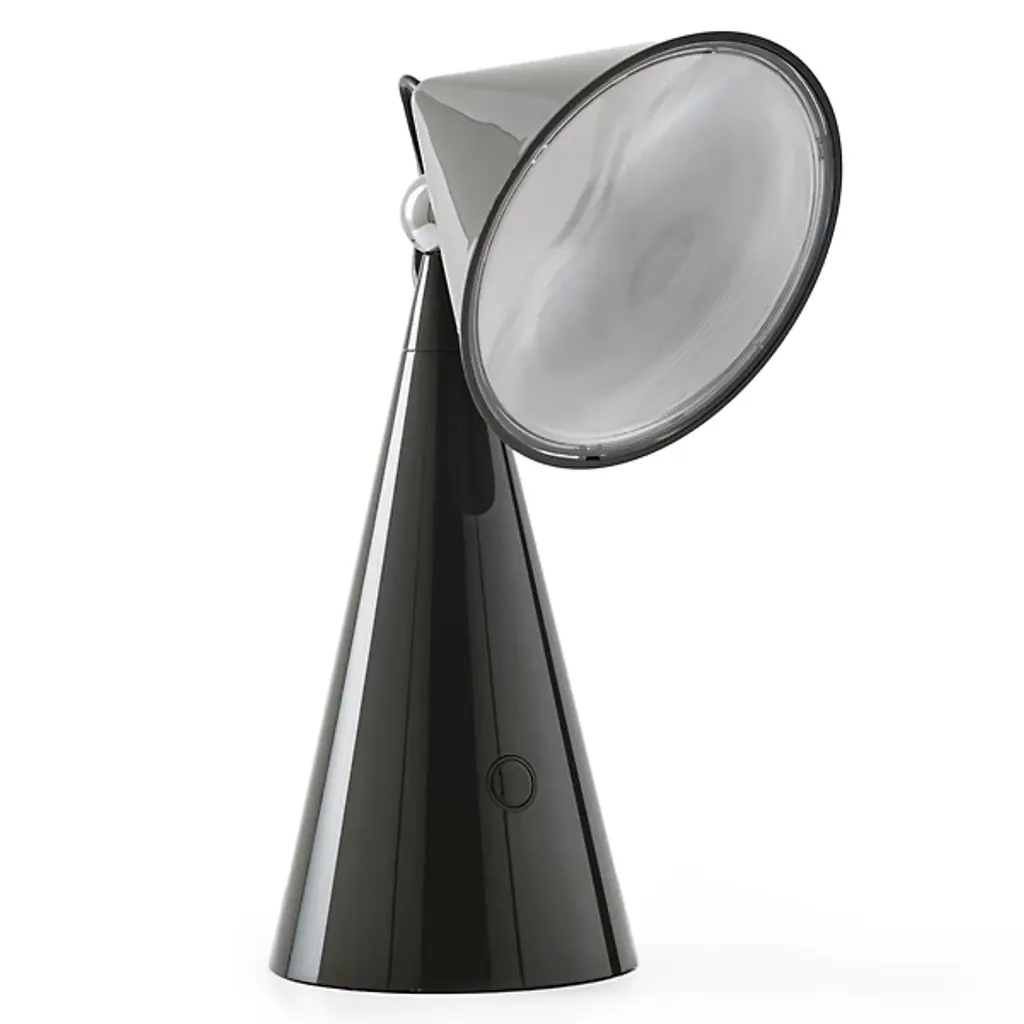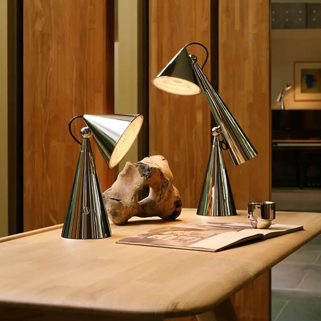 The Pose LED Rechargeable Table Lamp from Tom Dixon features a bold, playful design that balances minimalism with individuality. It features a conical body and head with a flat lens on its face inspired by what you'd see on lighthouses, traffic lights, and scientific instruments. While this bold silhouette is its defining characteristic, its high output light and adjustability also give it adaptability and functionality. This comes in the form of its rechargeable battery and a head that rotates and angles up and down, sending its focused, magnified beam where you need it most.