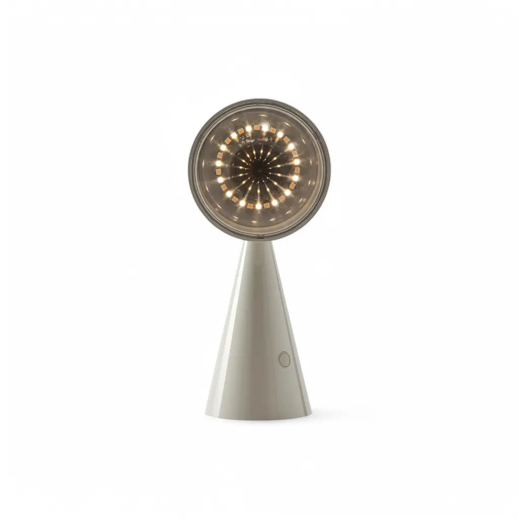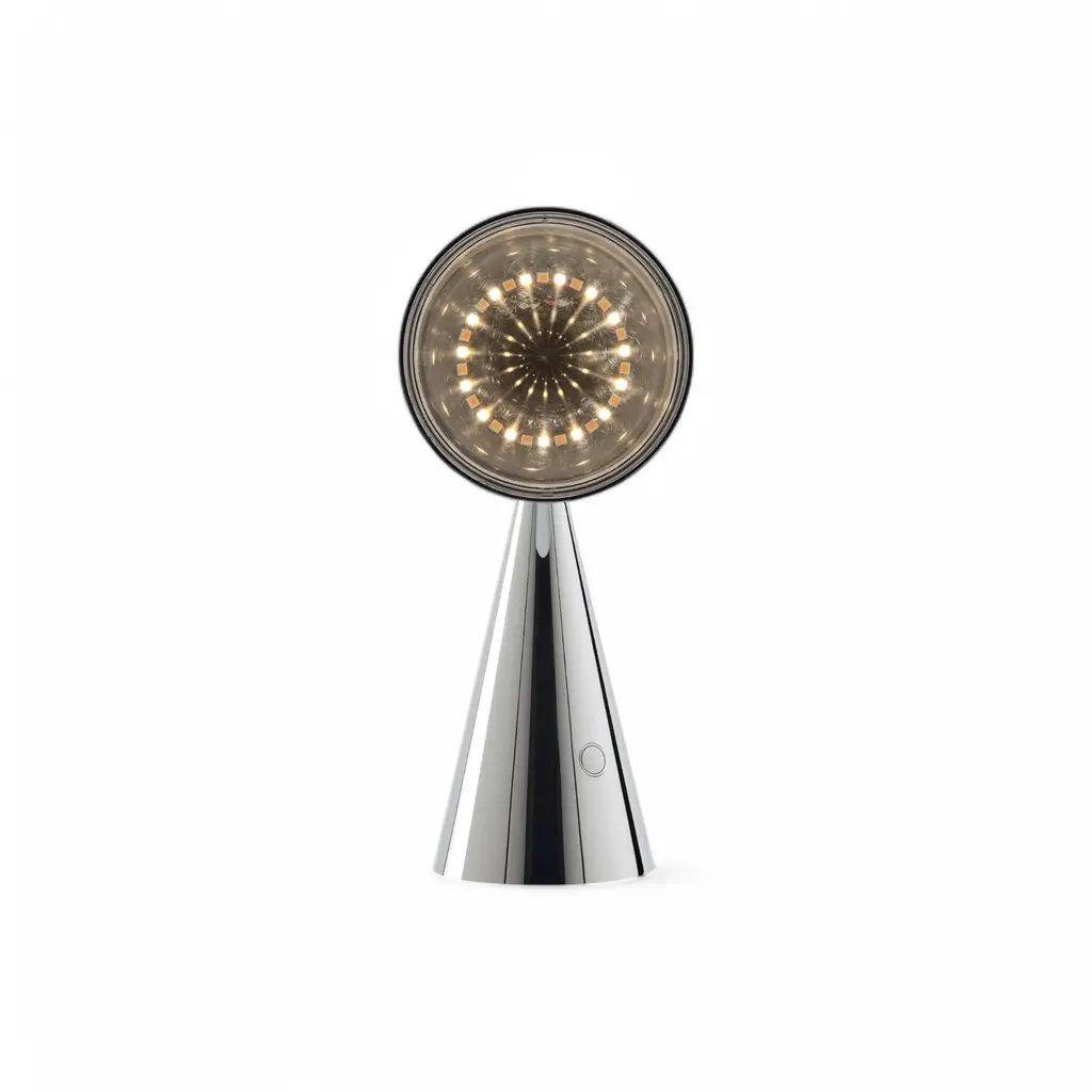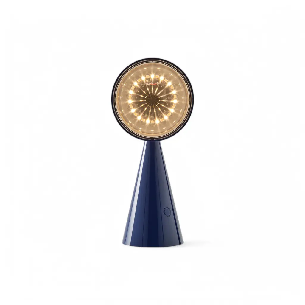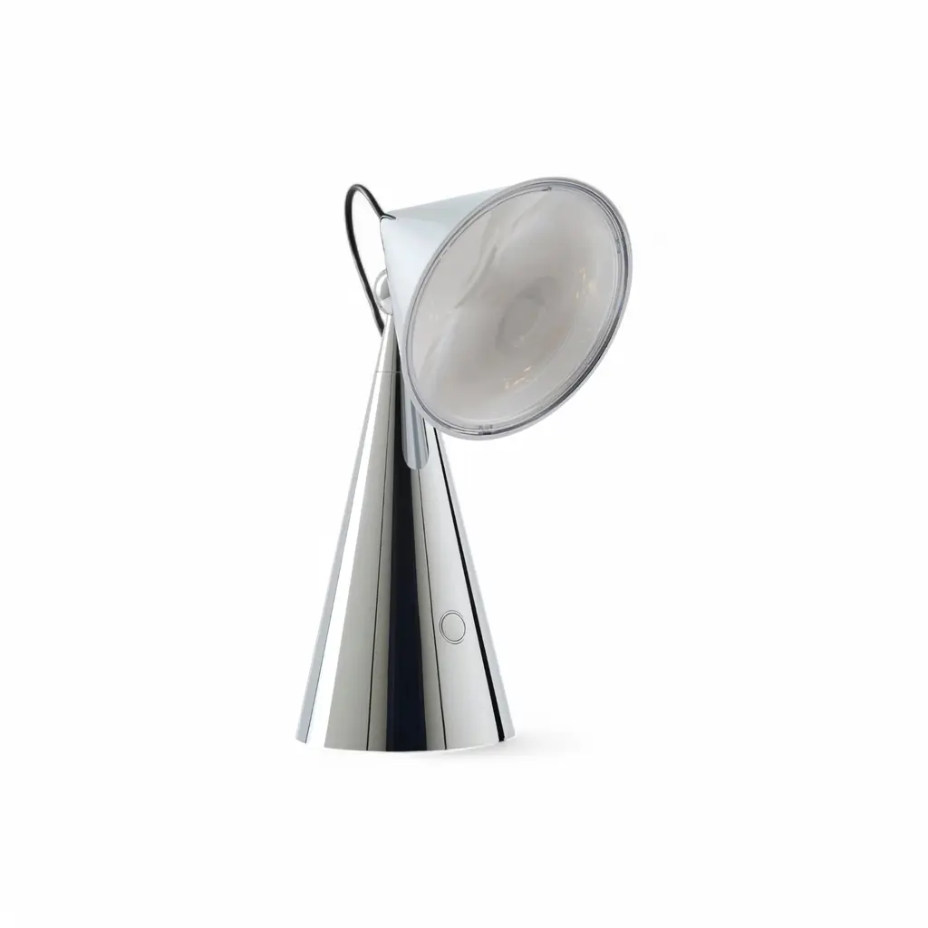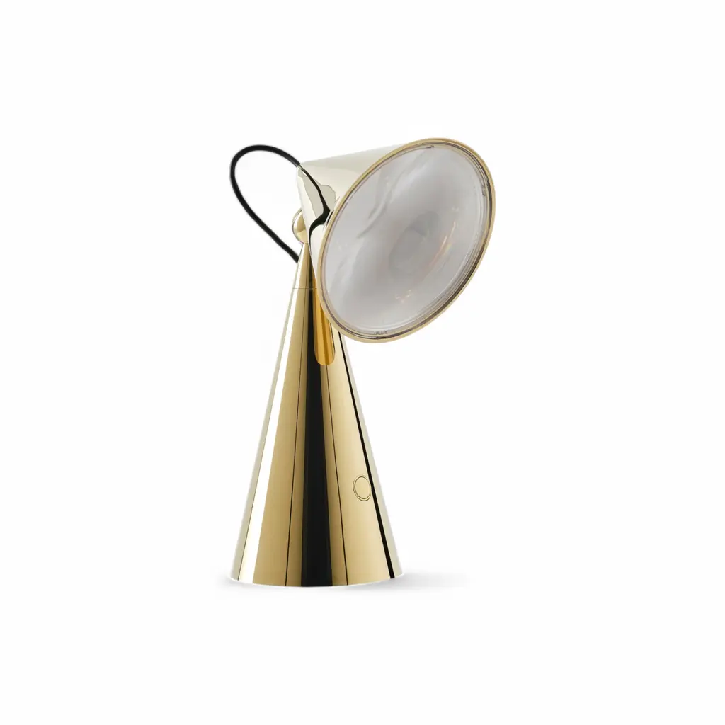 The POSE Portable Lamp by Tom Dixon Studio is a compact, rechargeable light designed for adaptable illumination. Inspired by lighthouses, traffic signals, and precision instruments, its conical form and Fresnel lens technology create sharp, magnified beams. Built for versatility, the POSE Portable Lamp offers two warm light settings, easily adjusted with a press of the power button. The articulated body allows for precise positioning, making it suitable for both residential and commercial spaces. A magnetic USB cable ensures seamless recharging, keeping the lamp ready for use in any setting. Available in Gold, Silver, Indigo, Putty, and Kelp, the POSE Portable Lamp brings functional design and modern aesthetics into a single, minimal form.
