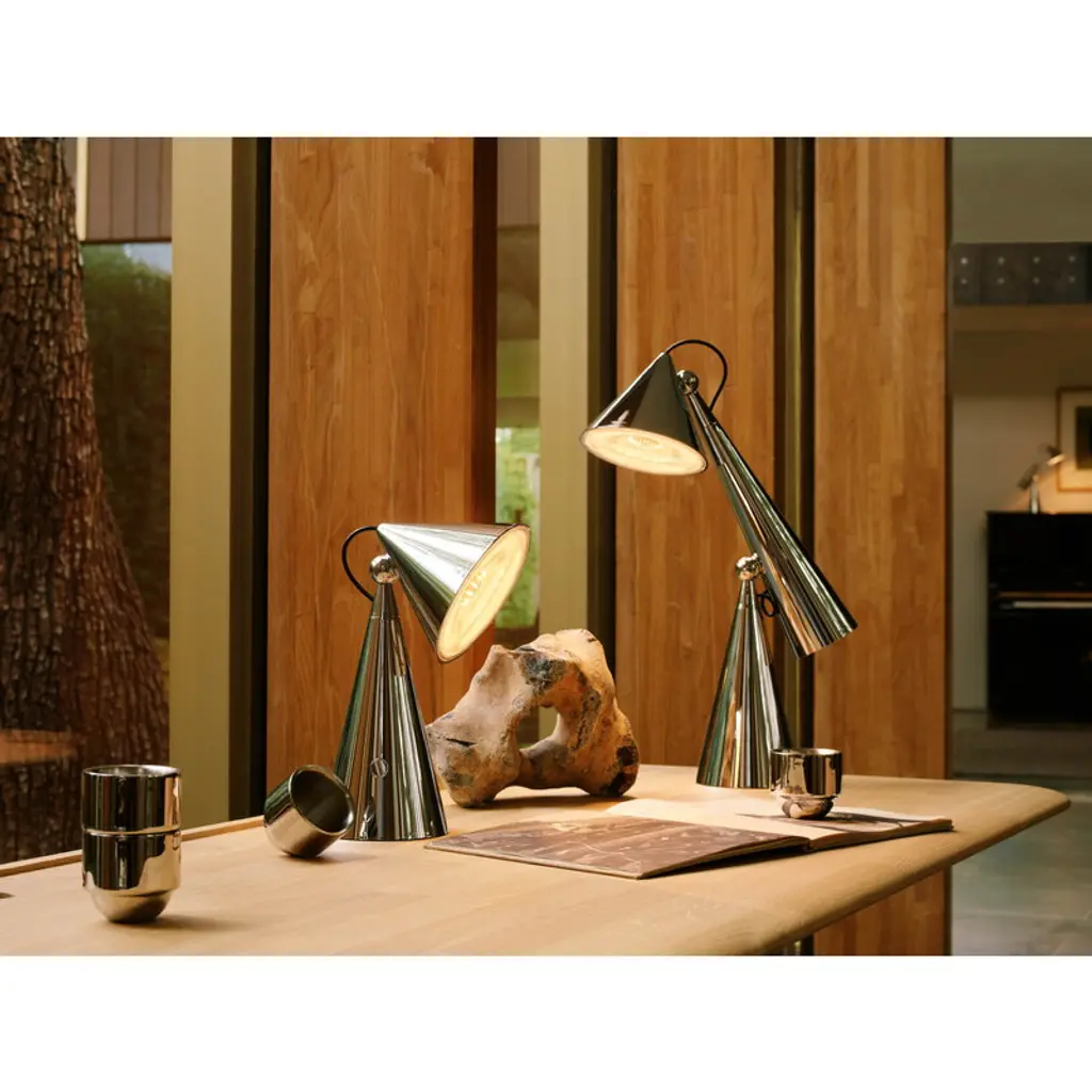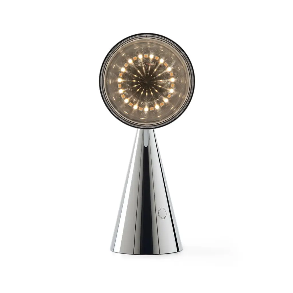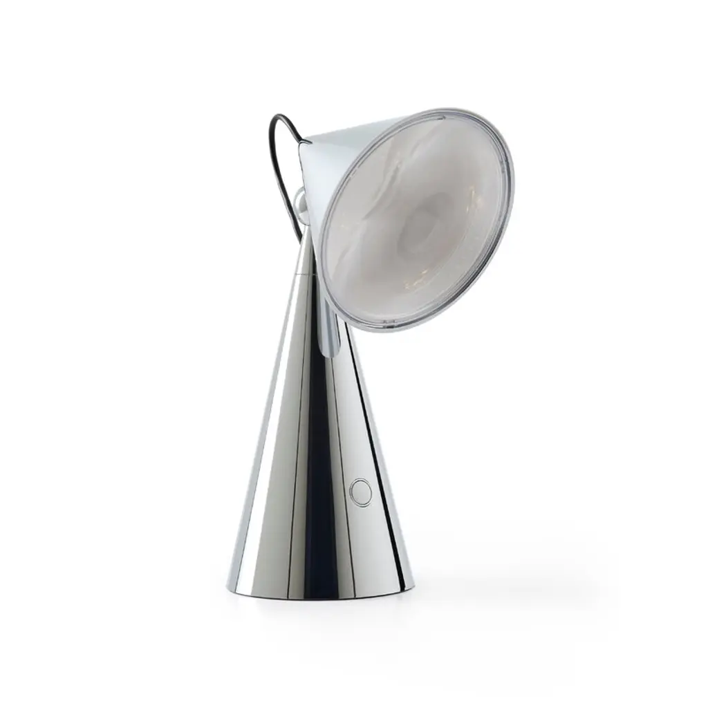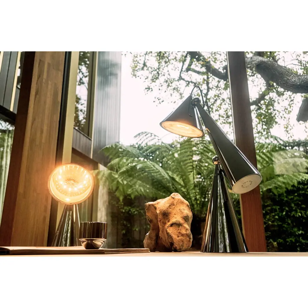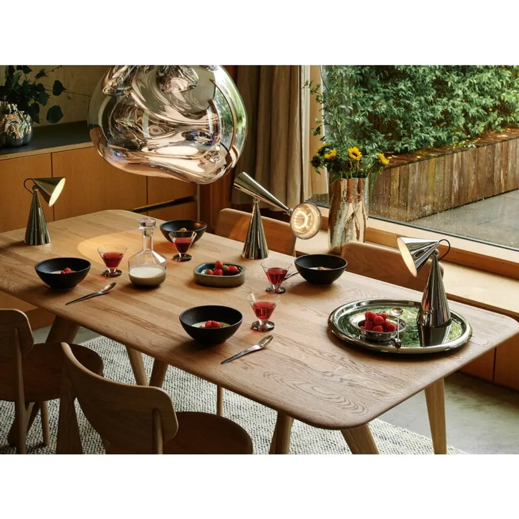 The portable Pose table lamp by Tom Dixon showcases the British brand’s modern take on the classic desk lamp. As you'd expect from the London-based design studio, the lamp blends sculptural elegance with a smart dose of optical science – and it certainly won’t go unnoticed! Despite its compact size, the Pose lamp emits impressively powerful beams of light, thanks to its flat Fresnel lens – the same kind used in lighthouses and scientific instruments for precise light direction. The rechargeable Pose lamp is made of durable ABS plastic and finished with a glossy surface. The sleek and luminous table lamp is perfect for a home office desk but also travels effortlessly wherever light is needed the most: to the balcony, as a bedside lamp or as an atmospheric addition to the dinner table. One charge provides up to 9 hours of illumination.