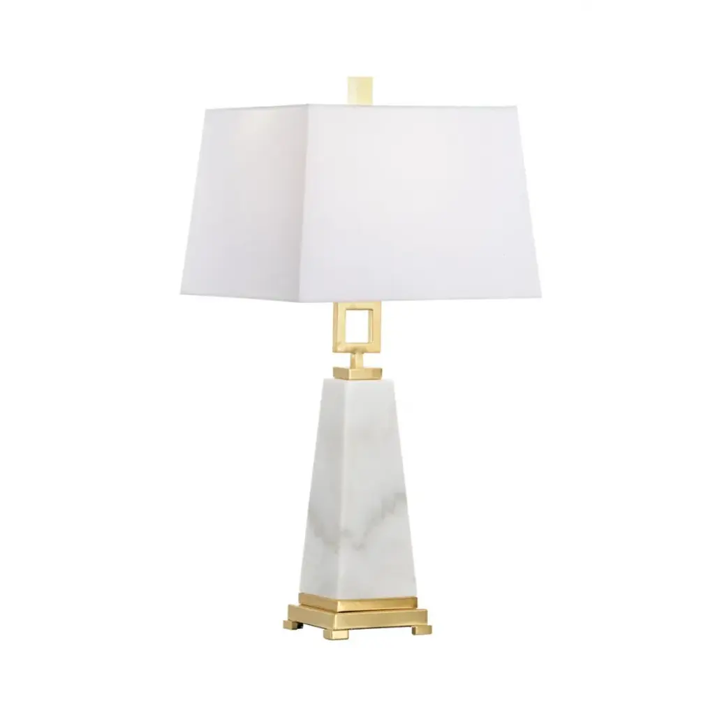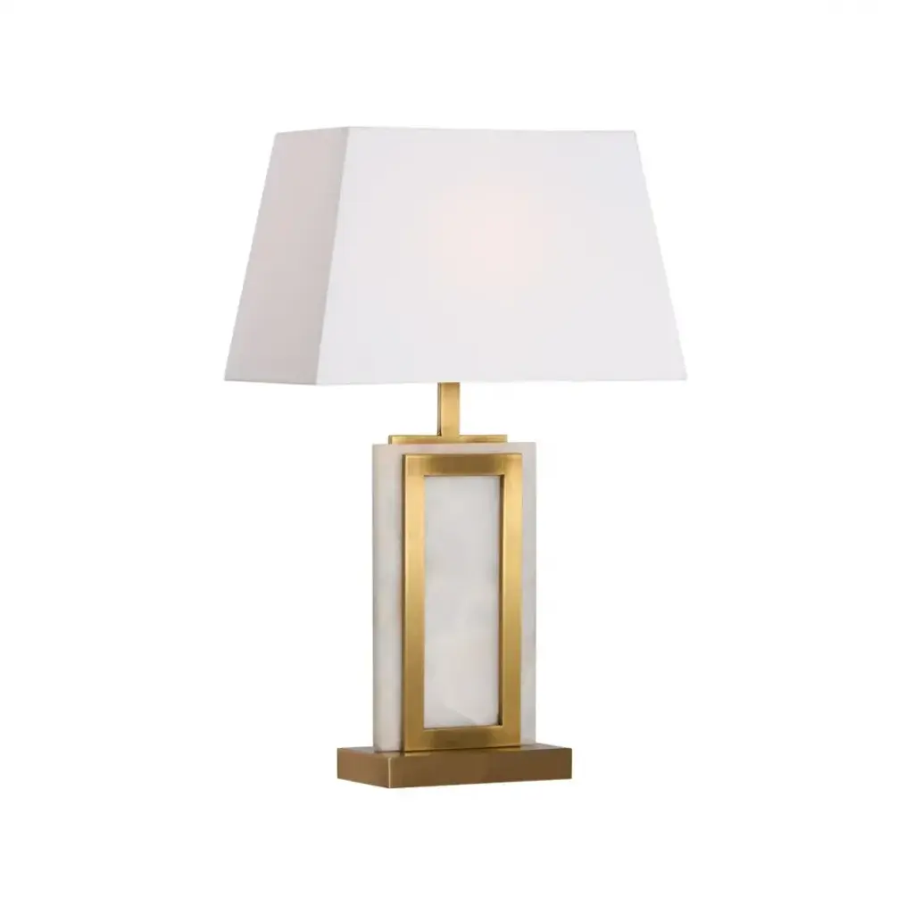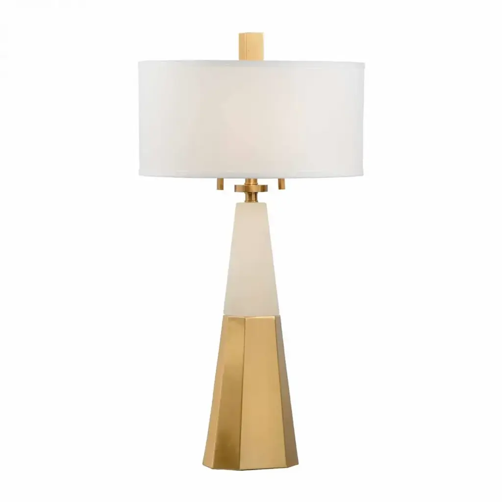 The Posh Block Table Lamp features a brass base and four sheets of alabaster with a hardback fabric shade. As alabaster is a natural product, please be aware that there will always be variations in veining and color. This is to be expected and makes every alabaster product uniquely your own. From a fashion forward perspective, Global Views offers accessories, furniture, statement lighting, and an assortment of rugs and mirrors to add beauty and joy to your home.