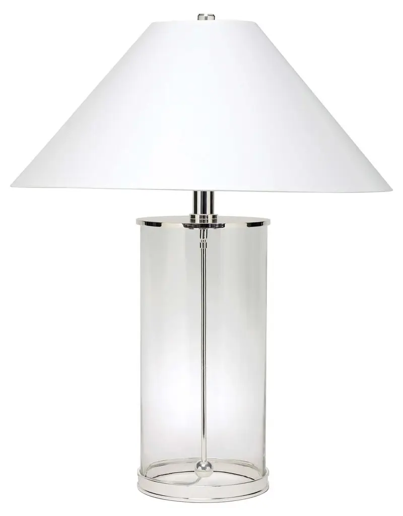 Possini Euro Design Cadence Modern Table Lamp 30" Tall Glass Column White Shade For Bedroom Living Room Bedside Nightstand Office Family House Home