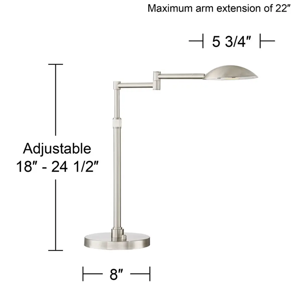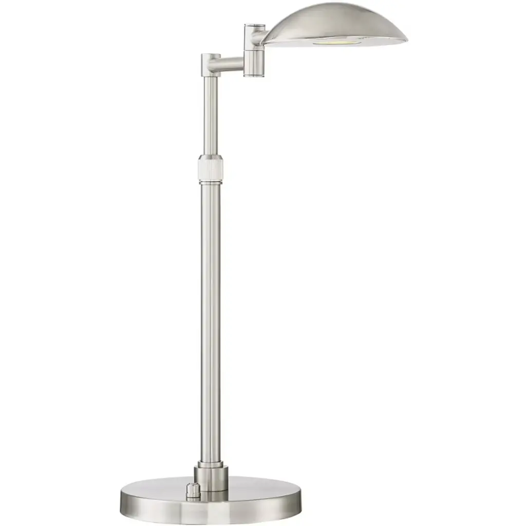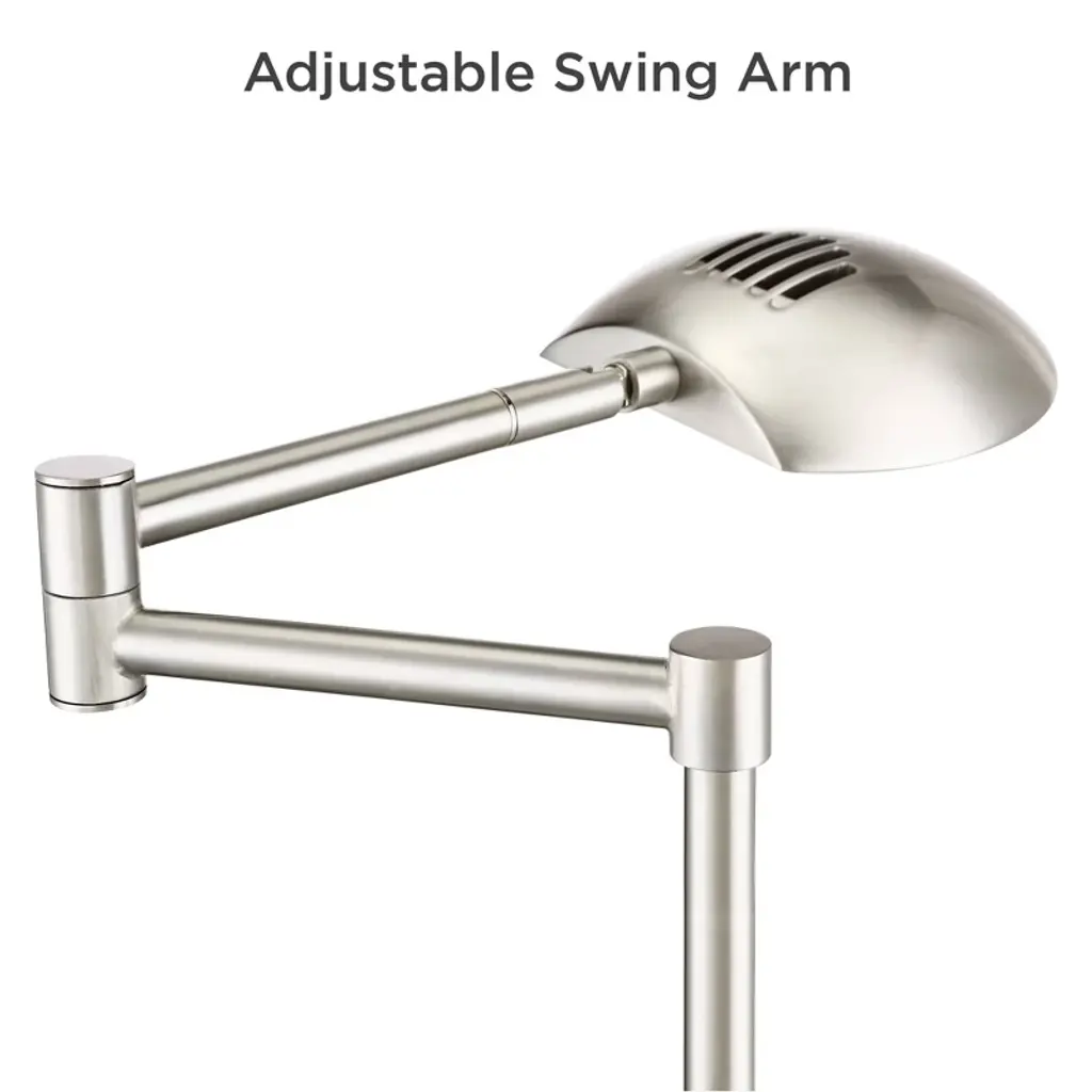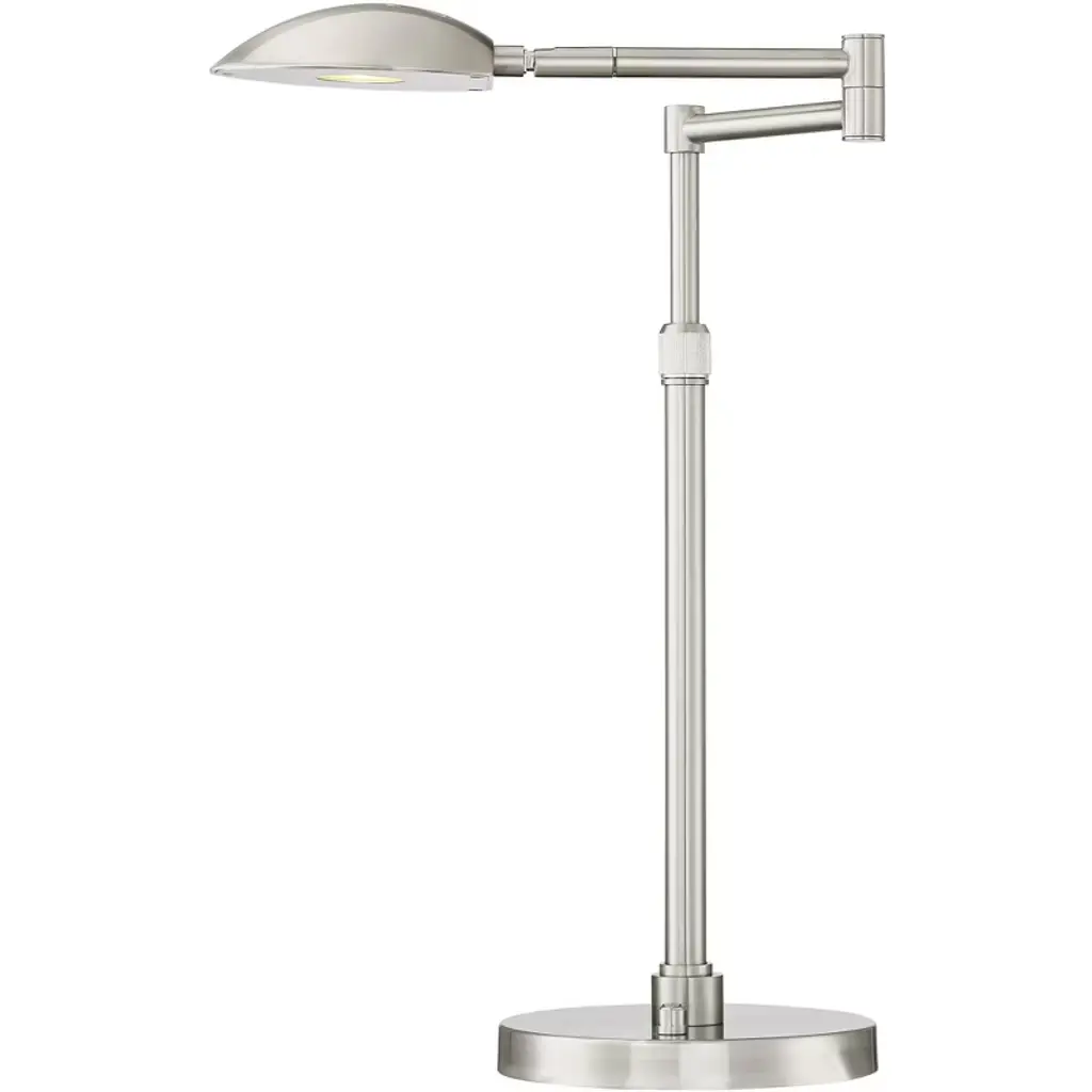 Created by Possini Euro Design®, this swing arm desk lamp is a sleek addition to deliver energy-efficient LED illumination to a living area or home office. This lamp features metal construction with a cool satin nickel finish, offering contemporary flair. The shade is a metal dome, delivering directed lighting that's perfect on a desk or nightstand.