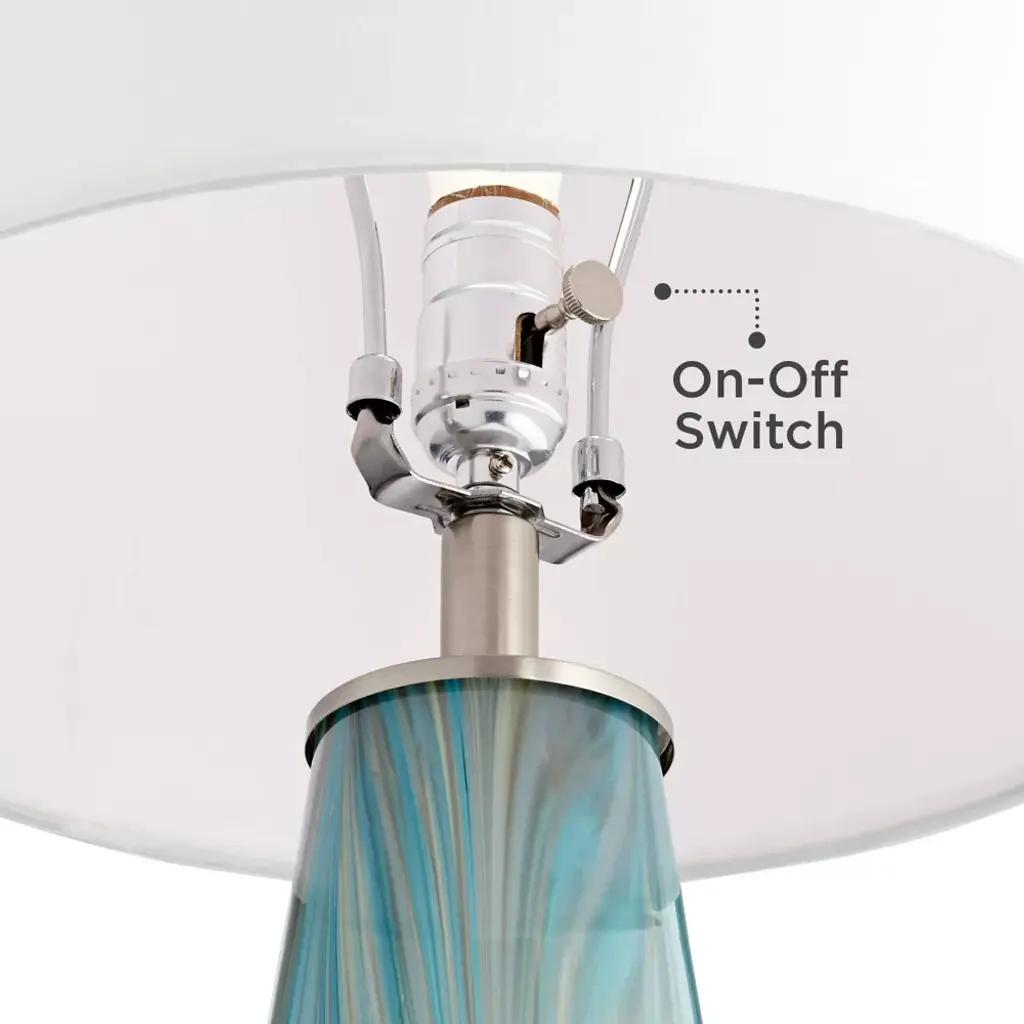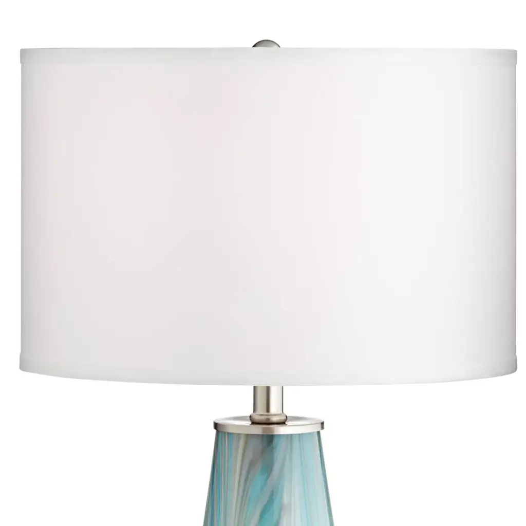 Possini Euro Design Jaime Modern Table Lamp 26" High Blue Gray Art Glass White Drum Shade For Bedroom Living Room Bedside Nightstand Office Kids House