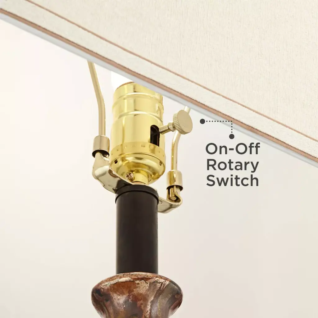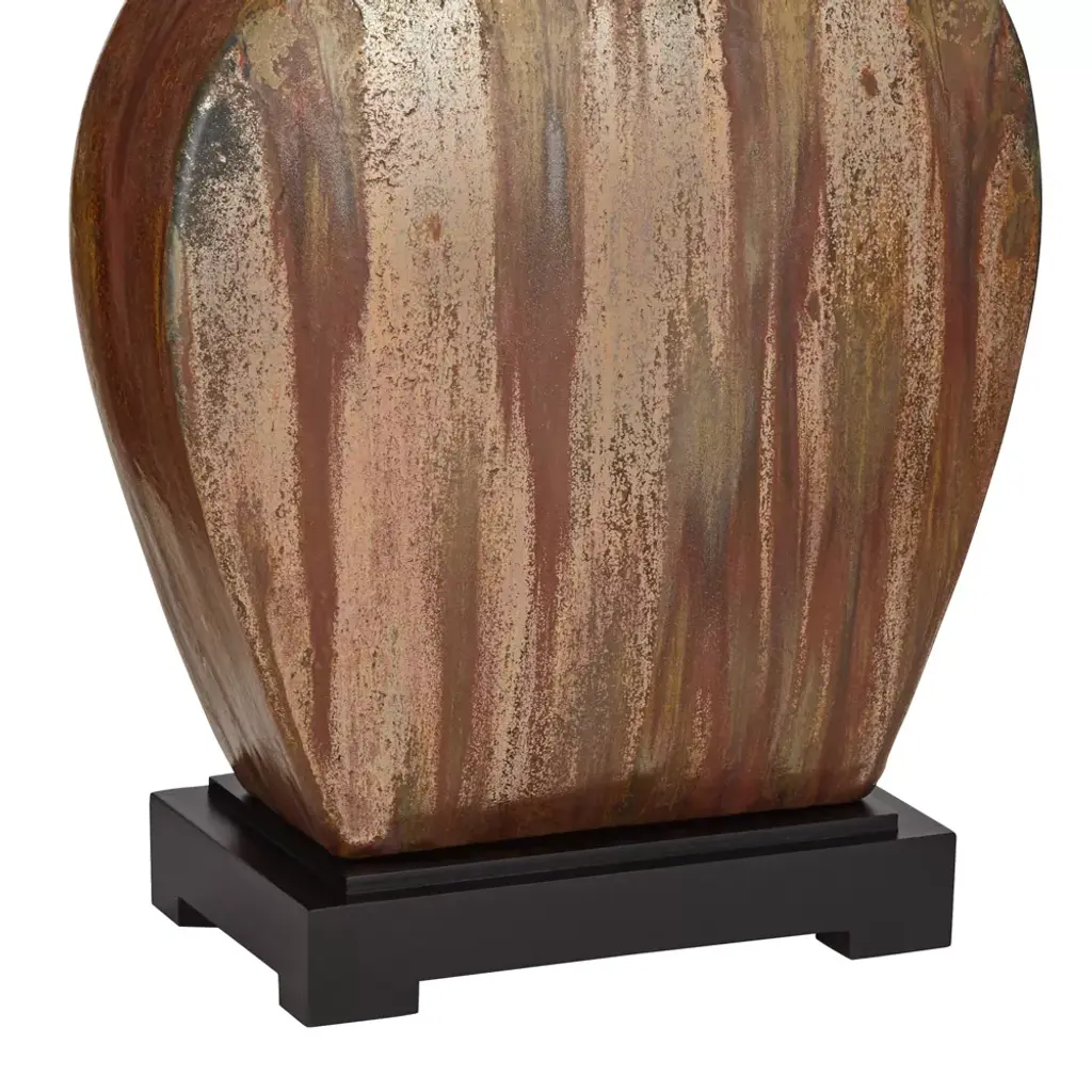 Possini Euro Design Julius Modern Table Lamps 27" Tall Set Of 2 Ceramic Copper Drip Rectangular Fabric Shade For Bedroom Living Room Bedside Office