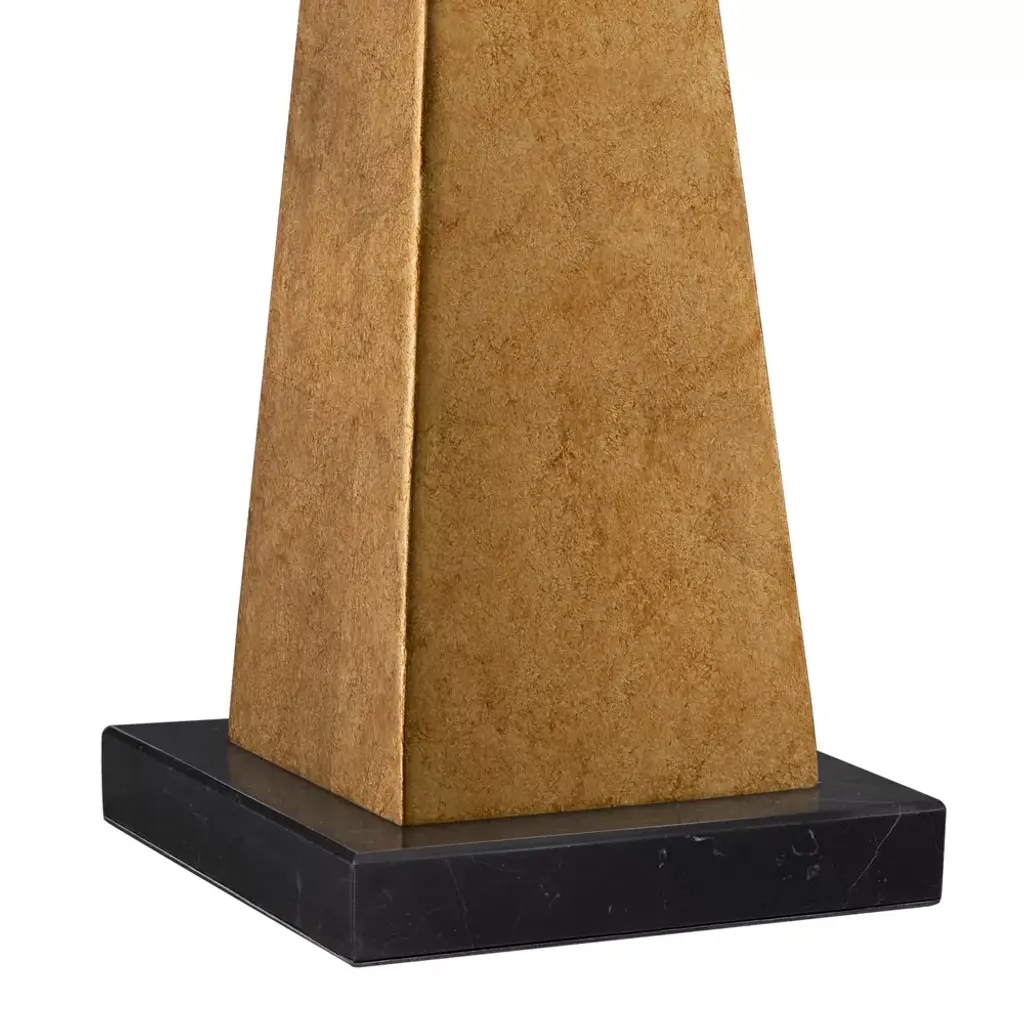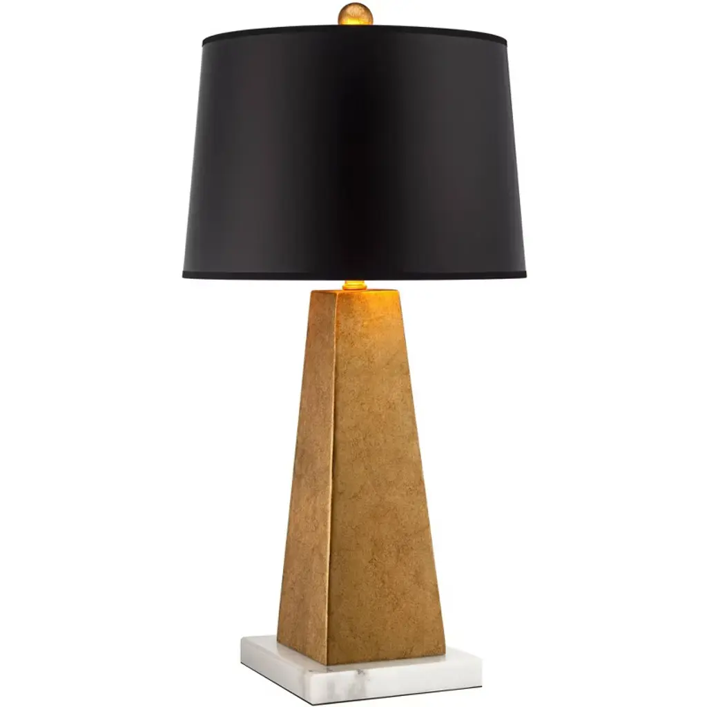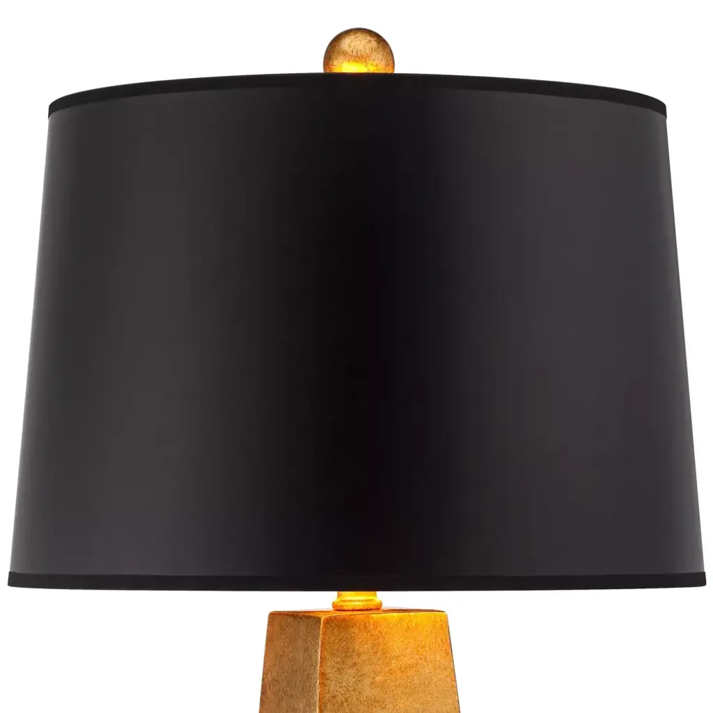 Possini Euro Design Obelisk Modern Table Lamp With Square Black Marble Riser 26" High Gold Leaf Drum Shade For Bedroom Living Room Bedside Home Kids