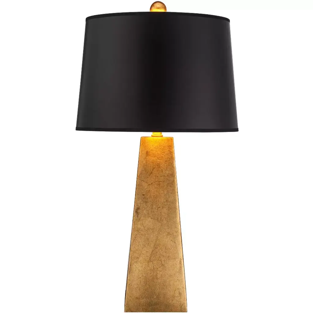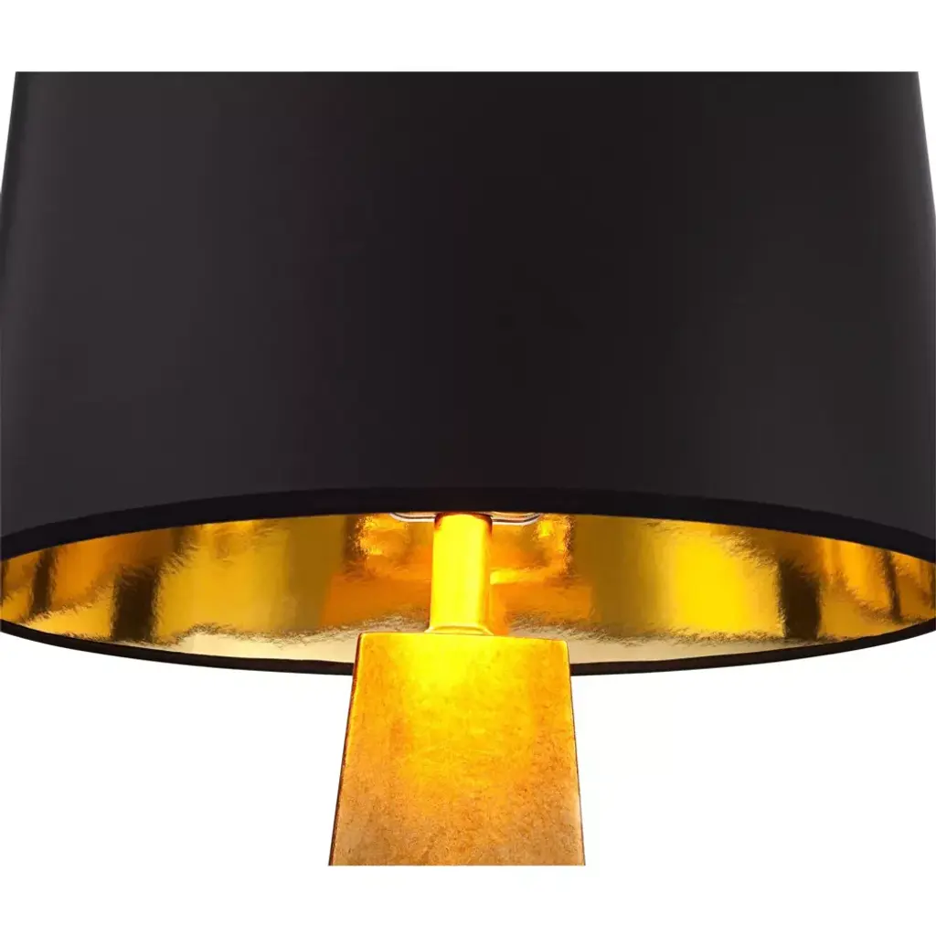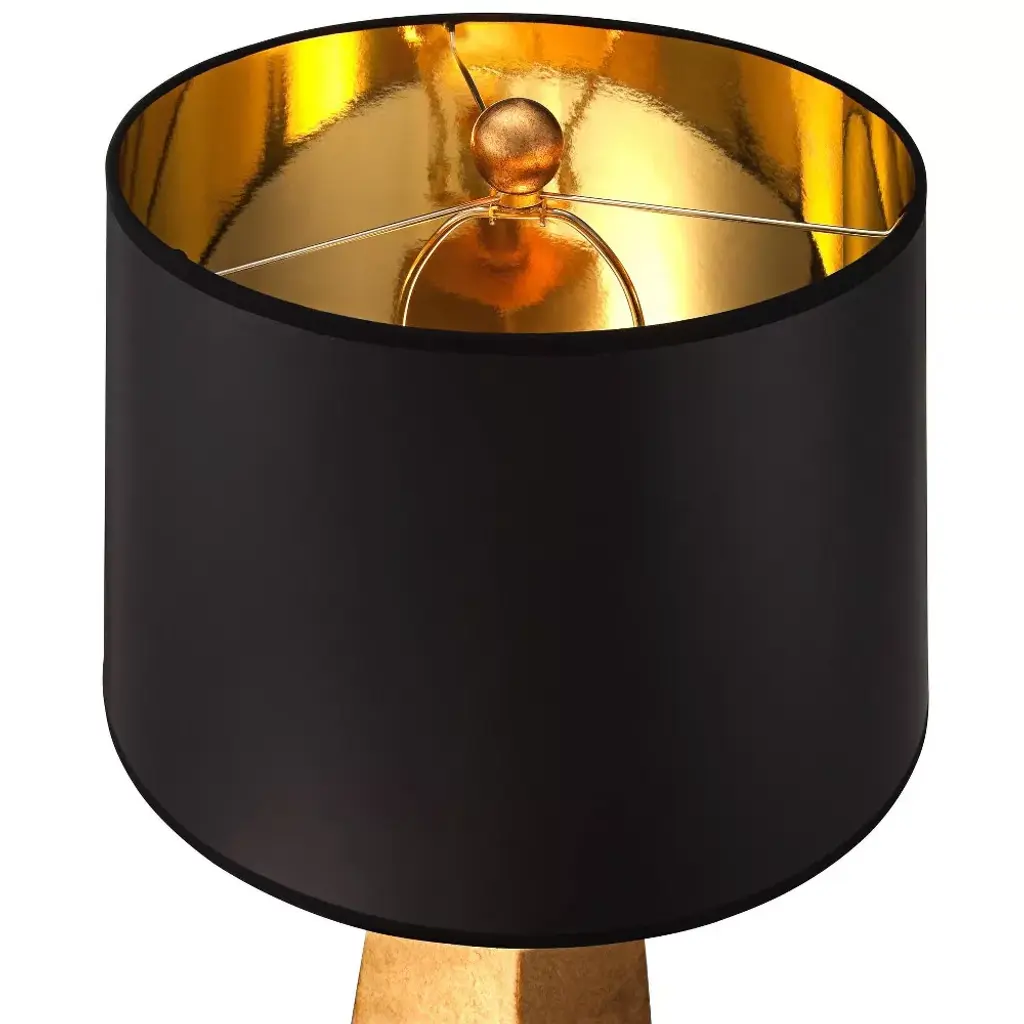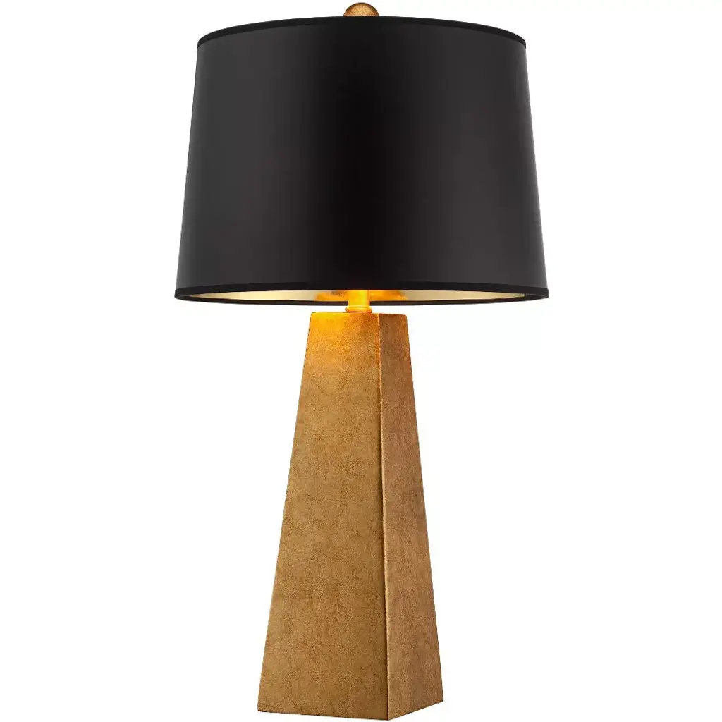 Possini Euro Design Obelisk Modern Table Lamp With Square Black Marble Riser 26" High Gold Leaf Drum Shade For Bedroom Living Room Bedside Home Kids