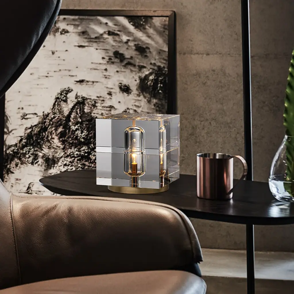 Postmodern Creative Square Crystal Glass Table Lamp 1 Light On / Off Switch