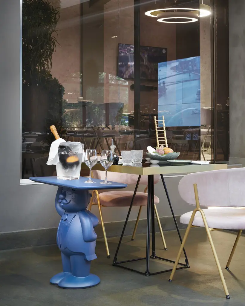 Powder Blue Together Side Table by Favaretto&PartnersDimensions: D 40 x W 66 x H 68 cm.Materials: Polyethylene.Weight: 7 kg.Available in a standard version and lacquered version. Prices may vary. Available in different color options. This product is suitable for indoor and outdoor use. Also available in a lighted version. Please contact us. Our stories happen in places precious to us. SLIDE was born from the desire to produce furniture and light to create the perfect atmosphere that highlights emotions.Design is inspiration, surprise, joy. It's the amazement of seeing something unique for the first time. It's creating spaces to feel good and live surrounded by beauty. It means giving a personal imprint to indoor and outdoor spaces. It means choosing your ideal element that is the perfect setting for emotions and experiences, which become indelible memories. The founder Giò Colonna Romano knows this well, combining his fervent imagination with thirty years of know-how in the processing of plastic resins, giving birth to SLIDE in 2002. The first note of amazement is the luminous furniture, which immediately became a must have in the world of events. Since 2015, his son Marco Colonna Romano has taken over the reins of the company, with the same desire to grow and innovate as his father. Thanks to a new panache and the team of young people it surrounds itself with, SLIDE becomes a beloved company for outdoor furniture: new shapes, materials and tactile textures have won the hearts and ideas of architects and interior designers around the world. SLIDE has thus created complete collections and furnishings, with new shapes, whose lines arise from collaboration with internationally renowned designers of the caliber of Alessandro Mendini, Paola Navone, Stefano Giovannoni, Fabio Novembre, Marcel Wanders, Karim Rashid, Marc Sadler, Francesco Favaretto and Marcantonio.New materials were chosen and inserted, initially soft and rigid polyurethane, and then comfortable cushions, waterproof fabrics, tactile textures ideal for completing the polyethylene furnishings with taste and class. But SLIDE does not forget its first essence, lighting: in recent years it has developed a line of much more technical lamps for large areas, essential in shape but with great visual impact. For the first time, Slide has managed to give an artisanal twist to an industrial process: to meet the increasingly high demands of living, the production creates non-replicable shades, in which every small imperfection enhances the industrial process and makes each piece unique . Because Slide's strength has always been the careful reading of the market, the creation of something that didn't exist and which then became necessary: here Slide continues its production in Buccinasco, on the outskirts of Milan, but its name and its products reach more than 130 countries around the world.