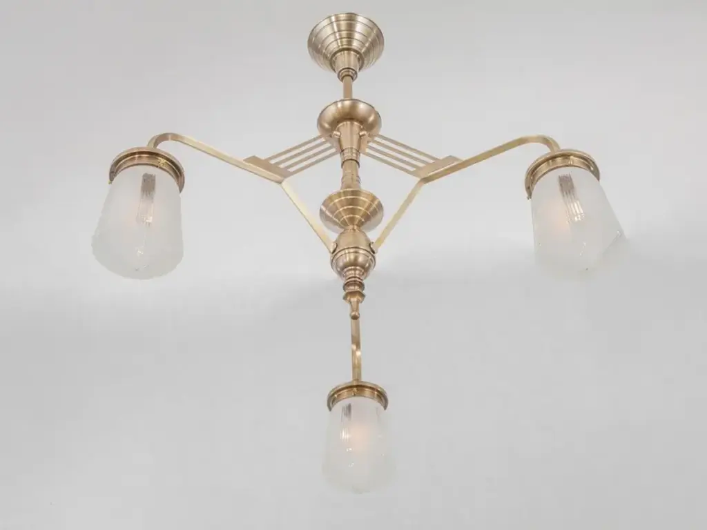 Prague 3/I is a brass chandelier available in different finishes.Finishes: Antique, Shiny brass, Matt brass, Shiny nickel, Matt nickelCapacity: 3 x 75W E27The PRAGUE collection is one of the largest ones, featuring many delicate specimens with strict geometric forms and decor. It features many sizes, thus everybody can choose their favourite Prague lamps for their interior. The table lamps are so minimalistic that they fit into the most cutting edge modern interior.