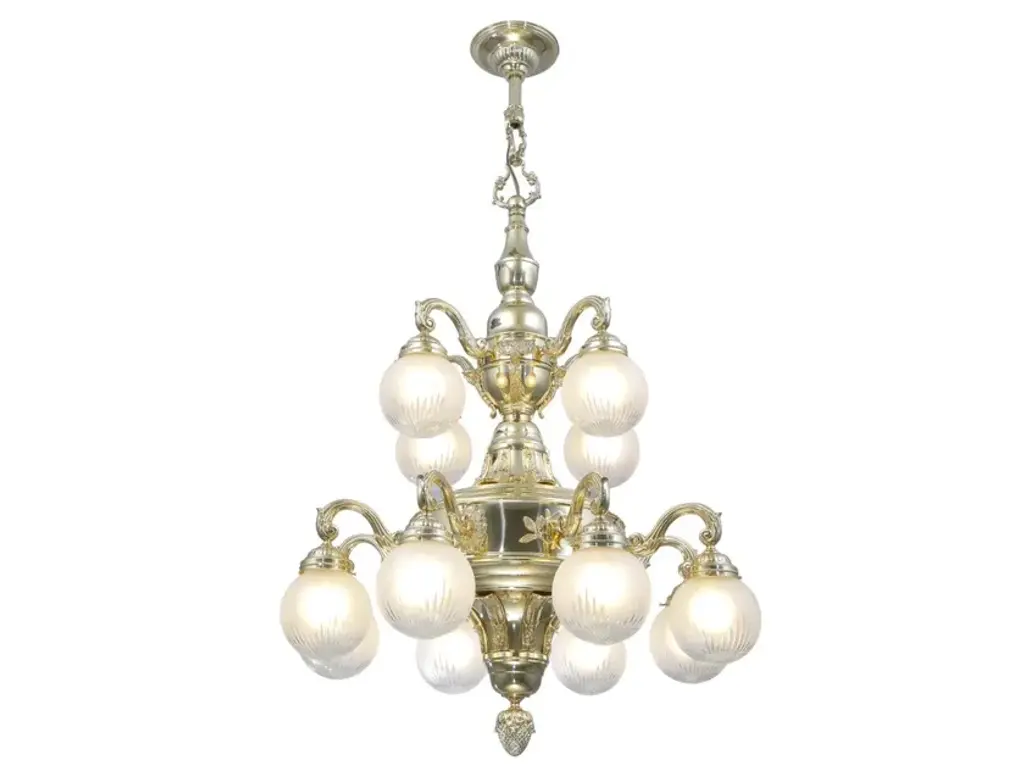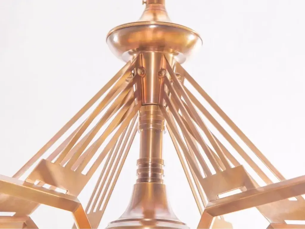 Prague 9/I is a brass chandelier available in different finishes.Finishes: Antique, Shiny brass, Matt brass, Shiny nickel, Matt nickelCapacity: 9 x 75W E27The PRAGUE collection is one of the largest ones, featuring many delicate specimens with strict geometric forms and decor. It features many sizes, thus everybody can choose their favourite Prague lamps for their interior. The table lamps are so minimalistic that they fit into the most cutting edge modern interior.