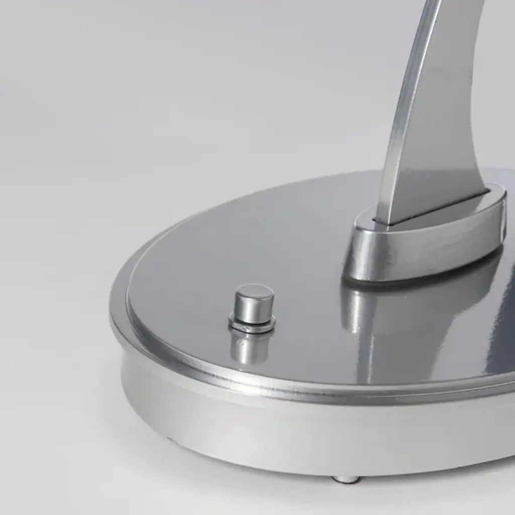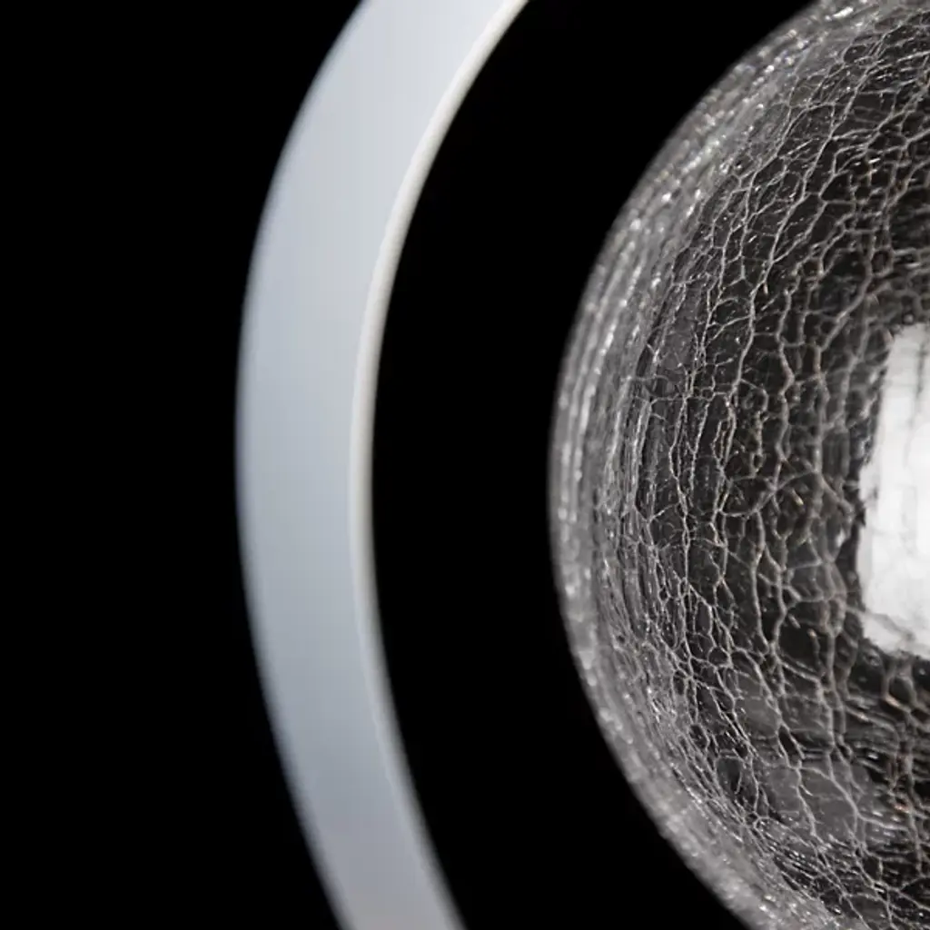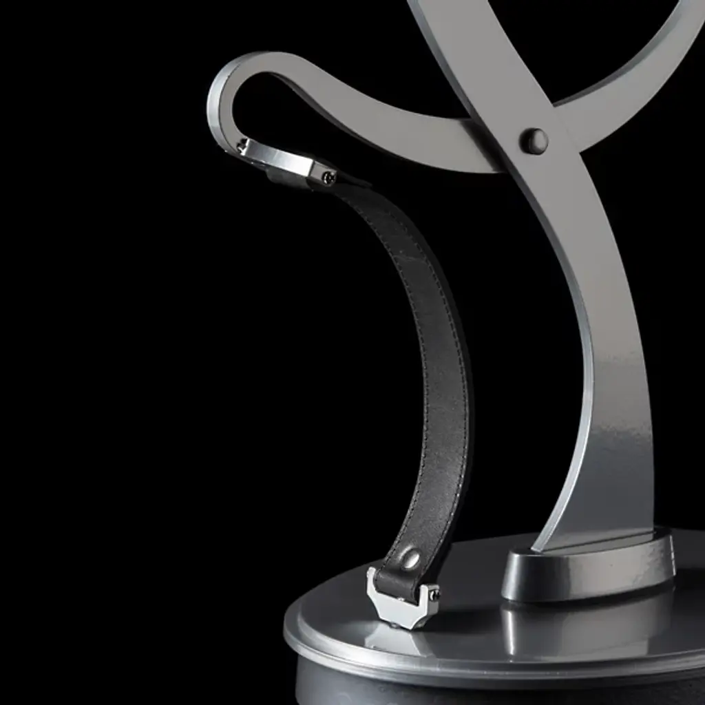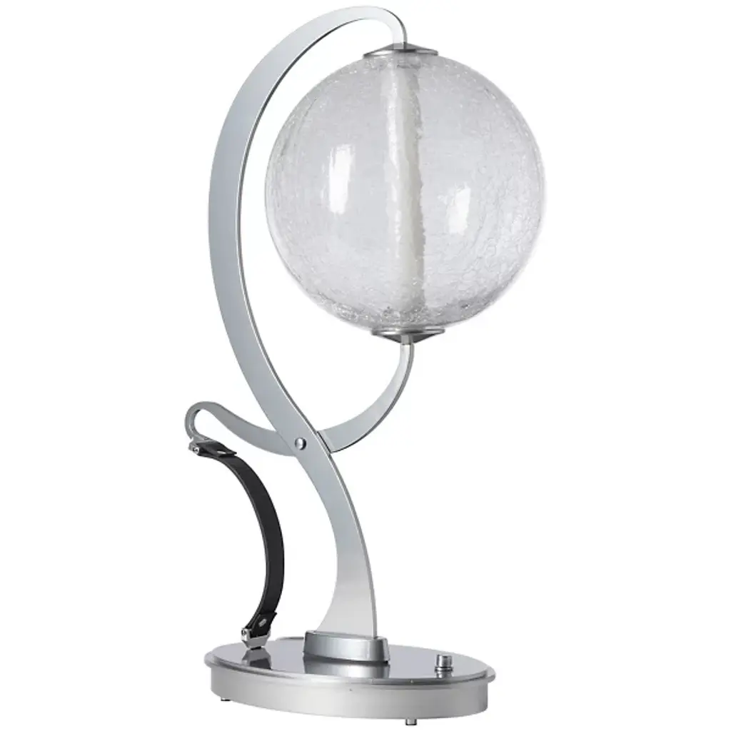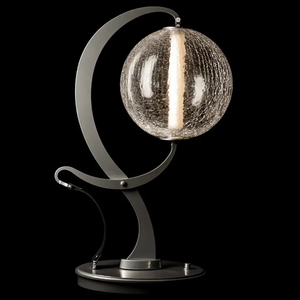 A touch of the fantastical for a modern desktop or side table. The Pression LED Table Lamp by Hubbardton Forge is at once dramatic, whimsical and technologically innovative. Curved steel “tongs” support the glass globe shade at the top and bottom, and they also provide the power needed to illuminate the LED light tube housed within. A leather strap accent curves from the lower arm to the base and adds a pleasingly unexpected textural element.