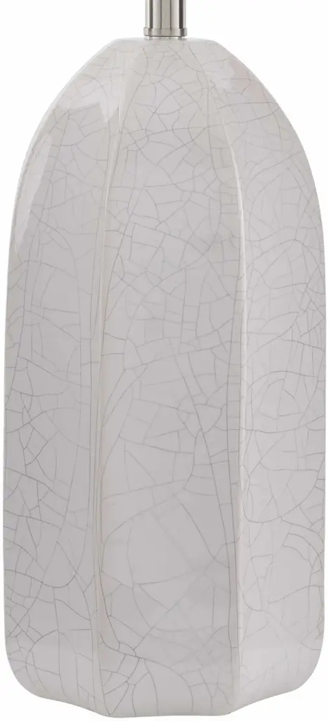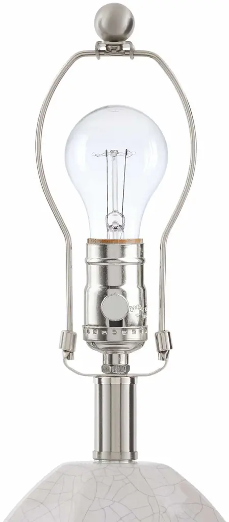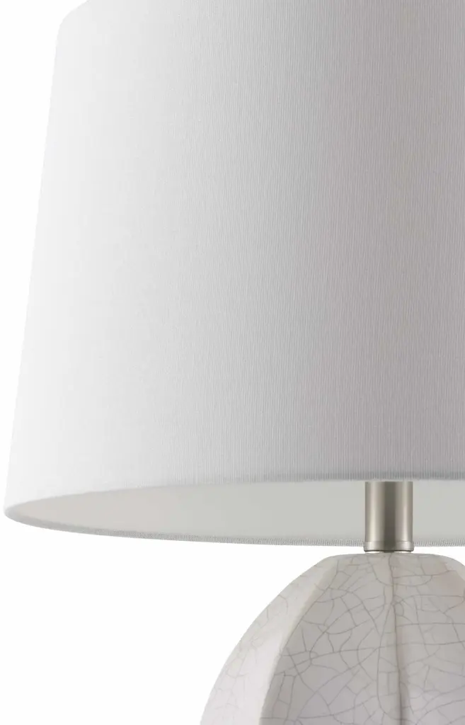 Collection: Prievidza Colors: White, Metallic - Nickel, Translucent Material: Body: Ceramic / Shade (Outside): Linen, Linen / Shade (Inside): Linen, Plastic / Finial: Iron Styles: Traditional Made In: China Lighting Type: Accent Table Lighting Shade Material: Linen, Plastic Shade Color: White Cord Length: 6' Switch Type: 3-Way Number of Bulbs: 1 Socket Type: E-26 Bulb Wattage: 150W