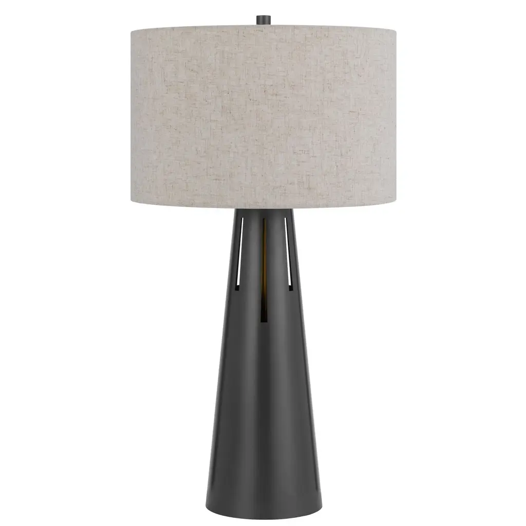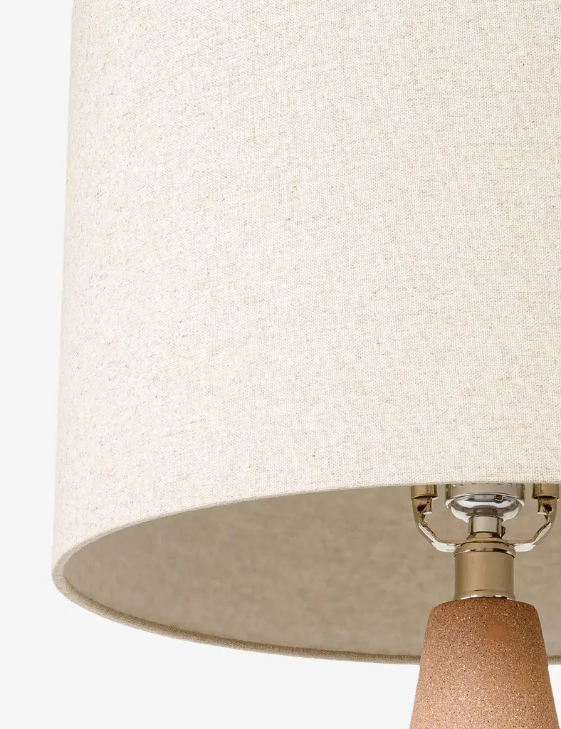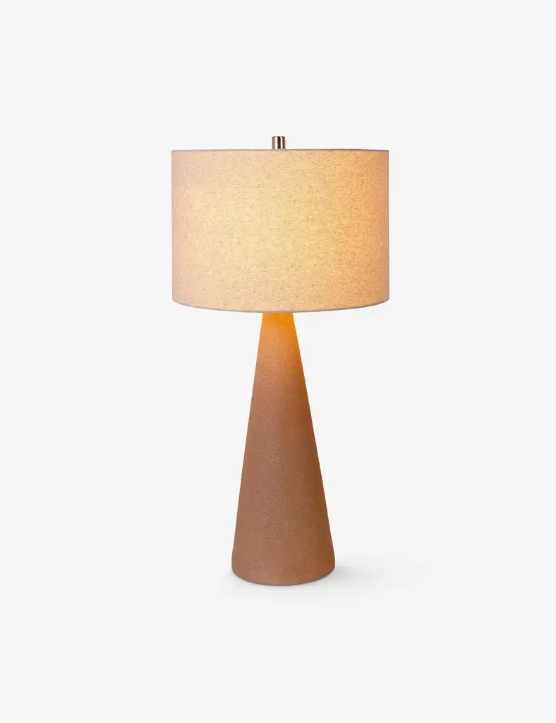 Bring a touch of light and color to the room with this stylish table lamp. Its tapered shape stands tall with a slim silhouette, offering a sculptural accent that stands out without dominating the tabletop. We love the textural play of the lamp's painted concrete base against the linen shade and polish of the final.