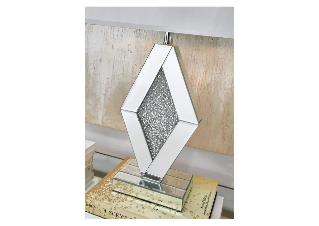 With an elegant array of mirrored glass and crystal beads, the Prunella table lamp adds a brilliant touch of wow to any setting. It's topped with a rectangular empire shade for an utterly luxe look. Weight 11.000 lbs. (4.95kgs.)