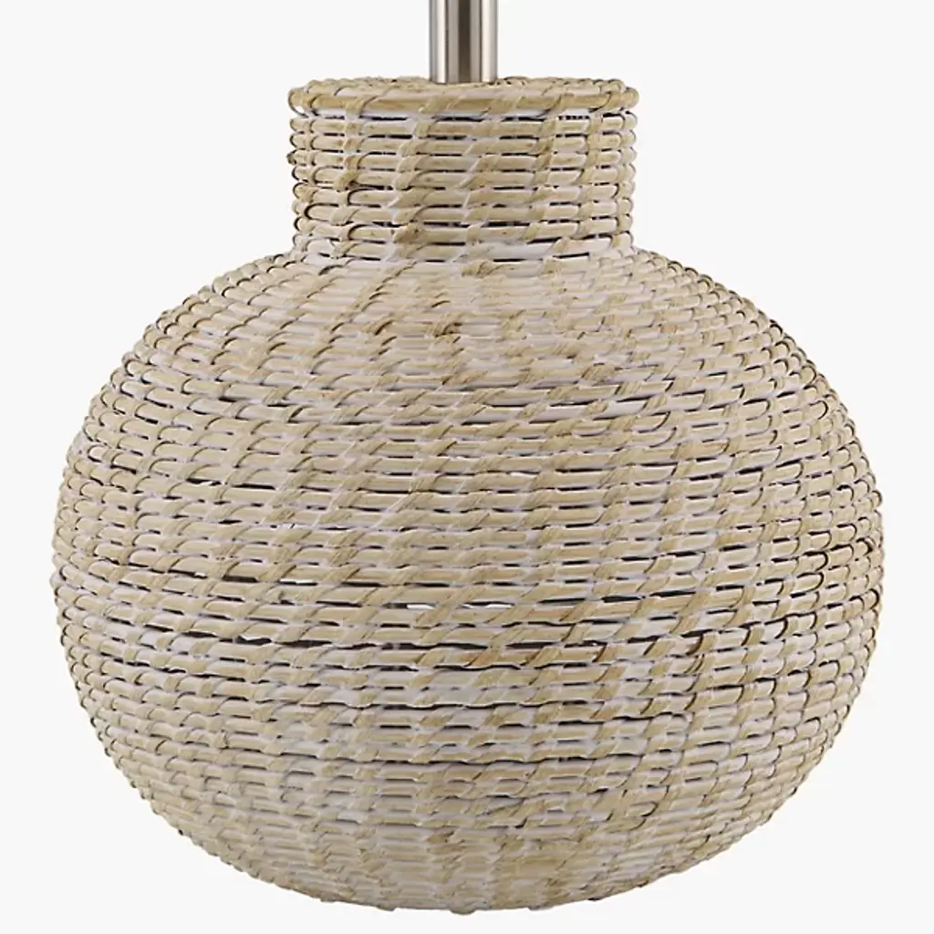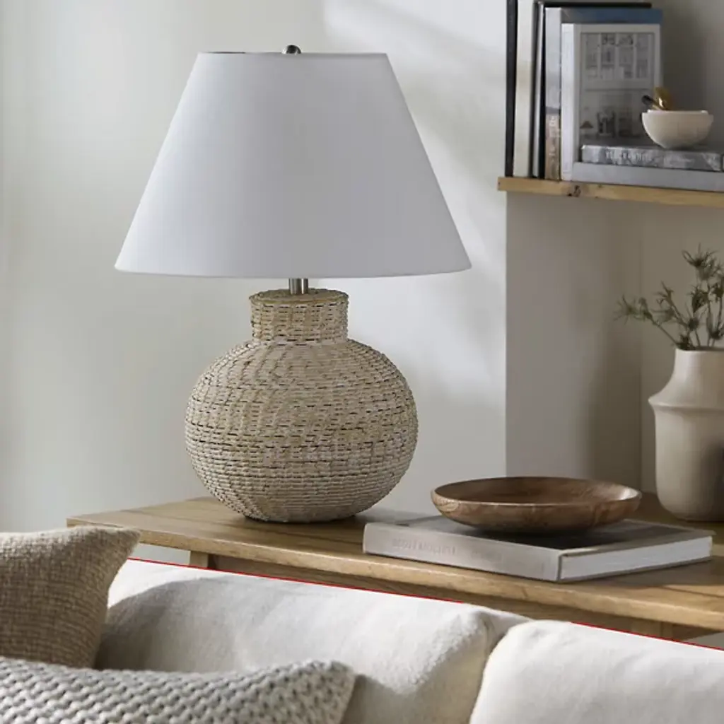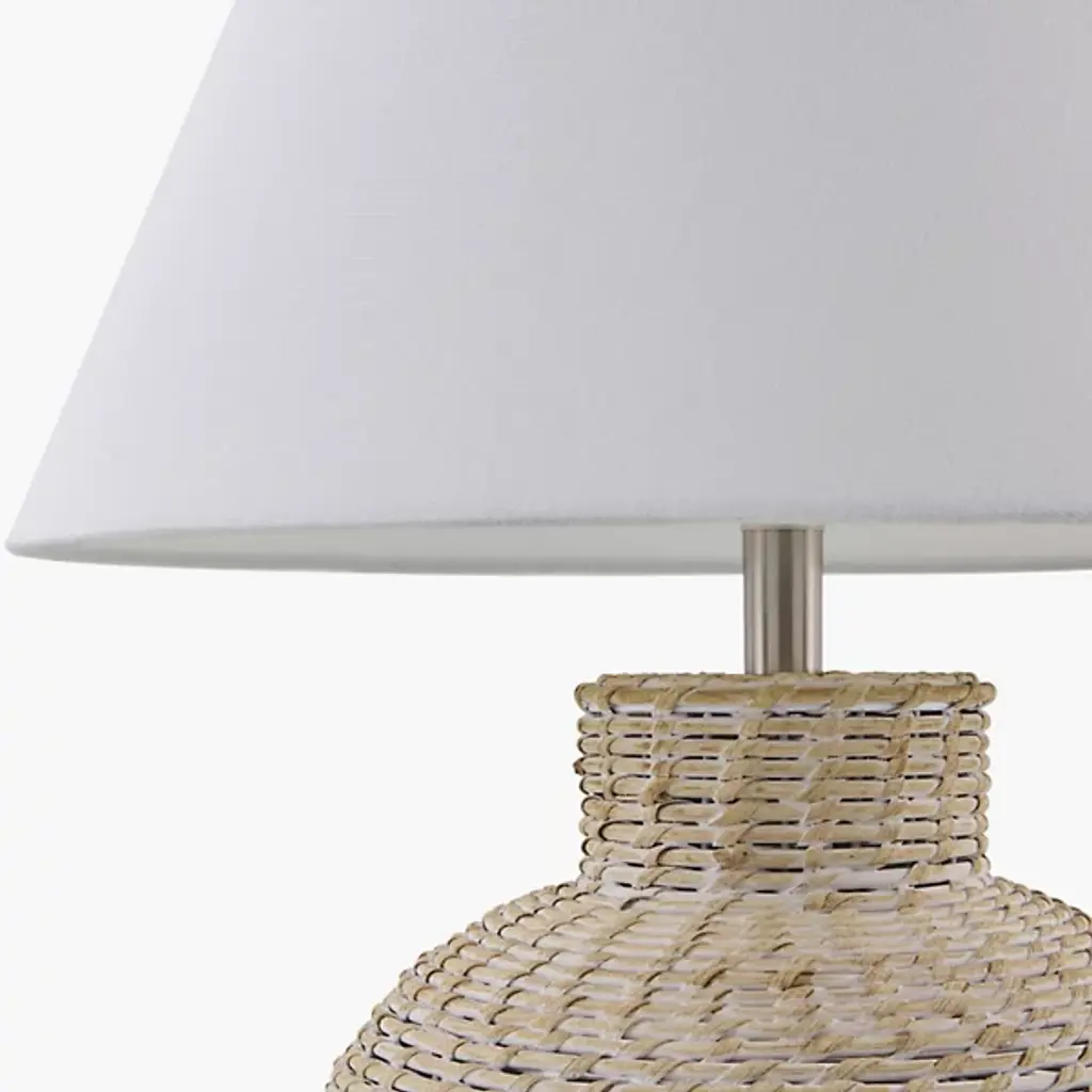 The Pubil Accent Table Lamp from Surya showcases expertly woven rattan that creates subtle light and shadow interplay as illumination filters through its texture. This rustic traditional design emphasizes natural craftsmanship while maintaining refined proportions. Its empire-shaped linen shade balances the organic base while spreading light evenly throughout your space and a 3-way switch provides flexible brightness options to match different activities. The lamp’s iron finial introduces a purposeful metallic accent that completes this design and makes it an ideal fit for bedside tables, consoles, and office desks.