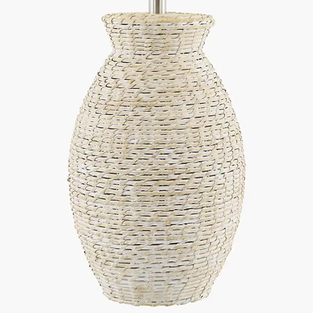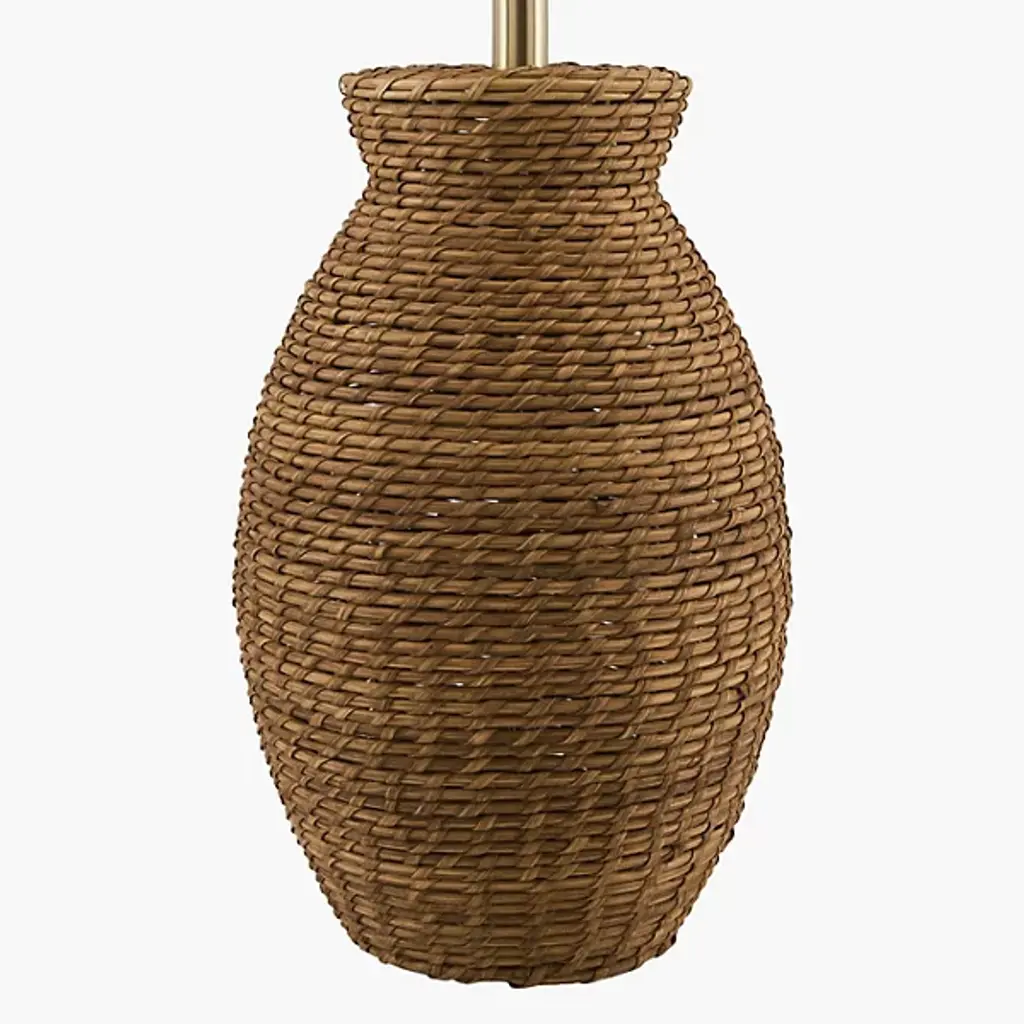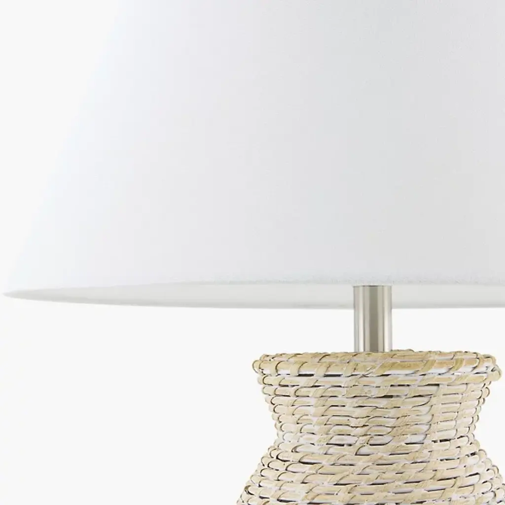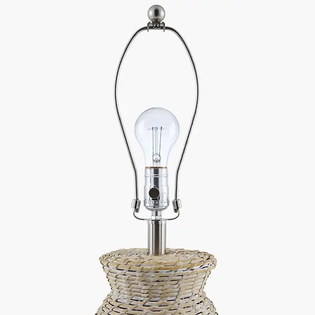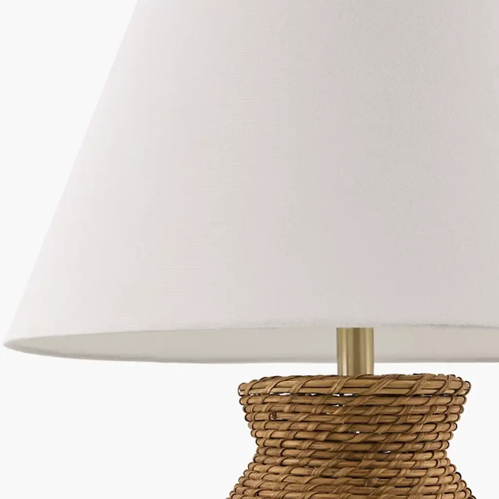 The Pubil Large Table Lamp from Surya showcases the artisan skill behind each strand of intricately woven rattan. This traditional design introduces natural texture through handcraftsmanship rather than machine precision. Its proportional drum-shaped linen shade distributes light evenly without harsh shadows or glare. An intentional iron finial creates subtle material contrast against the organic rattan base, while the practical 3-way switch adjusts brightness without disrupting your comfort. The thoughtful dual-layer shade—linen exterior protecting a durable plastic interior—ensures this lamp remains both beautiful and functional through years of daily use.