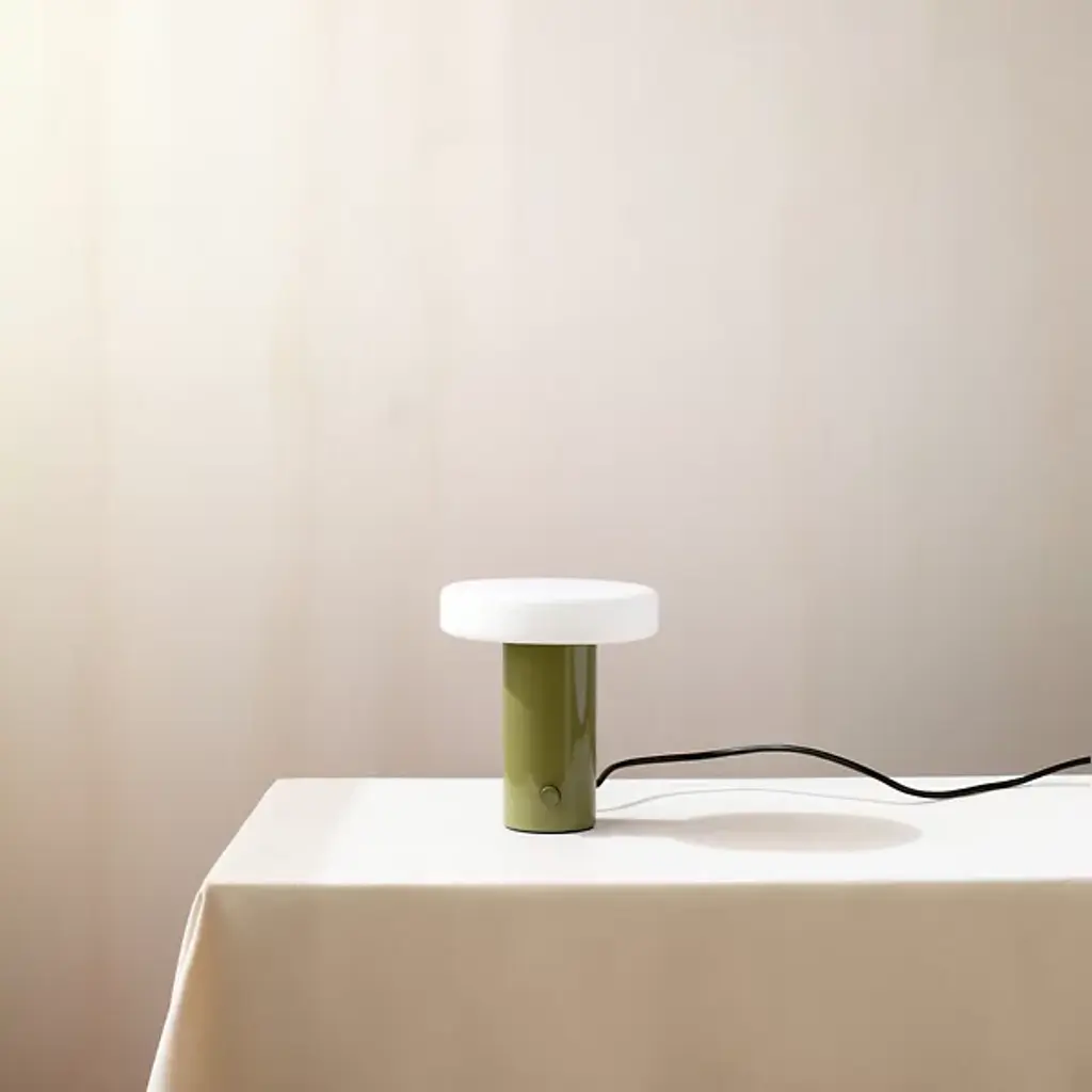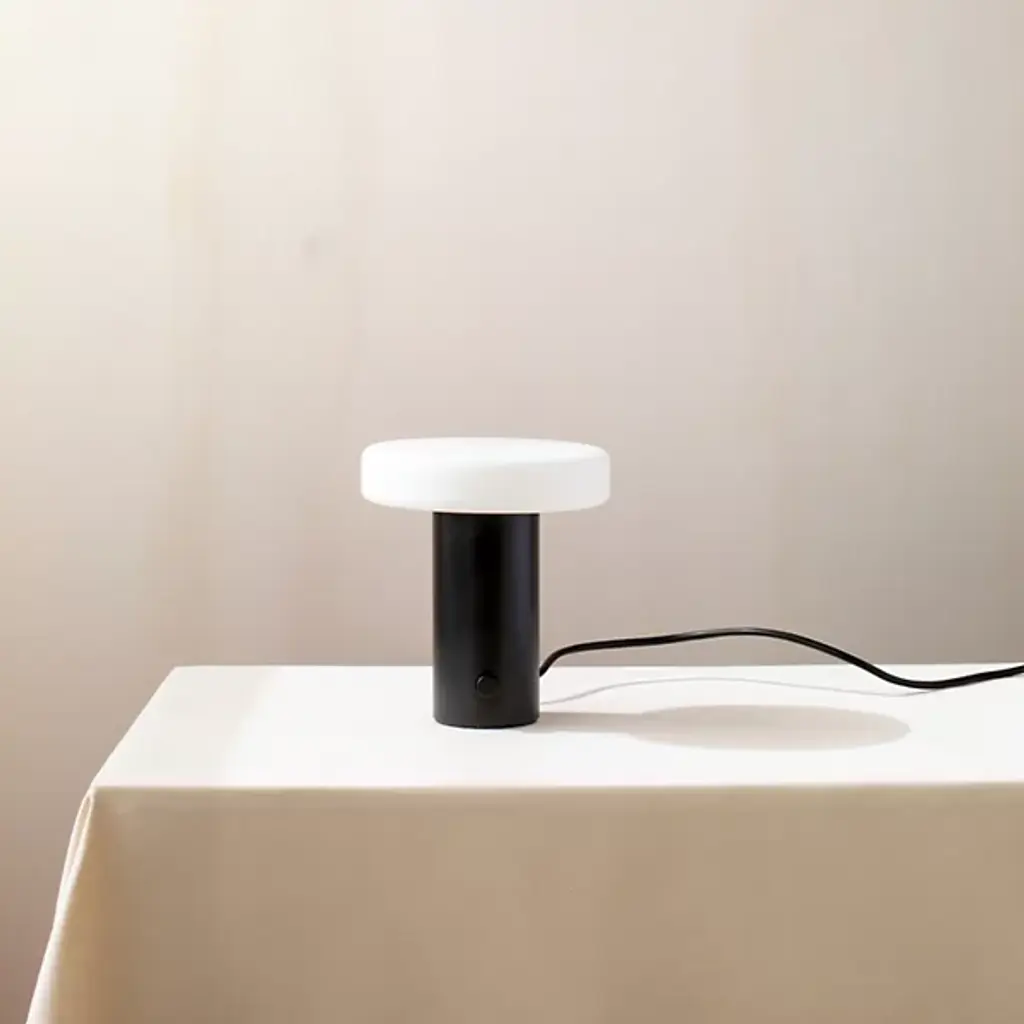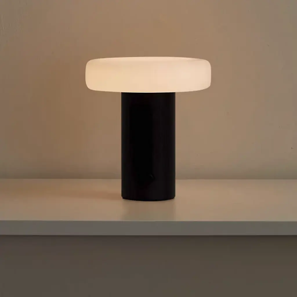 The Puck Table Lamp from In Common With is an elemental addition to any tabletop or flat surface needing light, artfully intersecting a hand-blown glass disc diffuser with a sturdy steel base. Its wide variety of finishes adds versatility, while a switched base ensures effortless control over the light. Designed to prioritize simplicity over fleeting trends, it is crafted from steel and hand-blown glass, expressing Contemporary simplicity and Artisanal Modern intricacy, making it a sophisticated yet understated choice for illuminating your home.