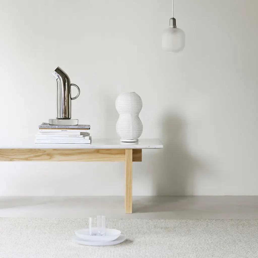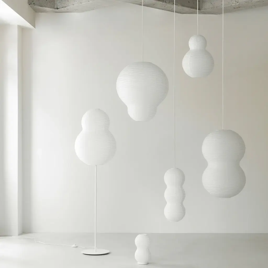The Puff Lamp Collection is a modern and sculptural take on the traditional rice paper lamp, designed with organic and simple principles in mind. The Puff Lamp Collection honors one of the oldest traditions within lamp making in Asia. Rice paper lamp shades have been used for centuries and have originally adorned the halls of temples. It was also a trip to Japan that sparked the inspiration for the Puff Lamp Collection, where designer Saskia Huebner saw endless variations of the rice paper lamp. This became a motivation to find the right balance between sculptural playfulness and functional minimalism and resulted in a collection that invites you to arrange different voluminous shapes in a playful matter. Puff is thus suitable for the large hotel lobby, restaurant, or a small private room. Voluminous but LightThe rice paper material makes it possible to create immense volume, without wasting unnecessary material or creating a heavy, inconvenient design. The rice paper allows for a natural, warm light, as it gently shields the light source from being too bright and overexposed. The lamps thus submit a soft light, while appearing like organic sculptures in the given space.