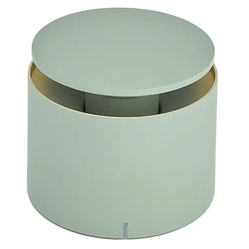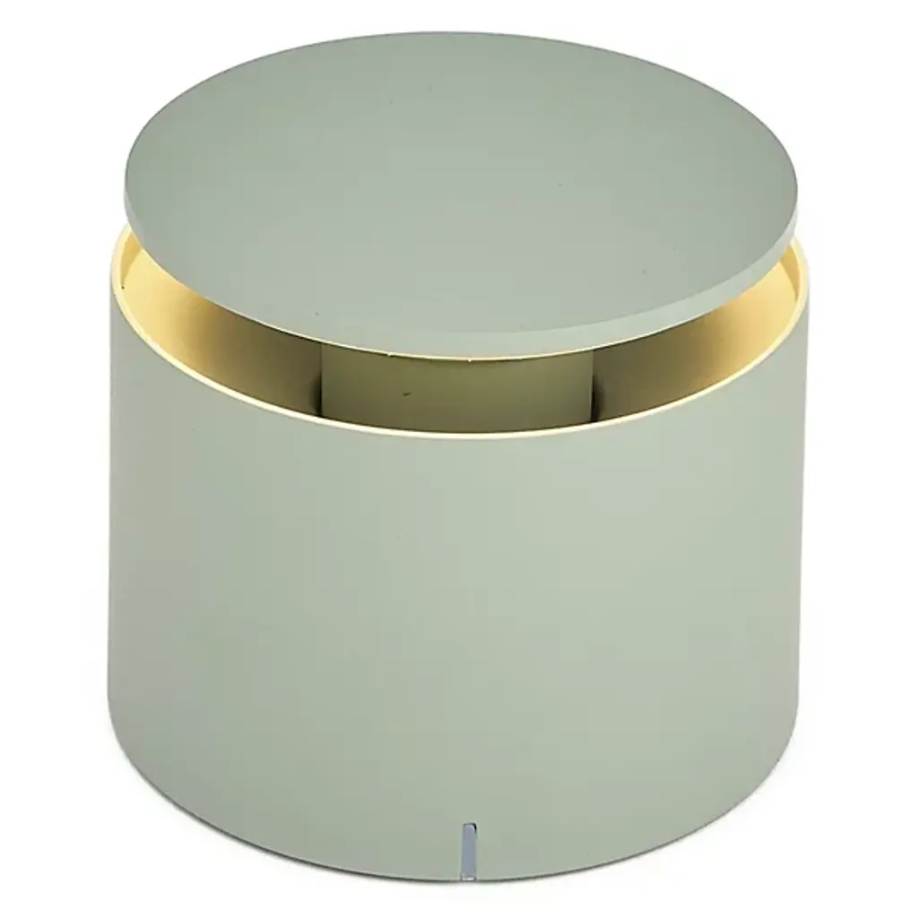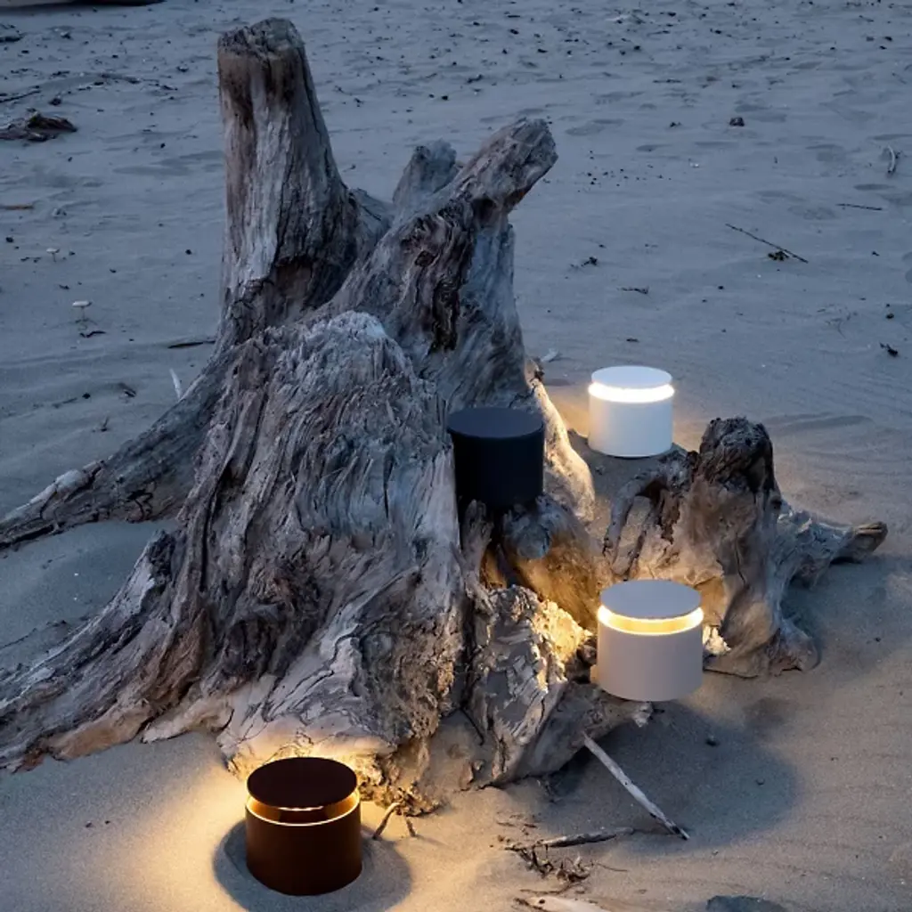 The Pushup Pro Rechargeable LED Table Lamp from Zafferano America is a cordless design by Federico De Majo that combines portability with intuitive operation. De Majo developed a simple push-down mechanism where pressing the top opens the lamp body to reveal an illuminated band, and pressing again closes it to turn off the light. The cylindrical aluminum housing conceals a rechargeable battery and tunable white dimmer controls beneath the base. Its polycarbonate diffuser distributes LED light evenly around the perimeter, making it suitable for both outdoor entertaining and bedside use.