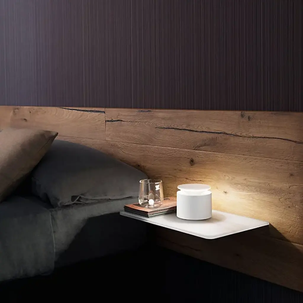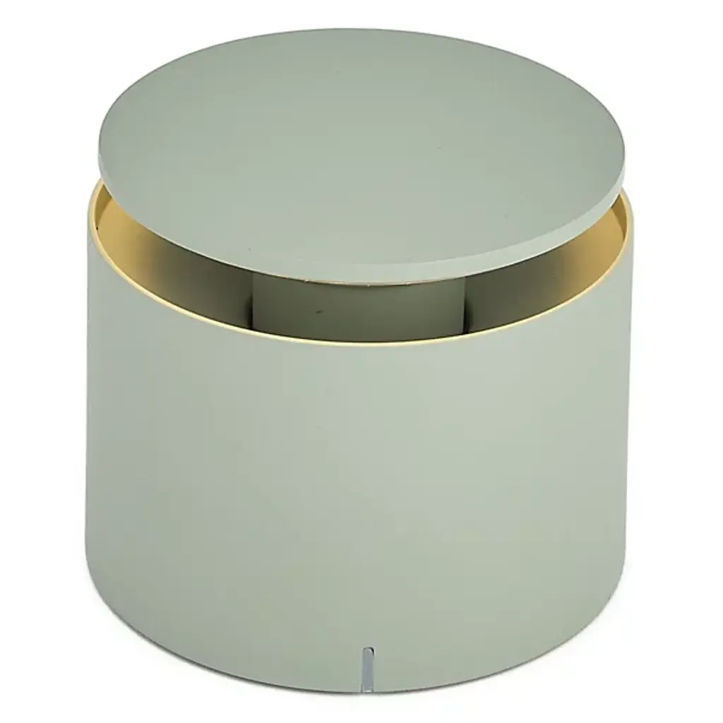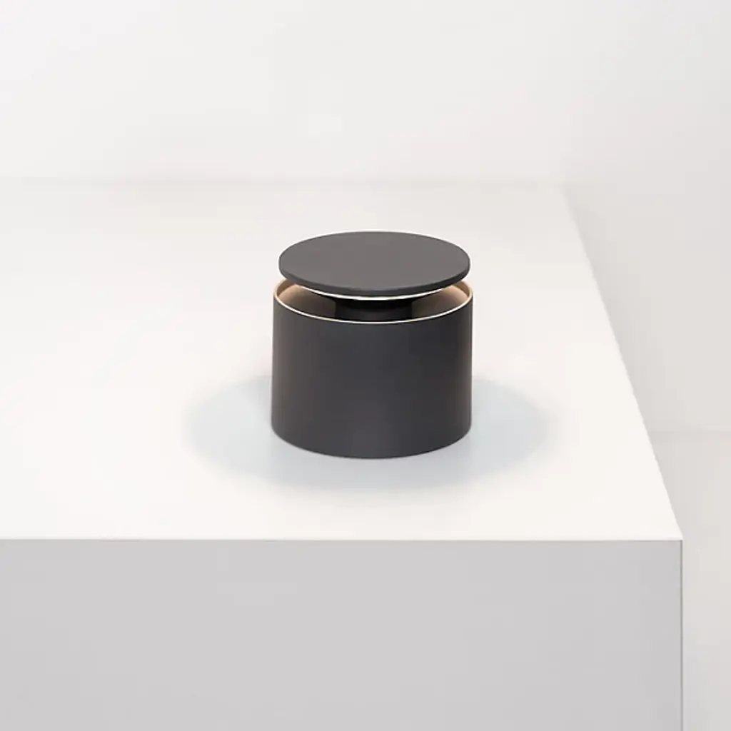 The Pushup Pro Rechargeable LED Table Lamp from Zafferano America is a cordless design by Federico De Majo that combines portability with intuitive operation. De Majo developed a simple push-down mechanism where pressing the top opens the lamp body to reveal an illuminated band, and pressing again closes it to turn off the light. The cylindrical aluminum housing conceals a rechargeable battery and tunable white dimmer controls beneath the base. Its polycarbonate diffuser distributes LED light evenly around the perimeter, making it suitable for both outdoor entertaining and bedside use.