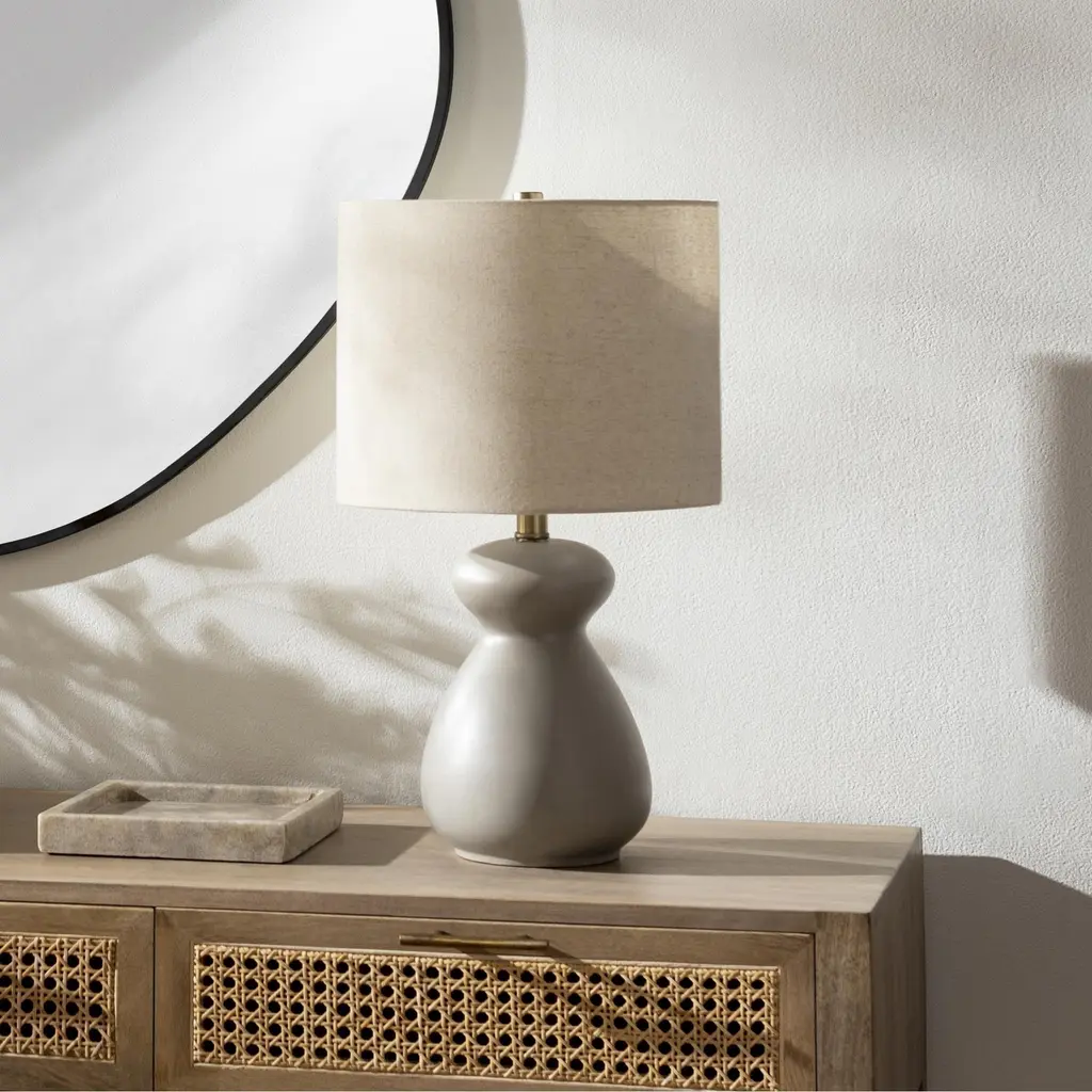 This lamp is the perfect addition to a living room end table or bedside table, while offering the ideal amount of light for reading or relaxing. The base is made with Glazed Ceramic. Complemented by an included Beige linen lamp shade. Standing at 21.00 inches, this lighting piece will fit perfectly in any space. Spot clean with a white cloth.