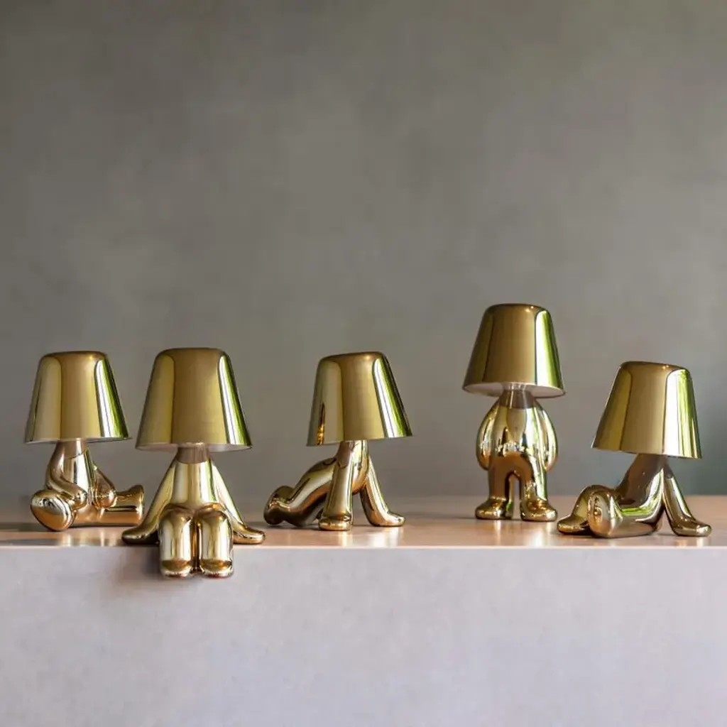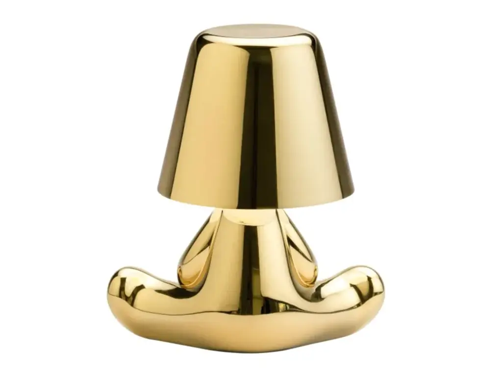 Designed by Stefano Giovannoni, Golden Brothers is a family of lamp characters which, reflecting a soft light on their body, enhance the plasticity and fluidity of the silhouette.The Golden Brothers, assuming different postures, create an animated landscape and, due to their abstract-figurative approach, they are the perfect detail that can characterize the table and personalize every corner of the house.This family of rechargeable battery-operated LED lamps is equipped with a soft touch switch.