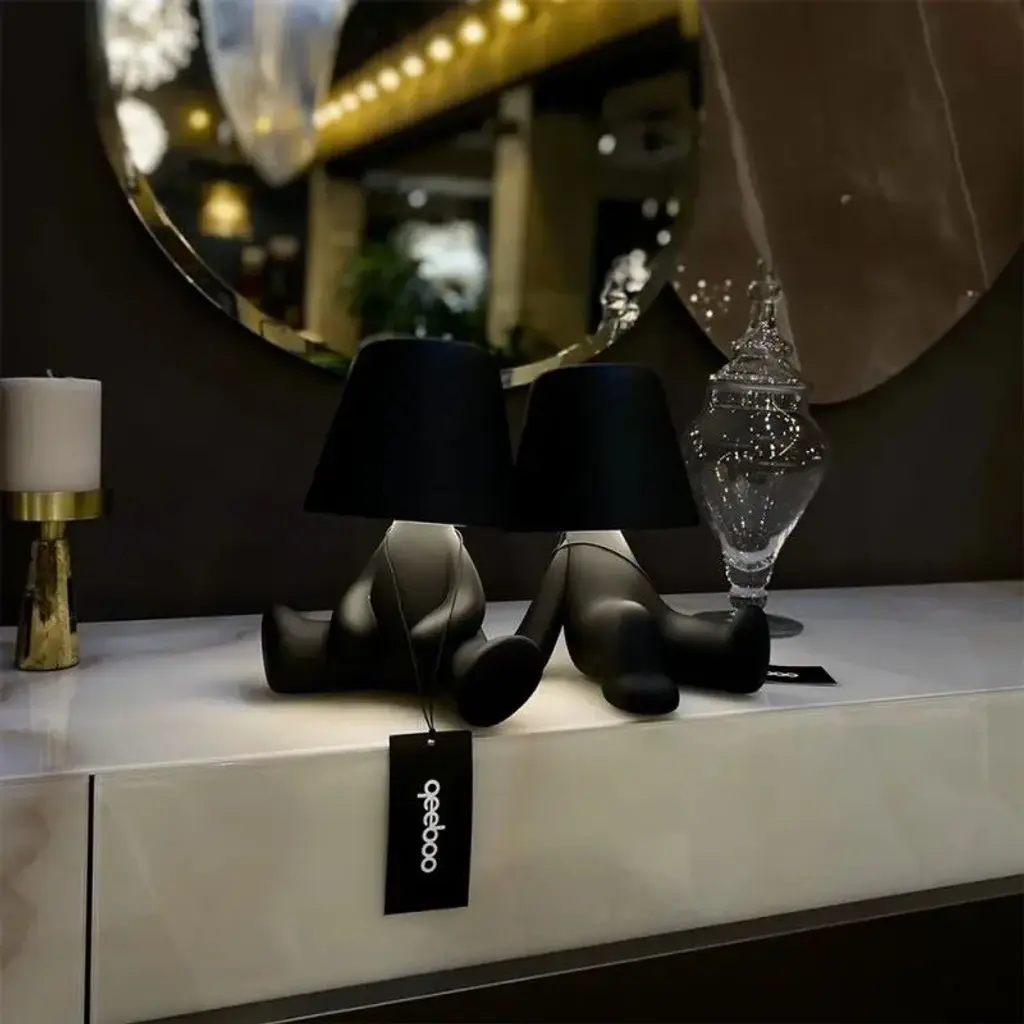 The Golden Brothers family is expanding! Meet the Sweet Brothers JOE now in a soft touch colour. Joe creates an animated landscape characterizing the table and every corner of the house. This family of portable rechargeable battery-operated LED lamps is equipped with a soft touch switch.Material: PolycarbonateLight: white LED / Sensor TouchColour: Black