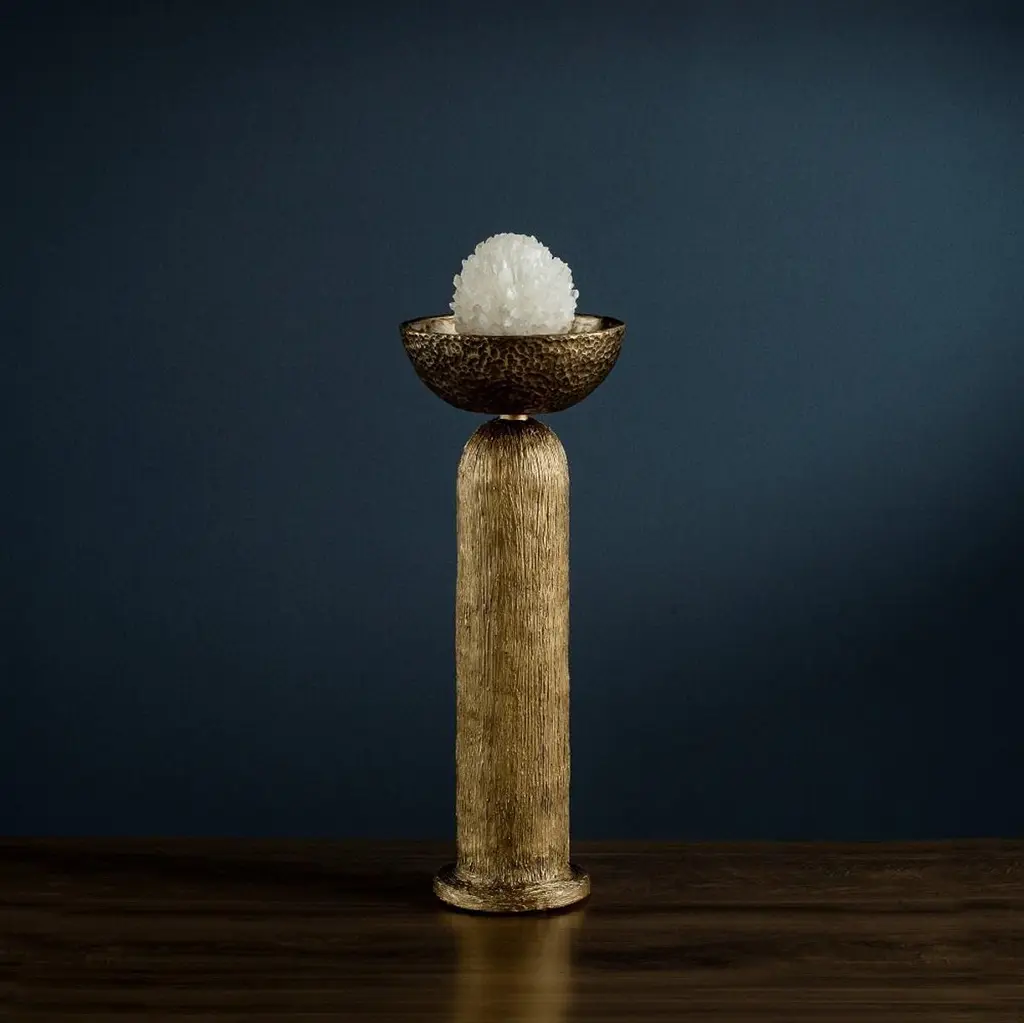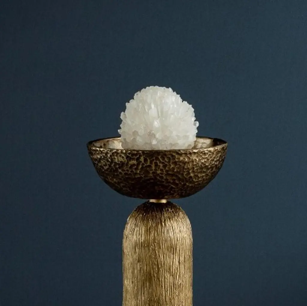 Quartz and Bronze Table Lamp by AverDimensions: D 22 x H 62 cmMaterials: Natural rocks, high-quality cut crystals, jewelry chains, hand blown glass, other.Also available: Matte black, rustic silver, oxidized graphite, and rustic bronze.Inspired by the Minimalist Italian design of the mid-20th century, the collection is characterized by its dome sculpted in ceramic from which its light source emerges: a spherical-shaped sculpture formed by hundreds of natural quartz tips.All our lamps can be wired according to each country. If sold to the USA it will be wired for the USA for instance.