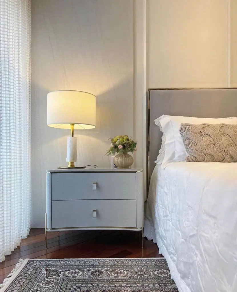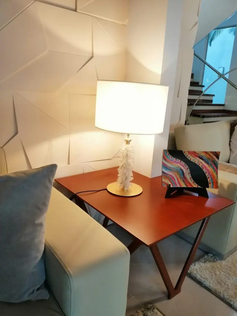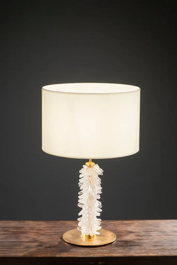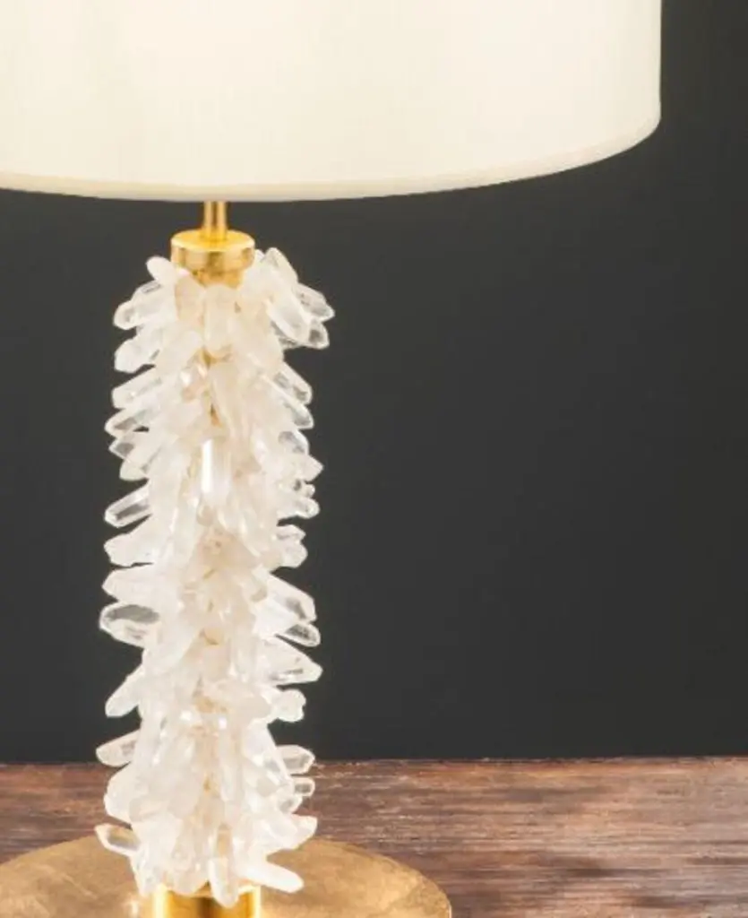 Quartz table lamp by AverDimensions: 40 x 40 x 65cmMaterials: Aluminum and QuartzDesigned by Marcele Muraro, it is made of natural stones and inspired by the city of Casablanca, which has a rich Art Deco architectural heritage. Straight and elegant features, are added to the mosaic technique. It remit to the geometric shapes from the buildings of the early 20th century in Morocco.