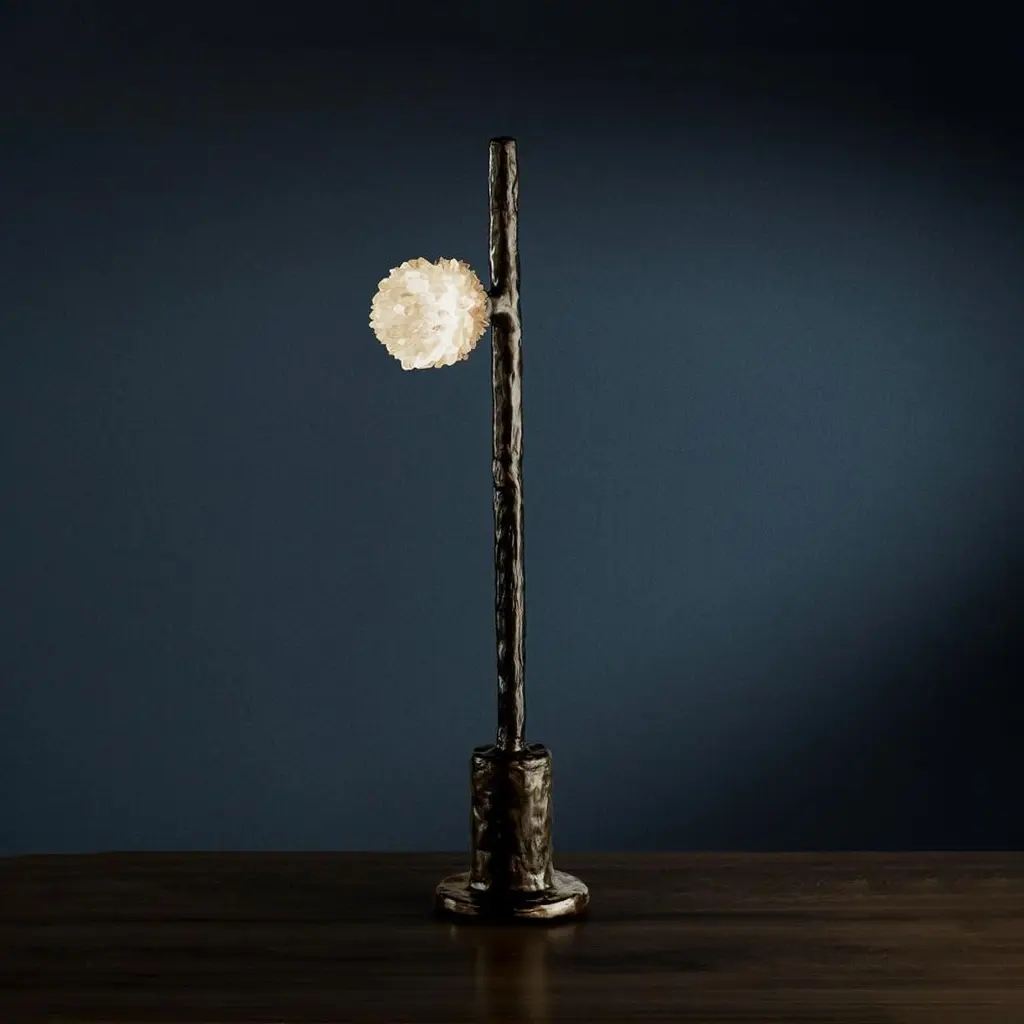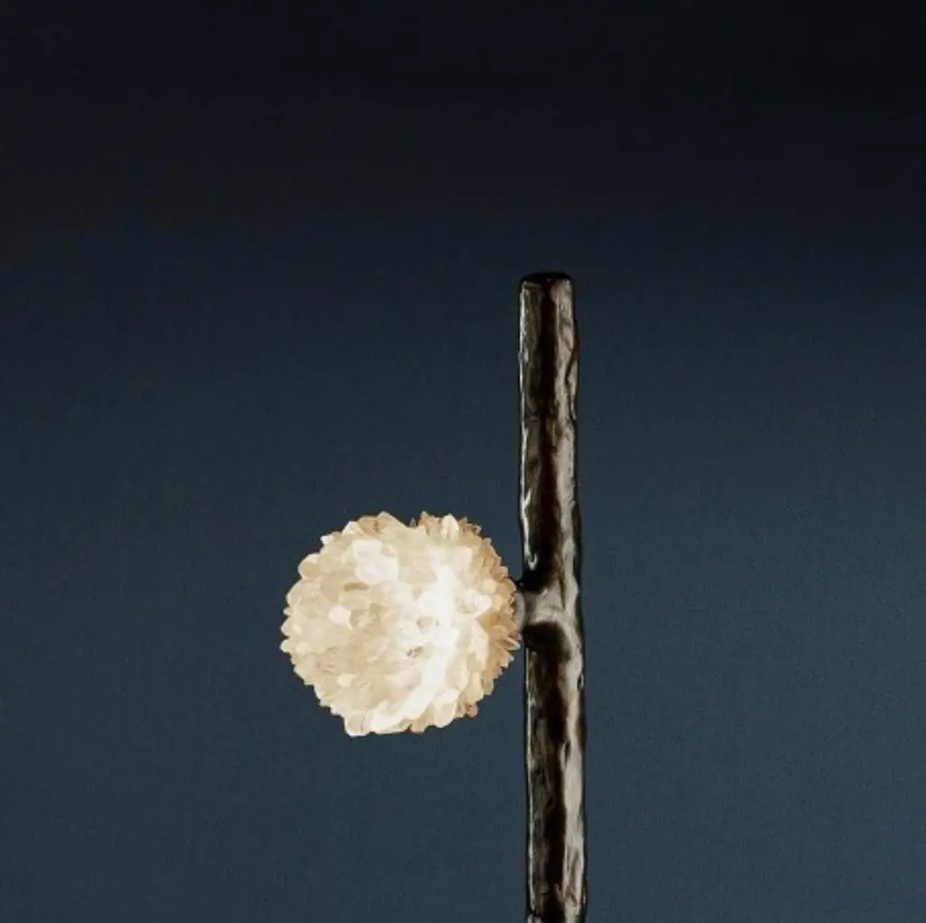 Quartz table lamp I by AverDimensions: W 12 x D 22 x H 78 cmMaterials: Natural rocks, high-quality cut crystals, jewelry chains, hand-blown glass, other.Also available: matte black, rustic silver, oxidized graphite, and rustic bronze.A series of lamps molded in a lively, imperfect, and organic ceramic texture, in contrast to the slender and objective silhouette of its structure. Its light source consists of a sculptural formation of translucent quartz tips that emit a warm and cozy glow to the viewer. Its name is a tribute to the Etruscan civilization that lived in the Italian peninsula and is known for its exquisite works of art in ceramics, bronze, and precious stones.All our lamps can be wired according to each country. If sold to the USA it will be wired for the USA for instance.