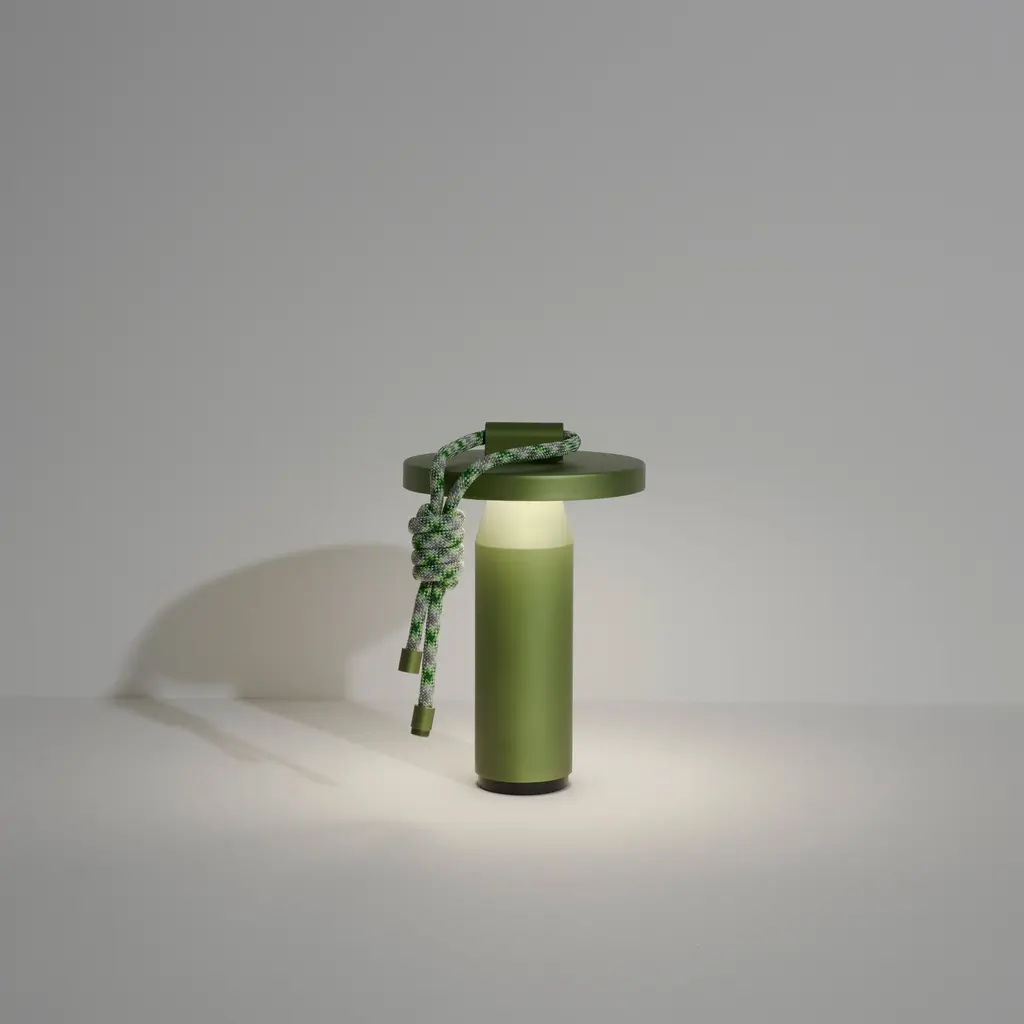 With the cool panache of French maker Petite Friture, designer Sammy Rio's portable lamp readily segues from inside to outdoors and can be hung almost anywhere. Environmentally friendly, Quasar's low-energy, dimmable LED toggles between 3 color temperatures and the rechargeable light lasts from 6 to 12 hours. In a sleek waterproof aluminum housing made from 20% recycled metal, the lamp's accompanying weather-resistant rope can be untied to extend down further.