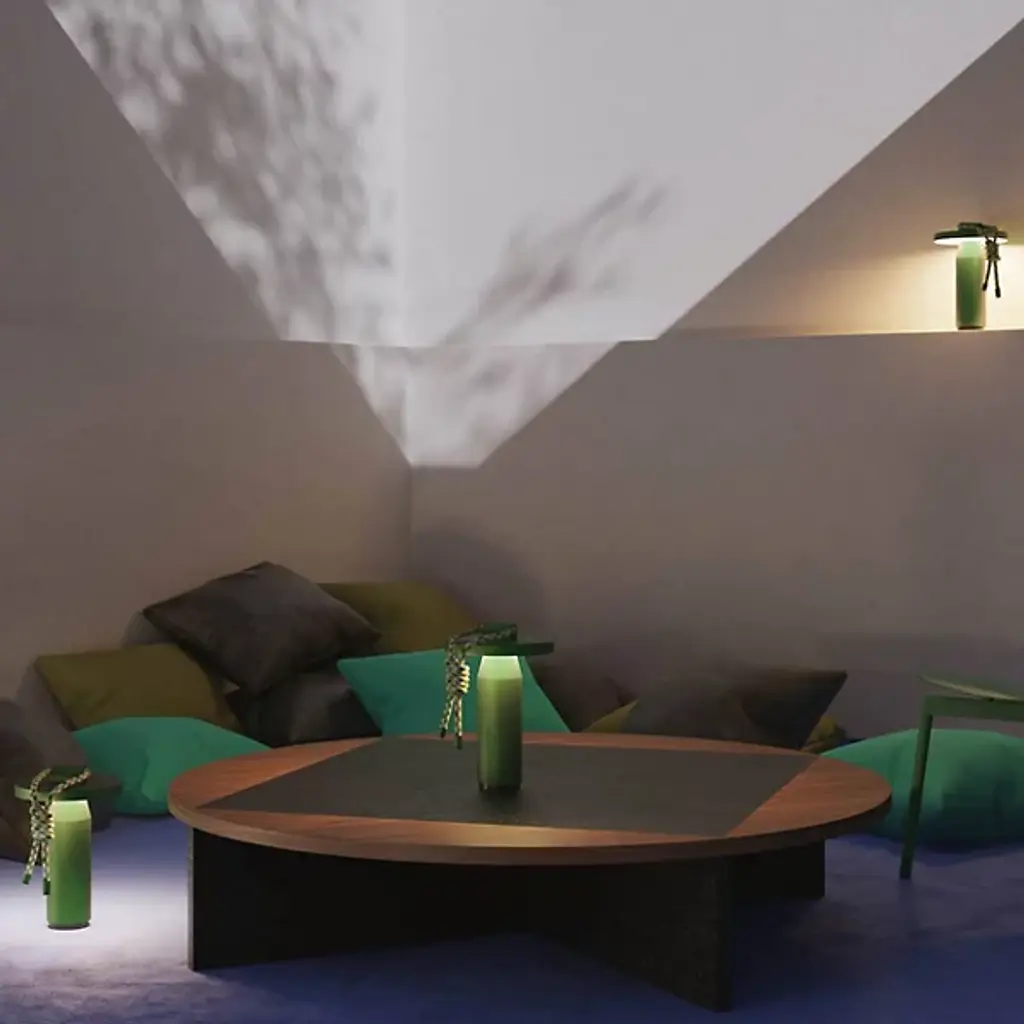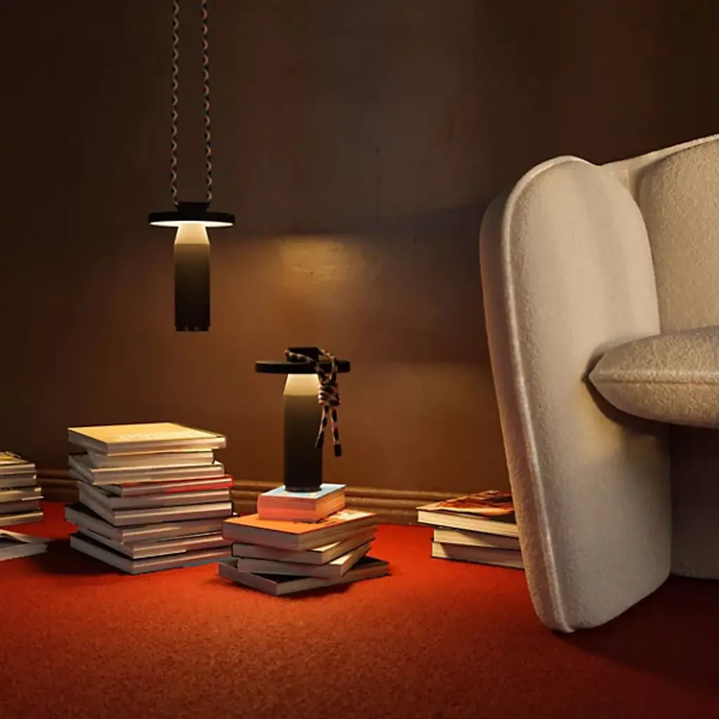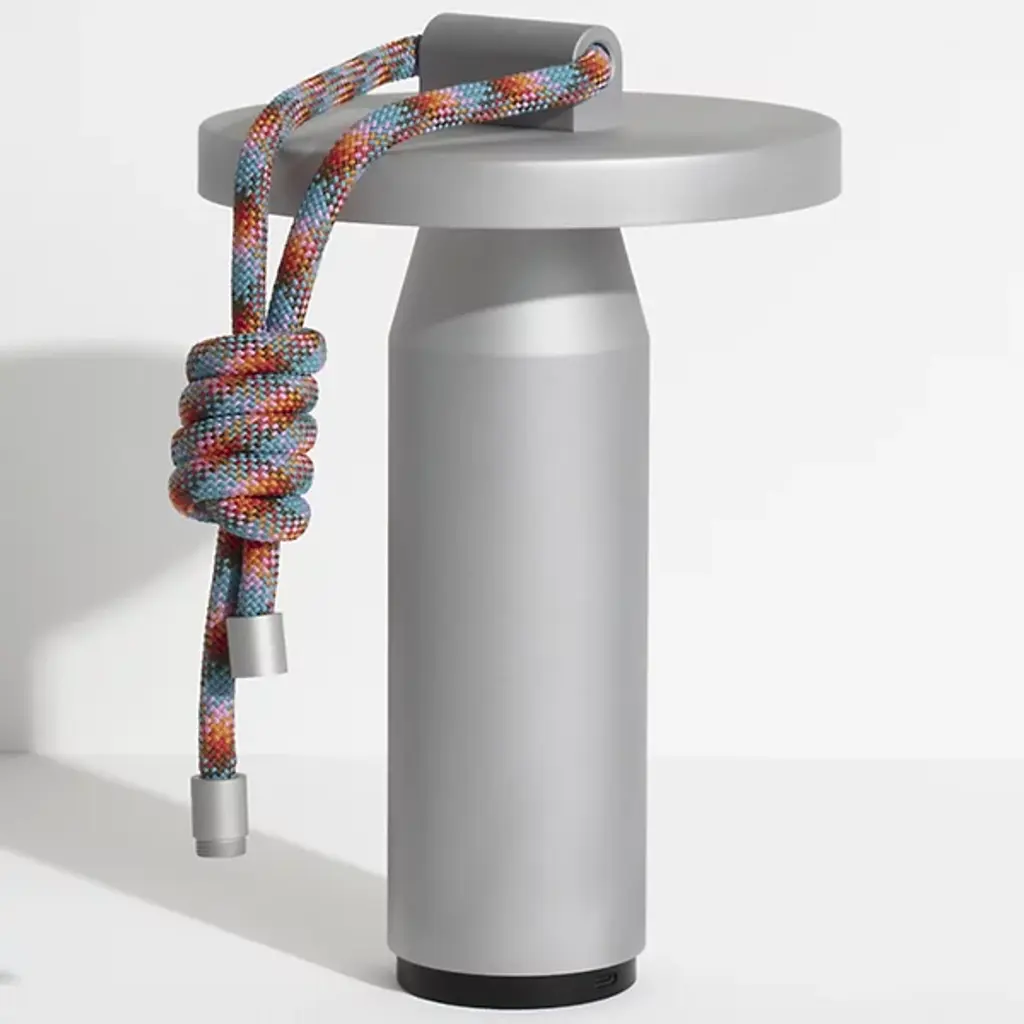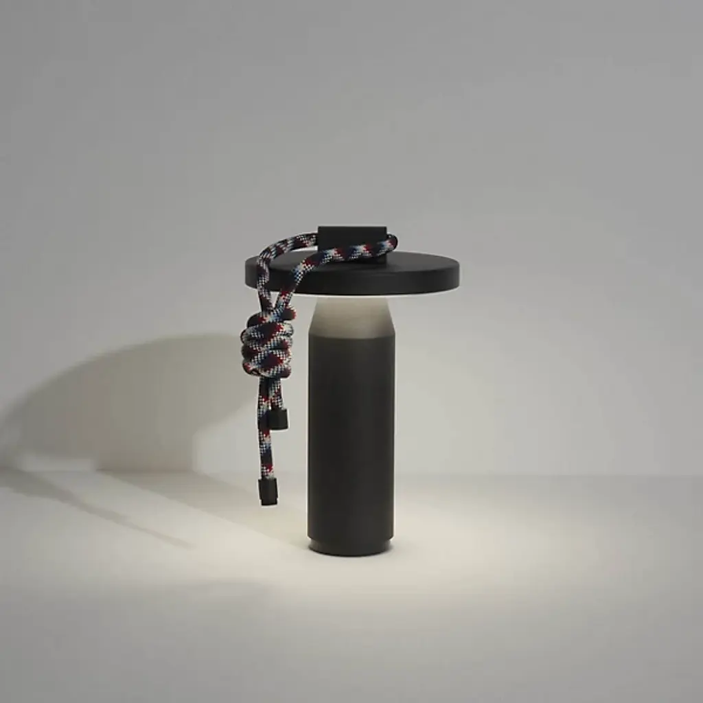Enliven exteriors and interiors alike with the Quasar Rechargeable LED Table Lamp from Petite Friture. Blending industrial practicality with simple design elements, it’s a subtle salute to circular shapes from the mind of award-winning designer Samy Rio. Quasar is the fruit of two years of research and refinement, walking a fine line between industrial robustness and individual craftsmanship and incorporating technical considerations of 6 to 12 hours of functionality, depending on which setting is used. The lamp incorporates recycled materials and features an aluminum cylinder body that bevels slightly inward towards rechargeable LED lamping placed under a disc shade, providing a distributed and even array of ambient light, while a polyester rope threaded through a rectangular eyelet atop the piece adds a touch of outdoorsy expressionism to the smooth piece while also acting as an optional method of suspension.