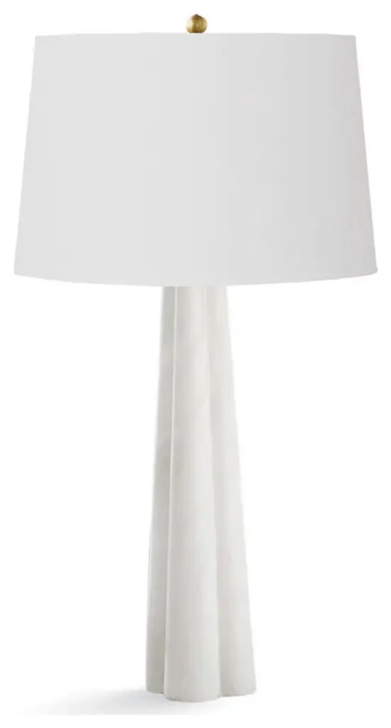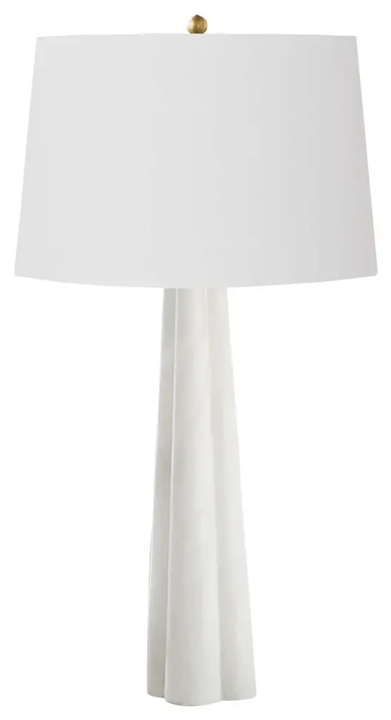 Unusually lightly colored, translucent, and soft stones, alabaster has been used throughout history primarily for carving decorative artifacts. A tapered alabaster base juxtaposed by a more traditional drum shade, makes this lamp a beautifully well-balanced source of light and style.Bulb Type: A Type Medium Base (E26)Wattage: 3-Way 150 Watt MaxNumber of Bulbs Needed: 1Bulb Included: No