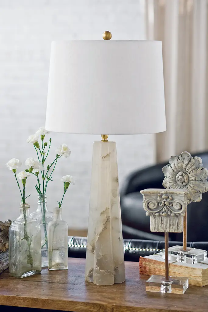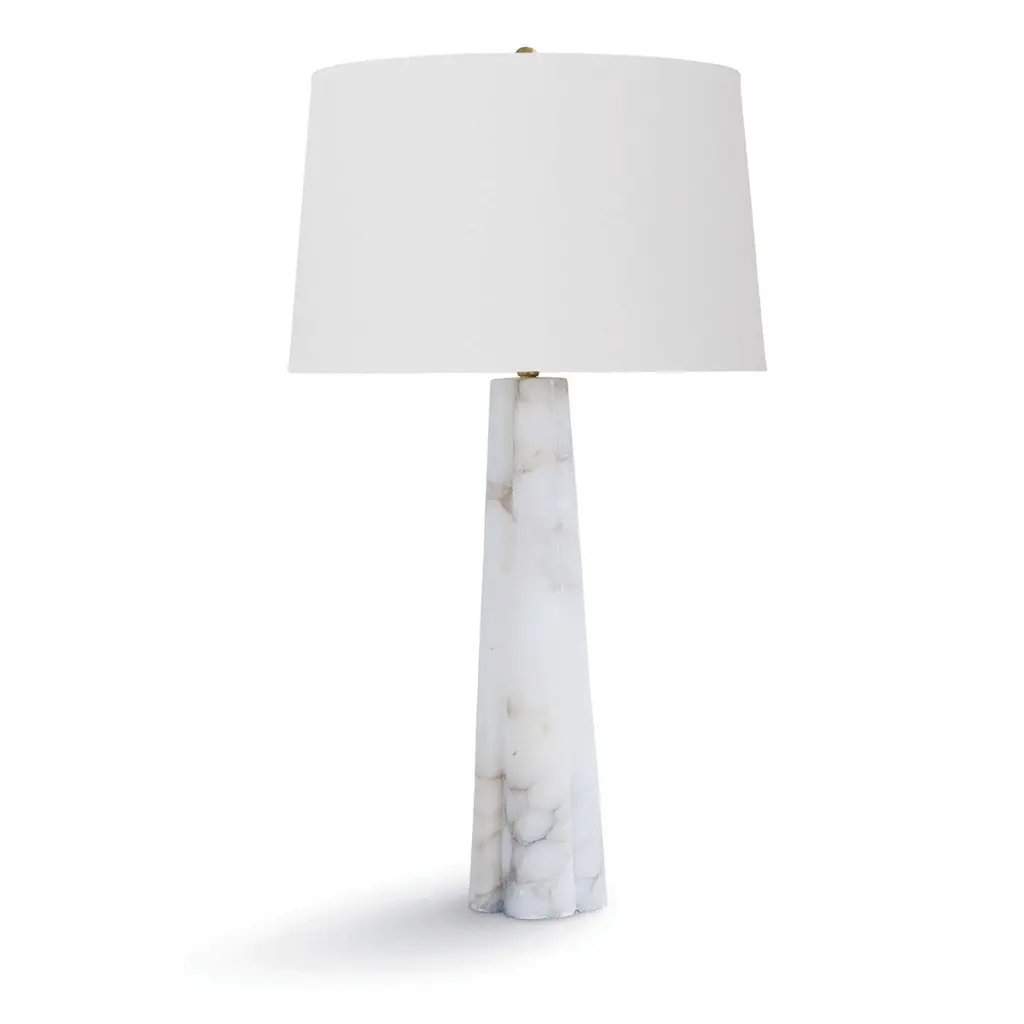 Each Quatrefoil Alabaster Lamp is as unique as the next. An everlasting expression will be created in any space that this lamp occupies. Can be ordered in small or large sizes. Height: 27.5 Width: 13 Depth: 13 Shade: 12 x 13 x 10 Wattage: 3-Way 150 Watt Max Bulb Qty: 1 Bulb Type: A Type Medium Base (E26) Socket: E26 3-Way Cast Turn Knob Wiring Type: French Wire Cord: 8 feet Material: Alabaster Finish: Natural
