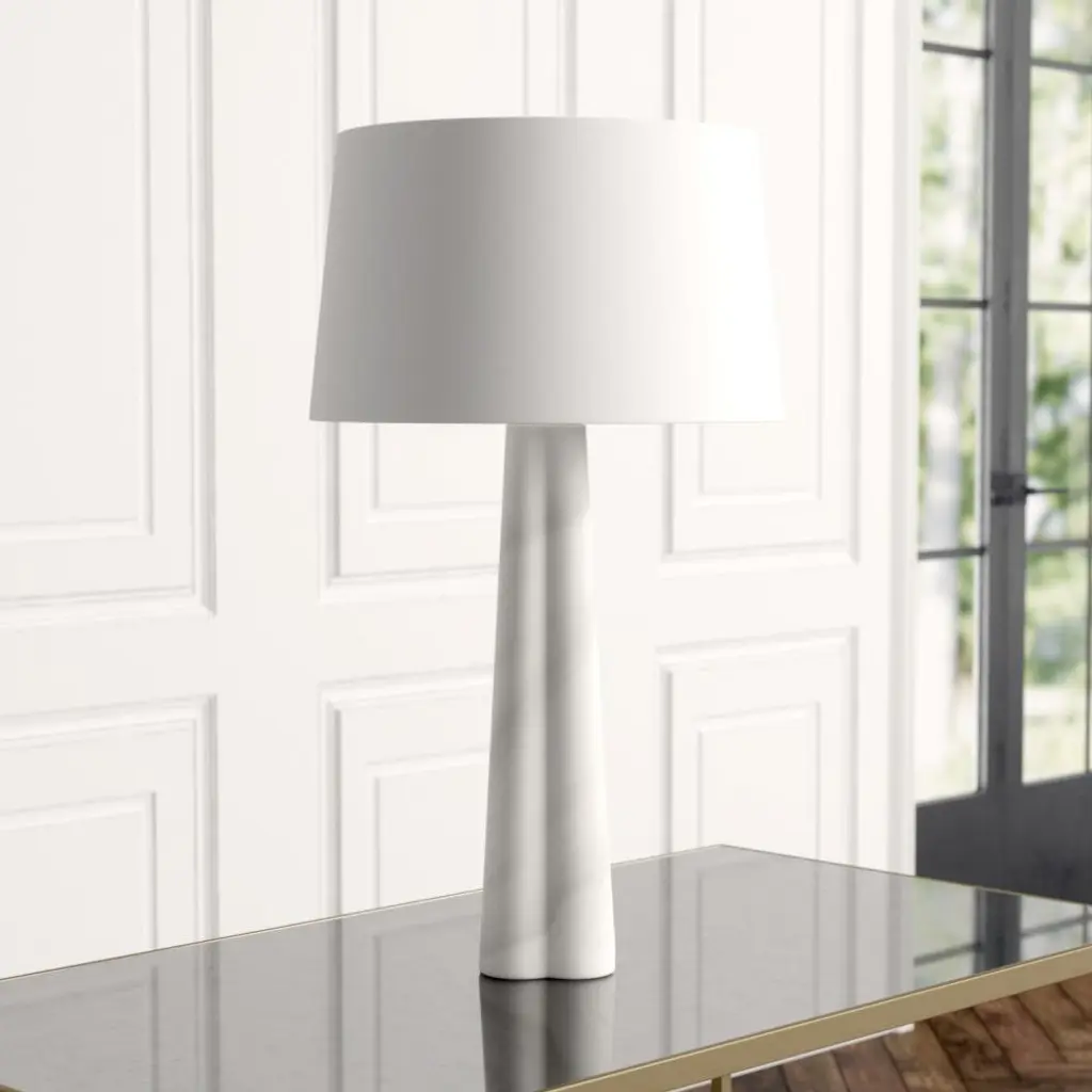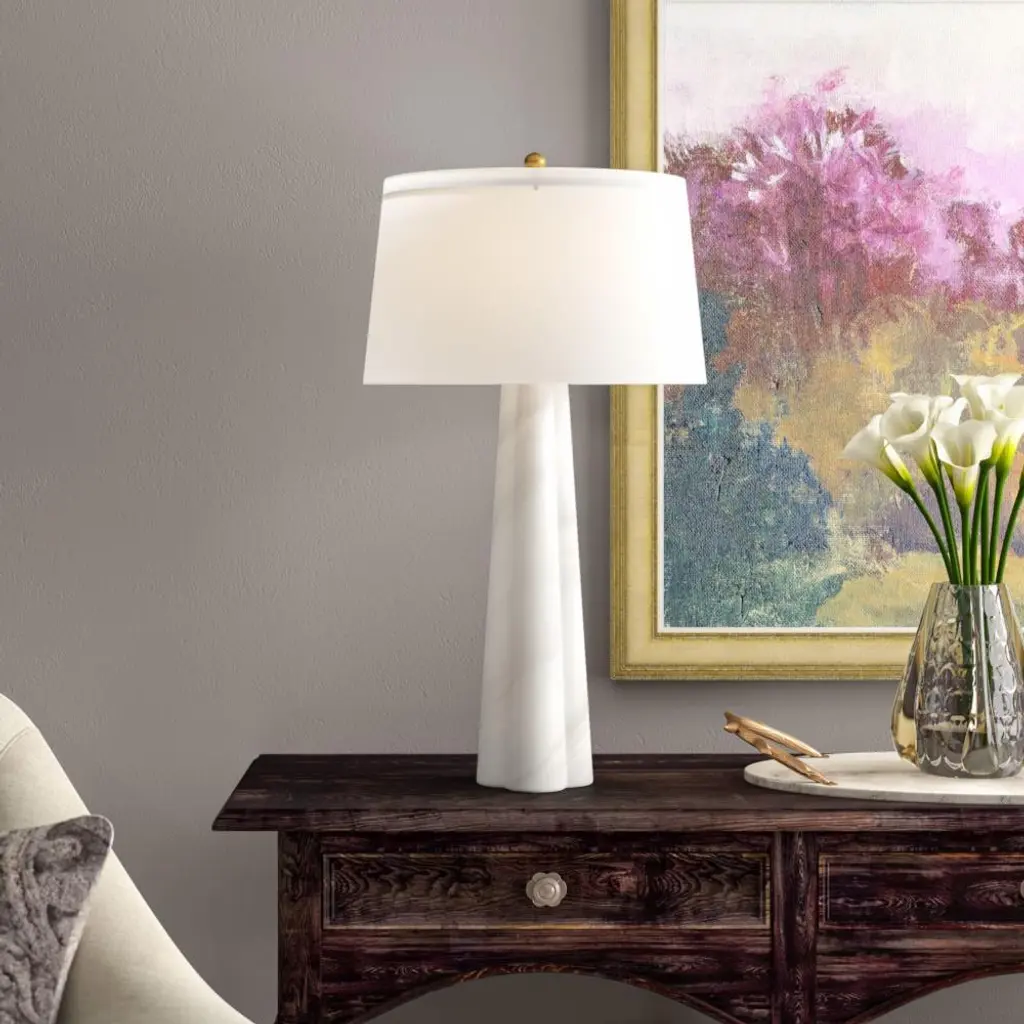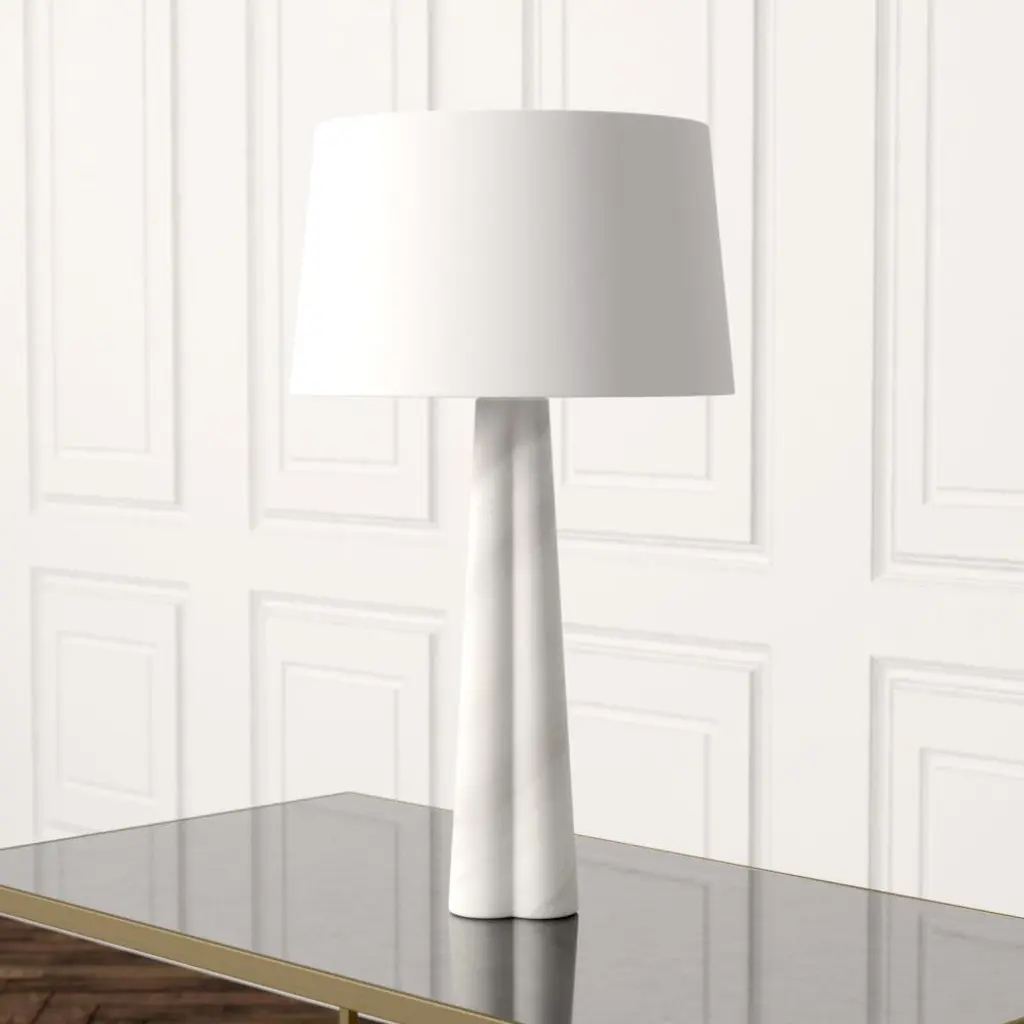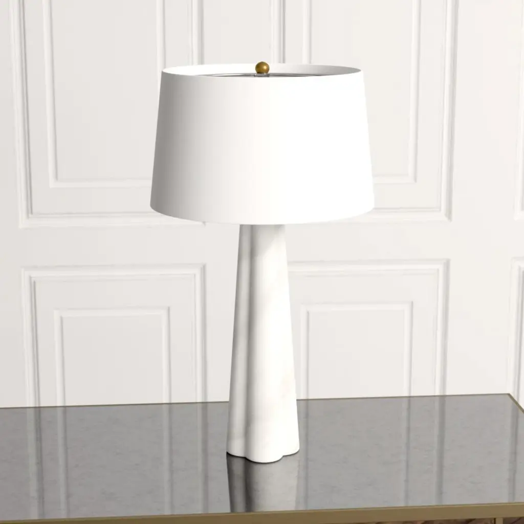 Quatrefoil Modern Classic Natural White Alabaster Table Lamp