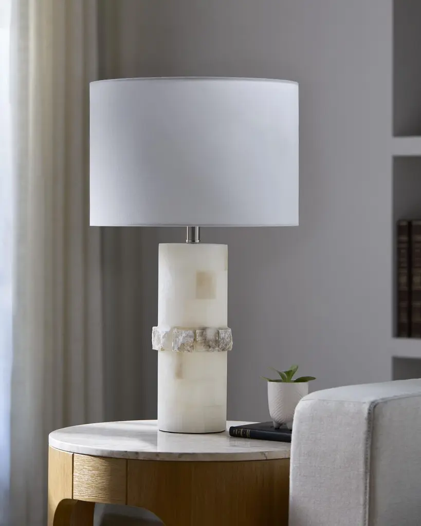 Enhance your home décor with the Quinella accent table lamp, a captivating blend of Arts & Crafts Traditional style and contemporary functionality. Standing elegantly at 25 inches, this lamp features a beautifully sculpted stone body and an exquisite iron finial. Topped with a refined linen shade, it radiates both charm and sophistication, making it an ideal addition to any living space or reading nook. Effortless to maintain, simply wipe clean with a dry cloth to preserve its pristine finish. Brighten your surroundings with the timeless allure of the Quinella table lamp and create an inviting sanctuary in your home.
