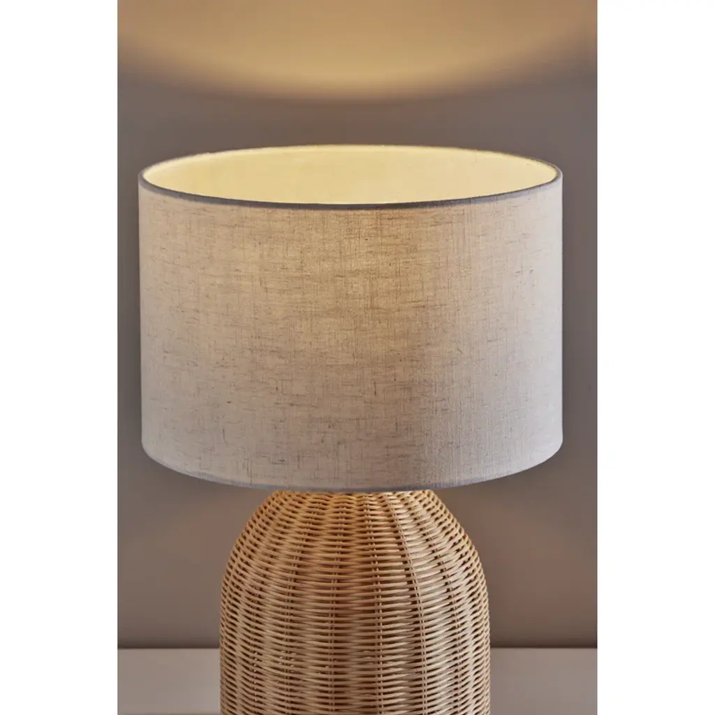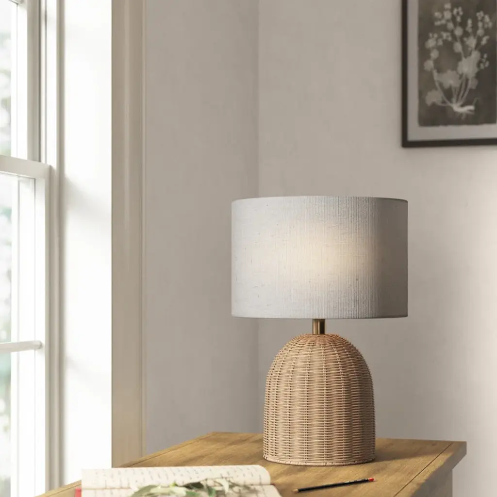 Add natural texture and warmth to any room with this Radley table lamp. It brings a touch of coastal flair to cottage décor or can be used as an organic counterpoint to a modern room. Topping the lamp is a tall crisp off-white drum shade with a natural texture that softly disperses the light from a 60W bulb (not included). Use individually to illuminate your room or complete your décor by pairing this lamp with the taller version.