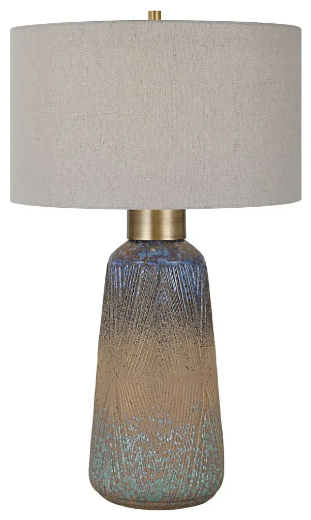 An artful ombre creates striking depth and dimension in the Raisa table lamp. The mocha-hued reactive glaze seems to cascade off the shoulders of the ceramic base, activating contrasting white tones that pool into the grooves of the fluted form. A high-gloss finish adds a polished note to balance the rusticity of the earthy alchemy.*Due to the one-of-a-kind nature of the medium, exact colors and patterns may vary slightly from the image shown.