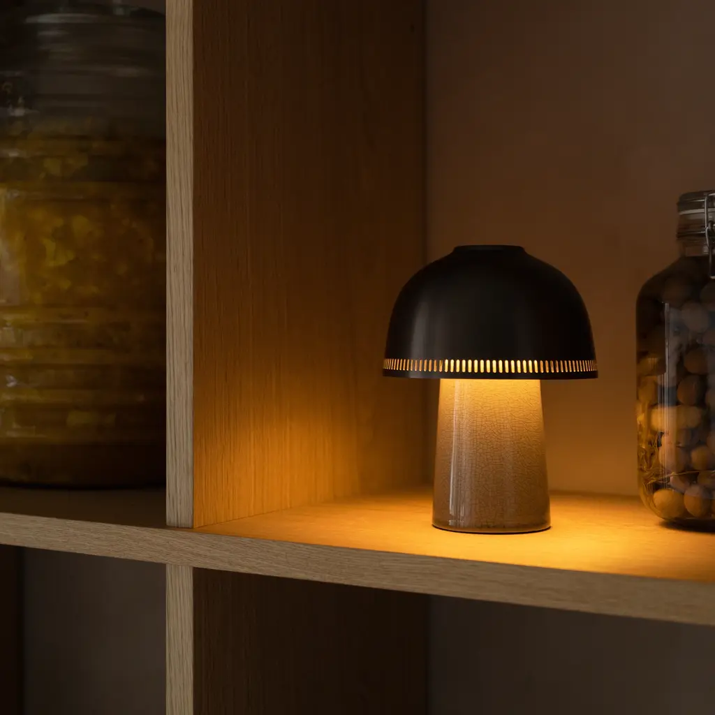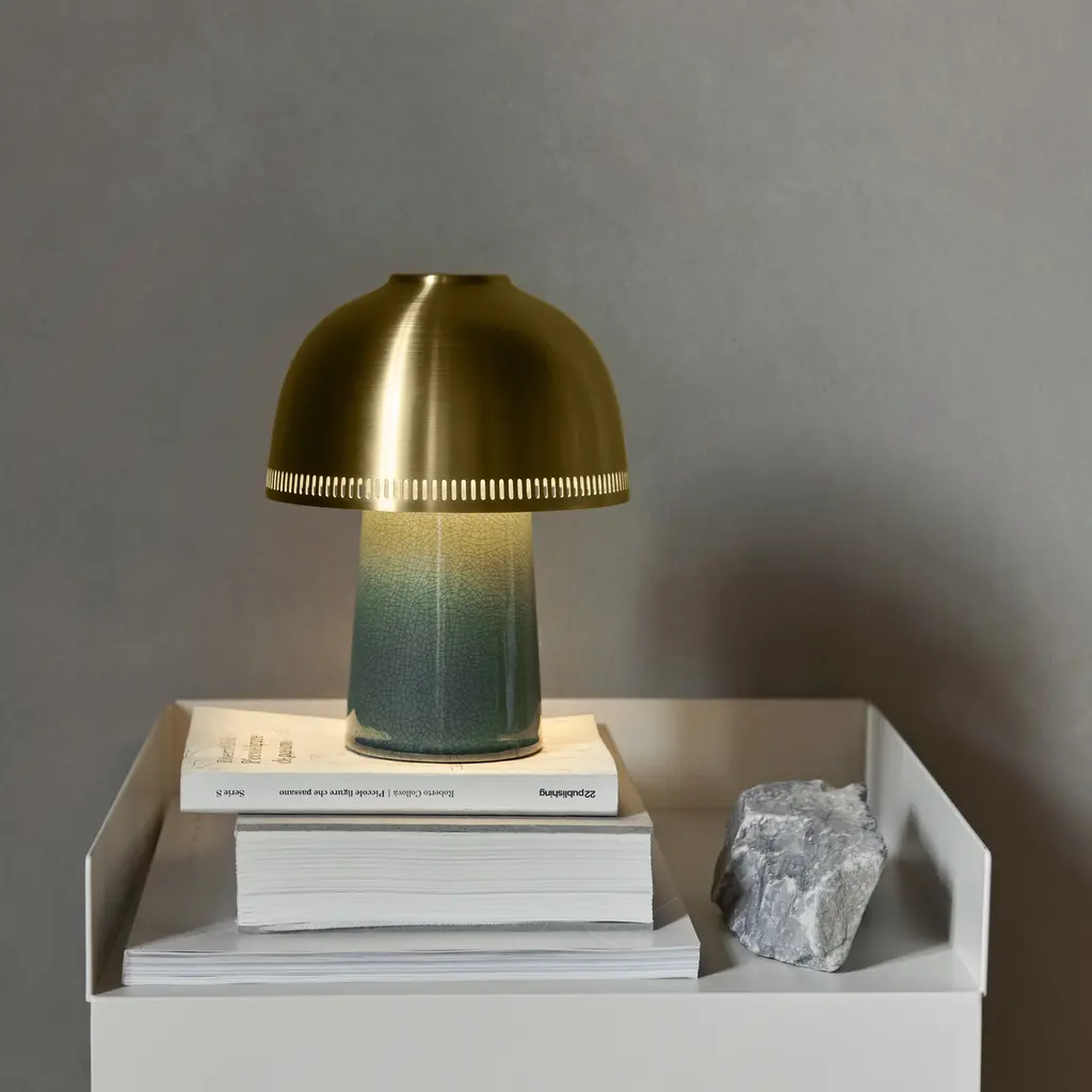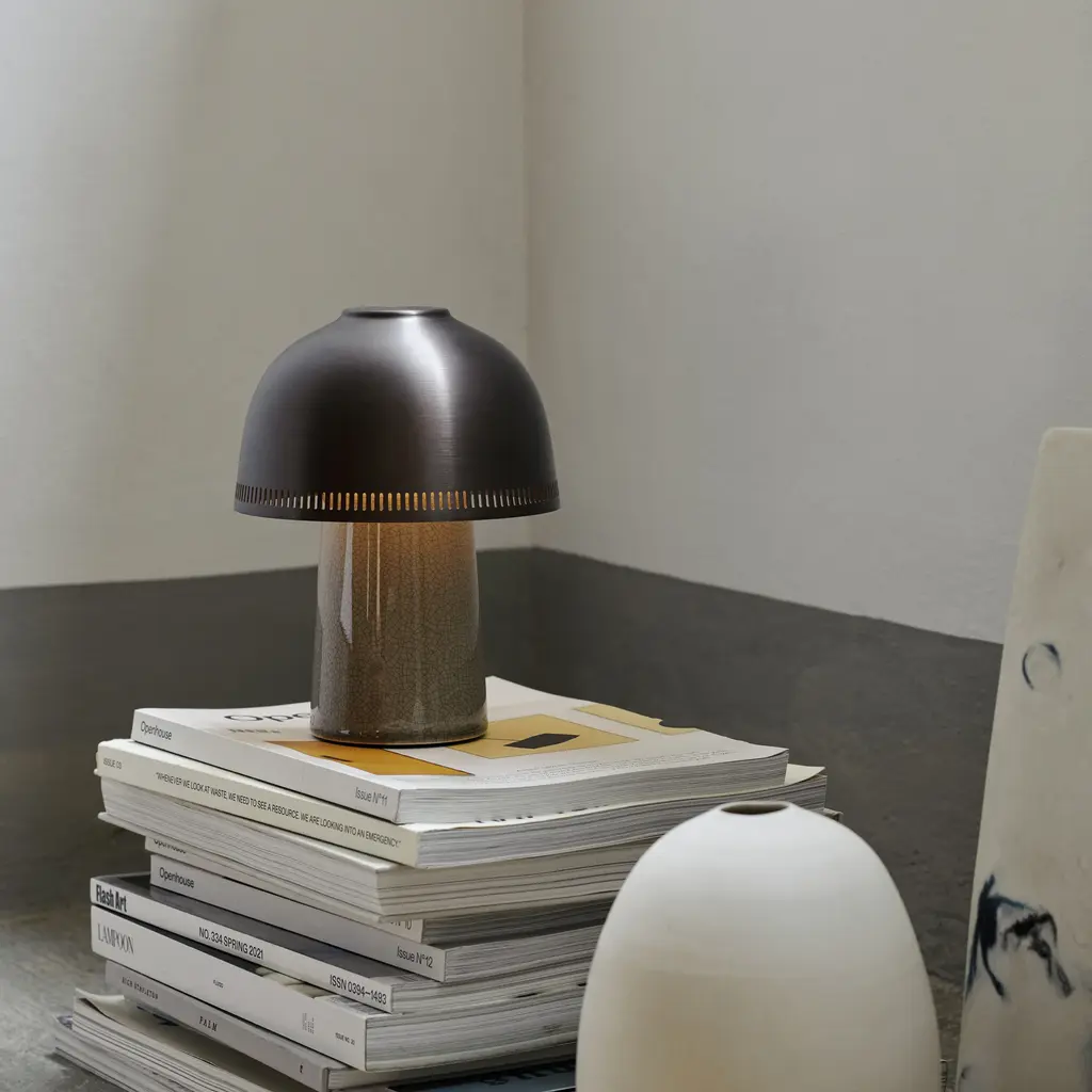 Named after the traditional Japanese pottery technique, Raku is a compact lamp with considerable presence. Drawing inspiration from the age-old art form, the lamp features a hand-sculpted ceramic base with a crackle glaze that varies slightly in each piece, serving as a reminder to enjoy the imperfections. Features